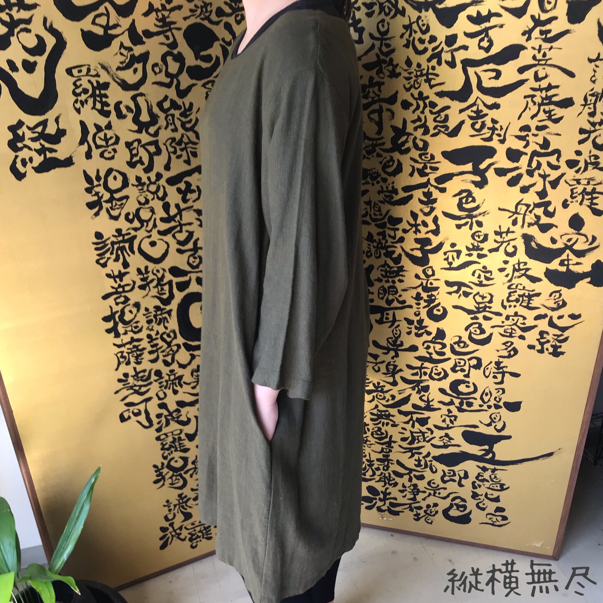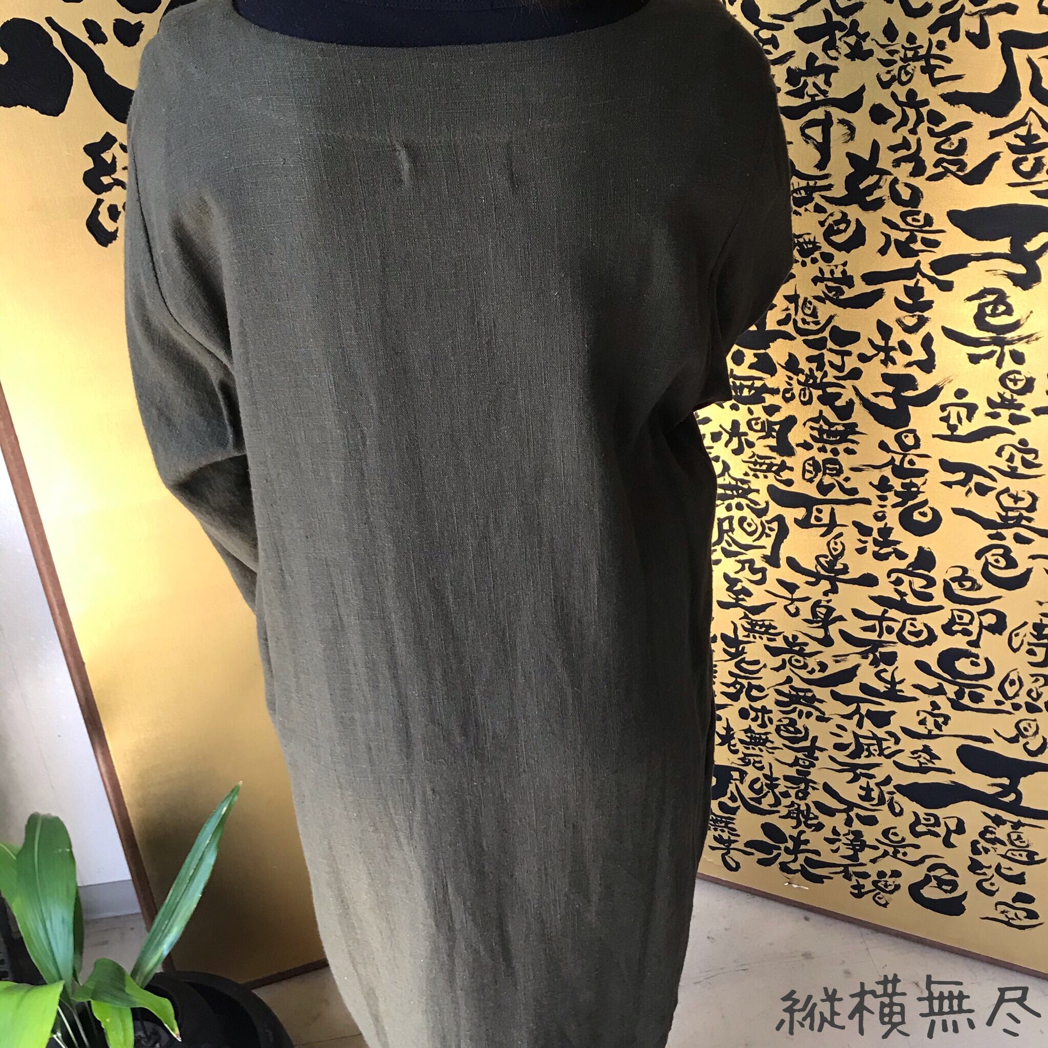 ヘンプの素材を楽しむこと、生地色はヘンプでは珍しいモスグリーンを生かしたいデザインしました。
