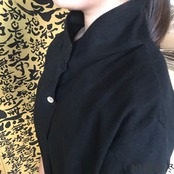 後身頃の裾には両脇に大き目のタックをとっていて、ヒップラインが出にくいようにゆるやかにカーブを描いています。