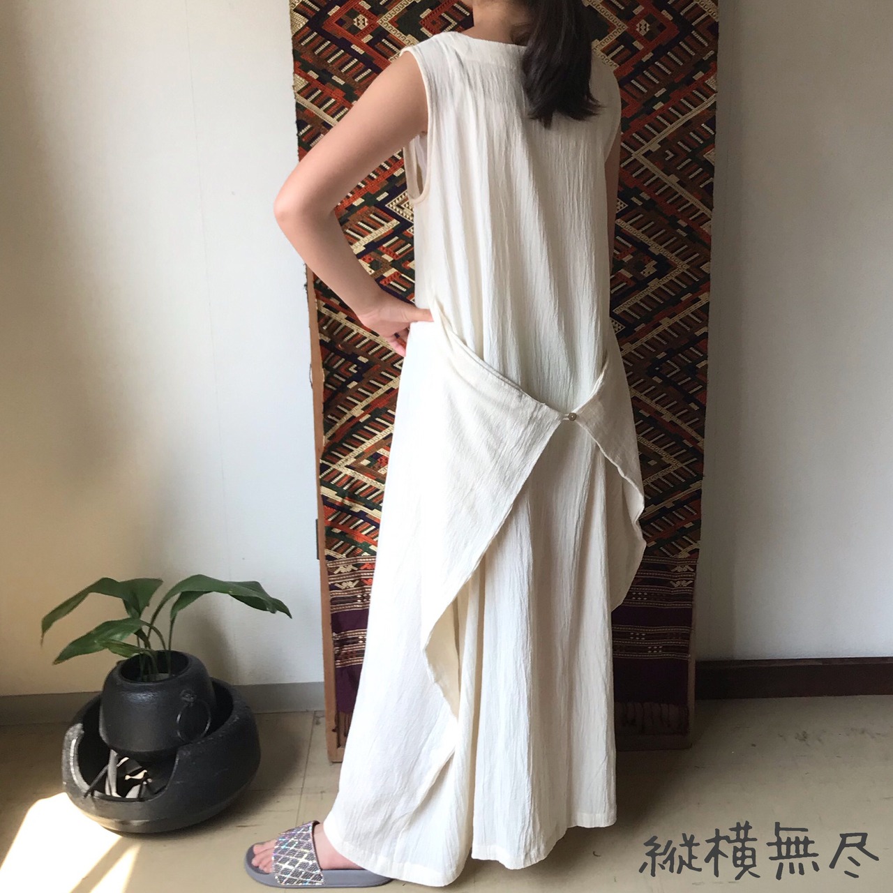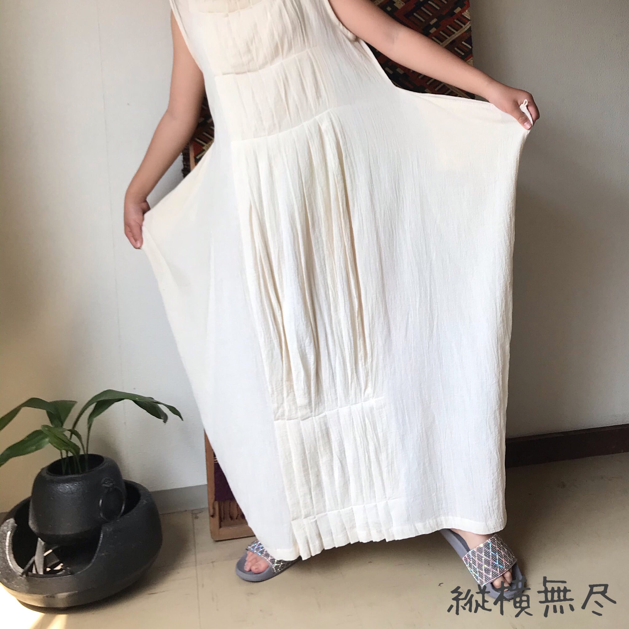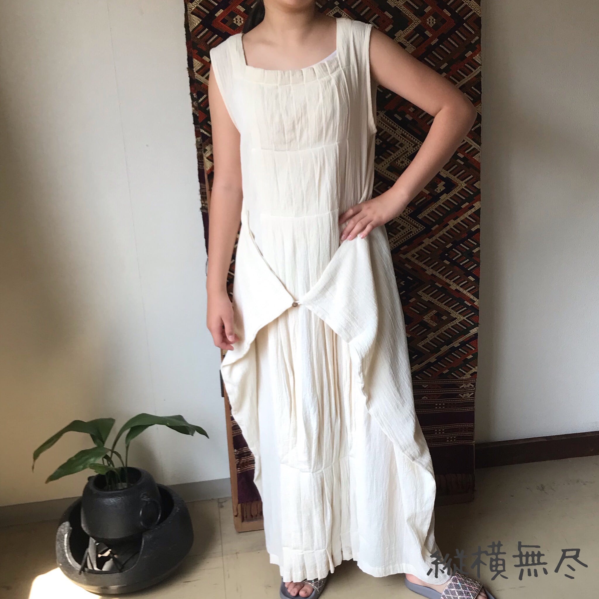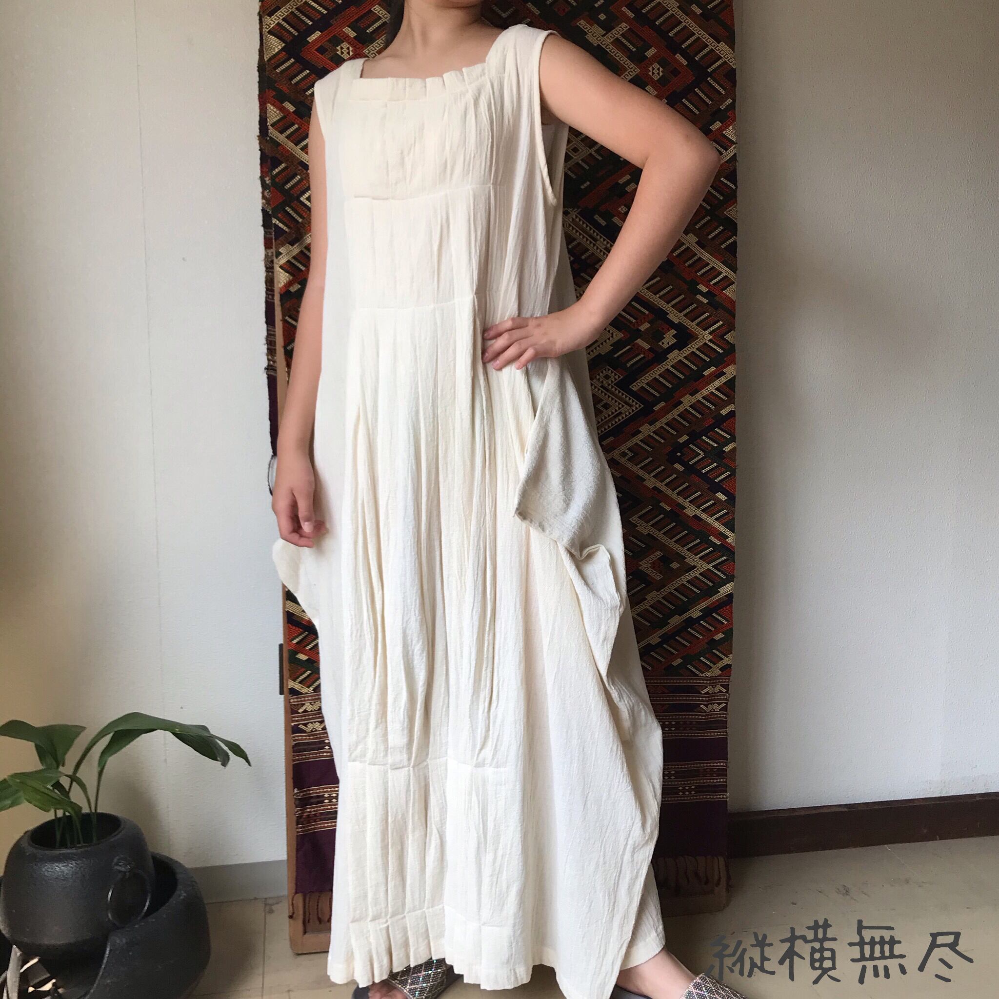ロング丈でスタイル抜群に見える3WAYのコットンワンピース