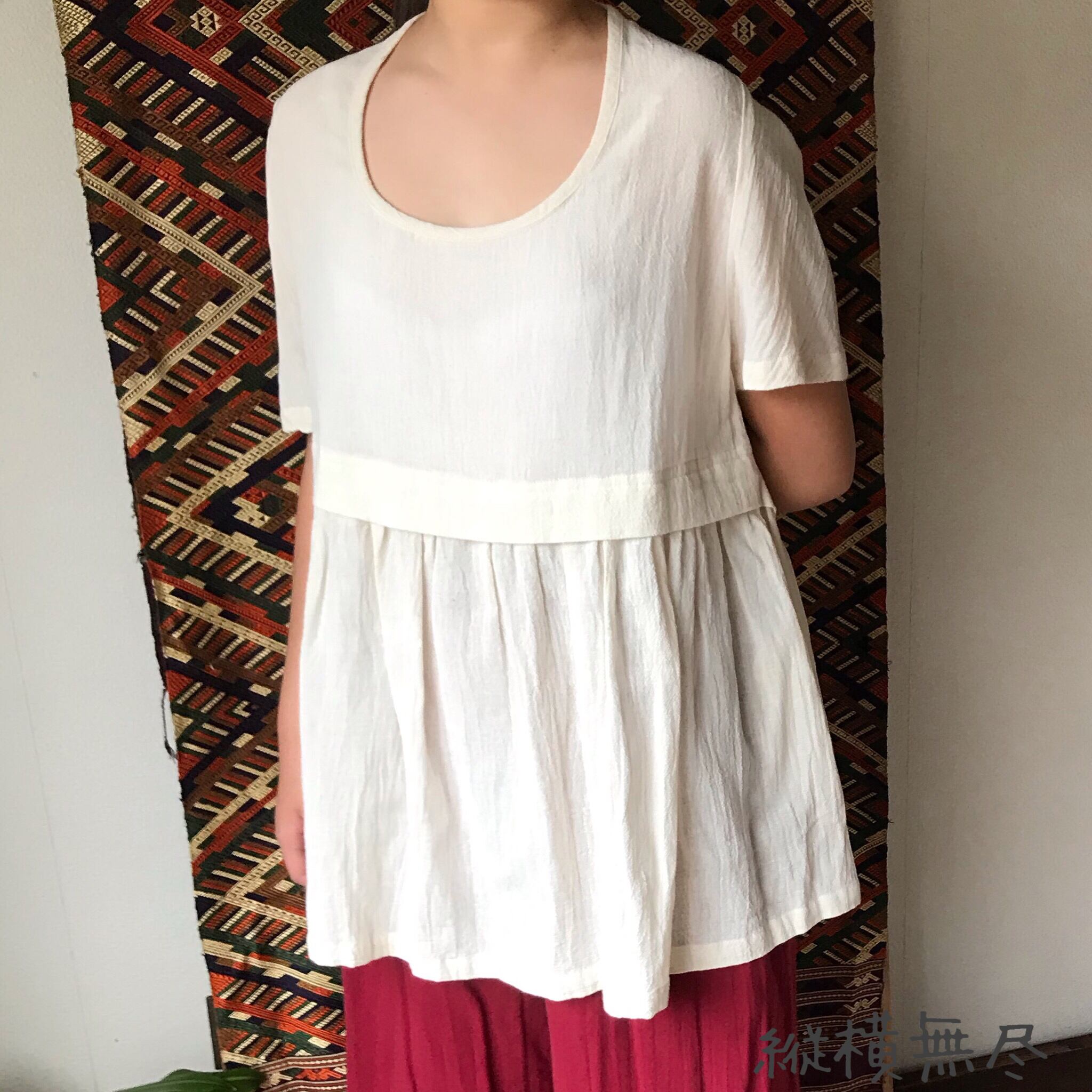 気持ちの良いガーゼのようなコットン生地なので一枚でも、中にカットソーやタートルをあわせても長いシーズン活用できてついつい着てしまいますよ。
