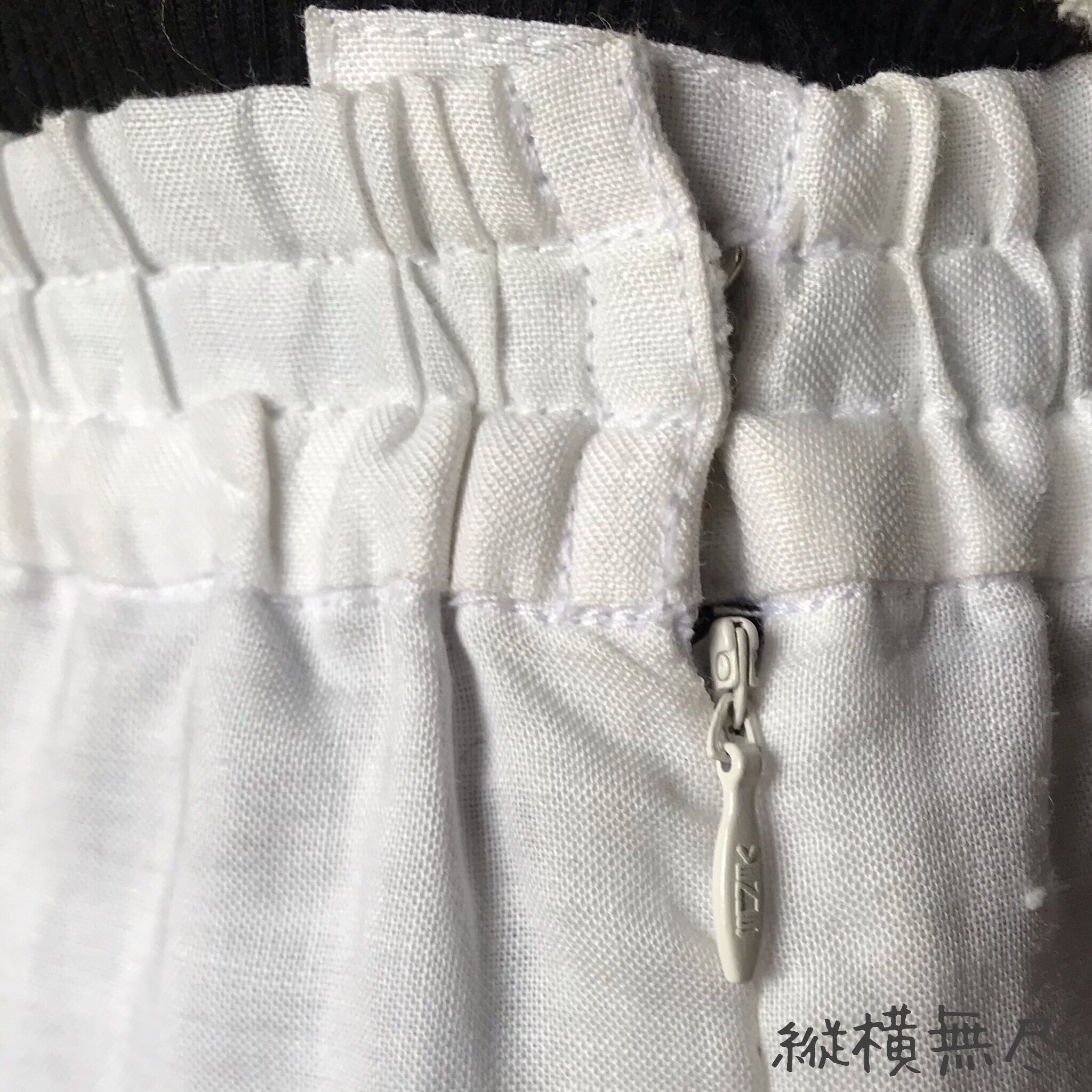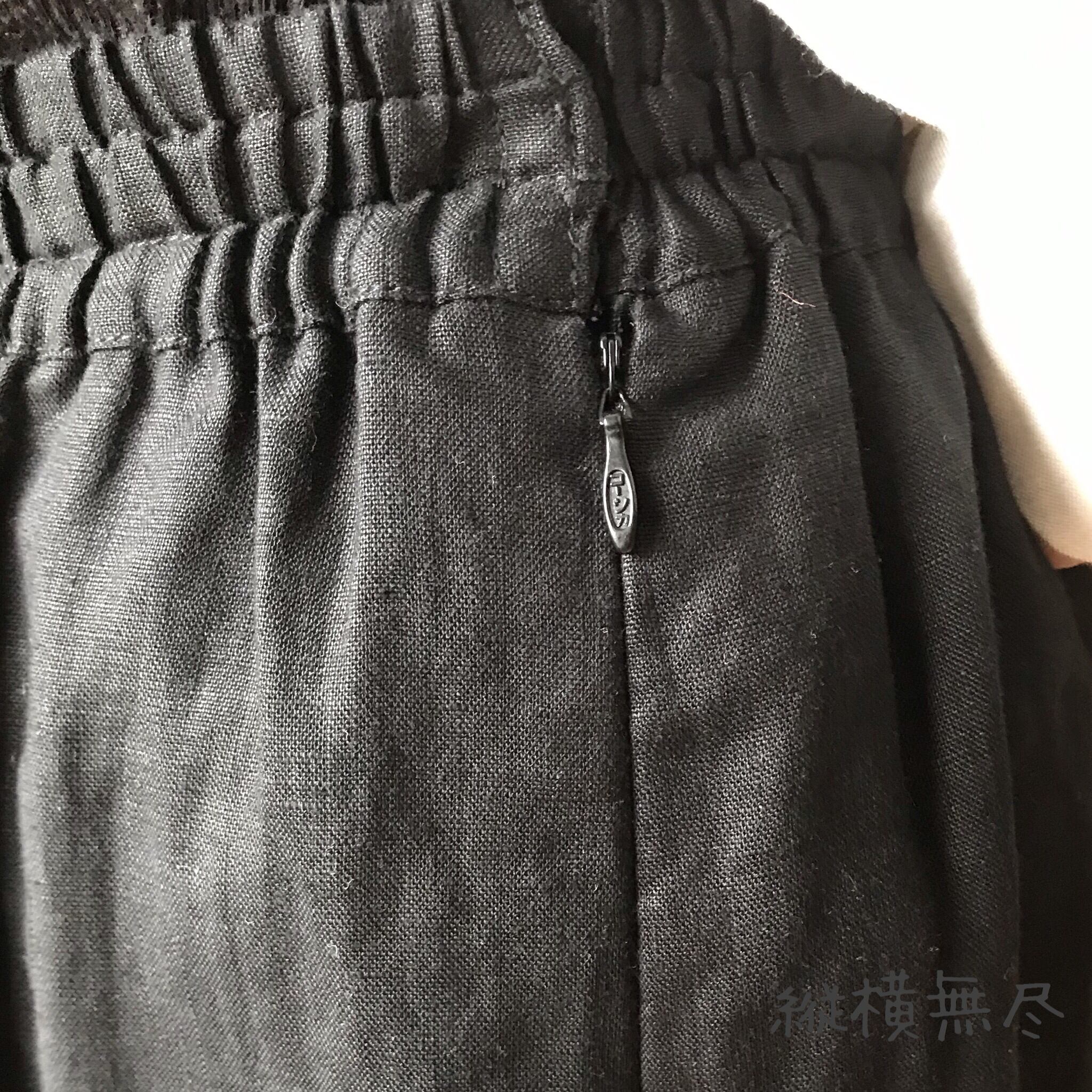 ウエストはゴムが入っているのでボディラインに沿い、サイドのファスナーで脱ぎ着がしやすくなっています。