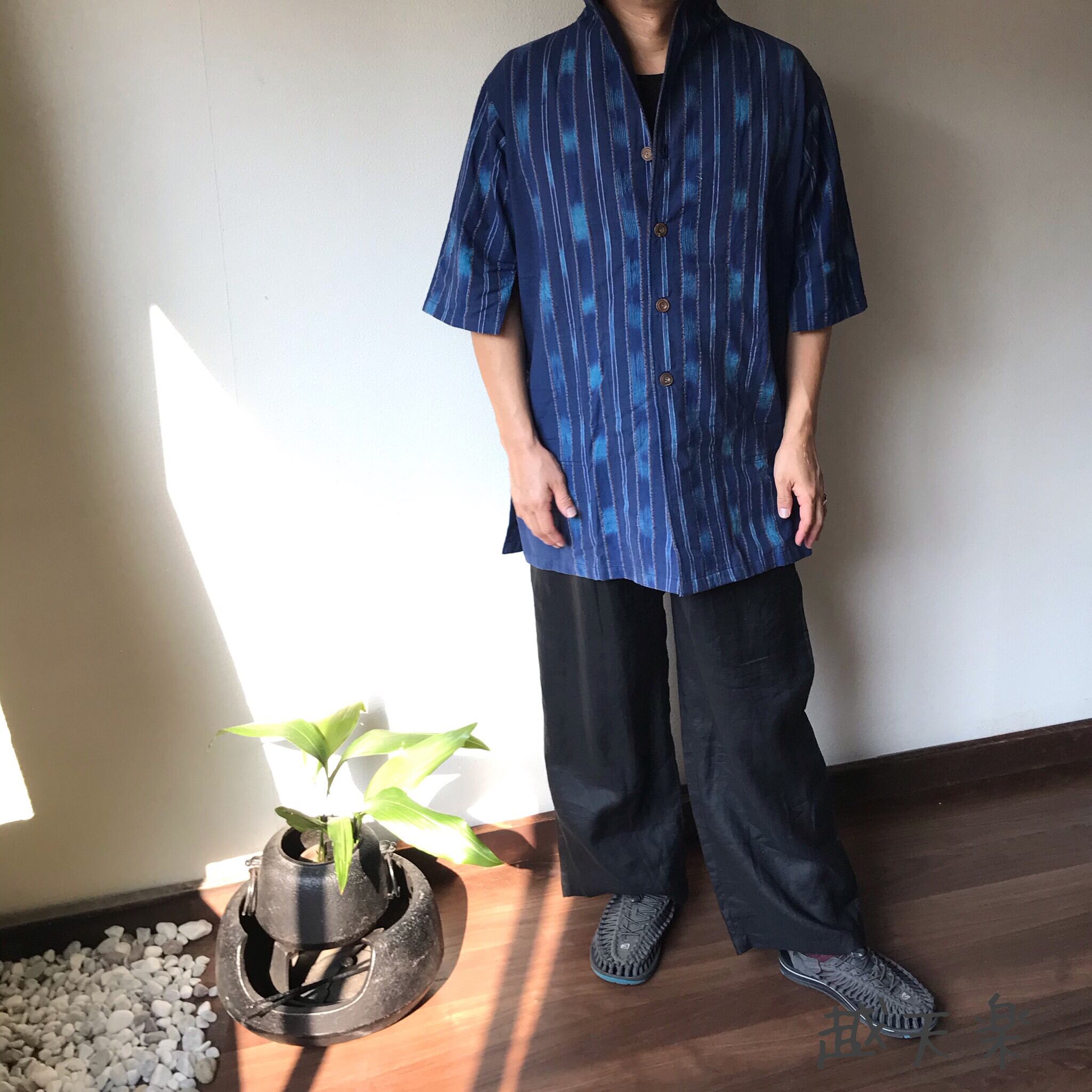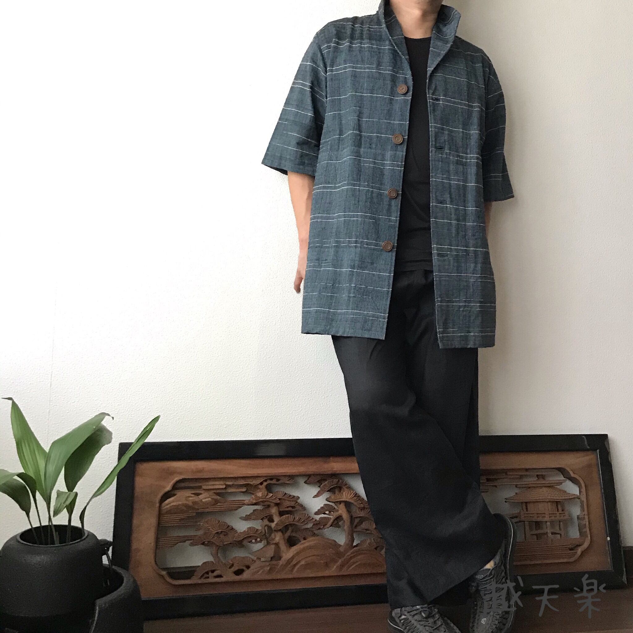 写真セットで手織り綿の後ろベルトボタン半袖メンズブラウスこちら↓