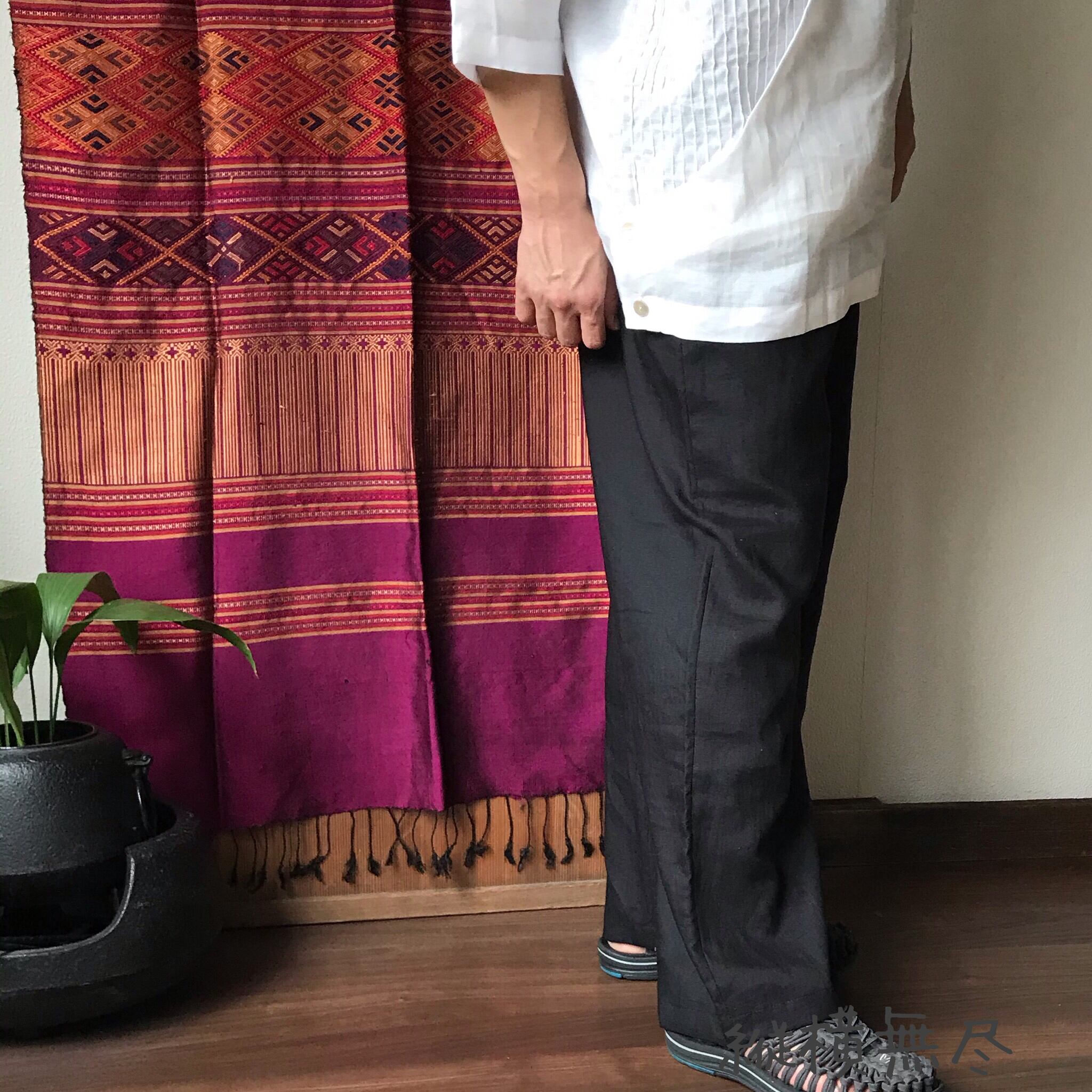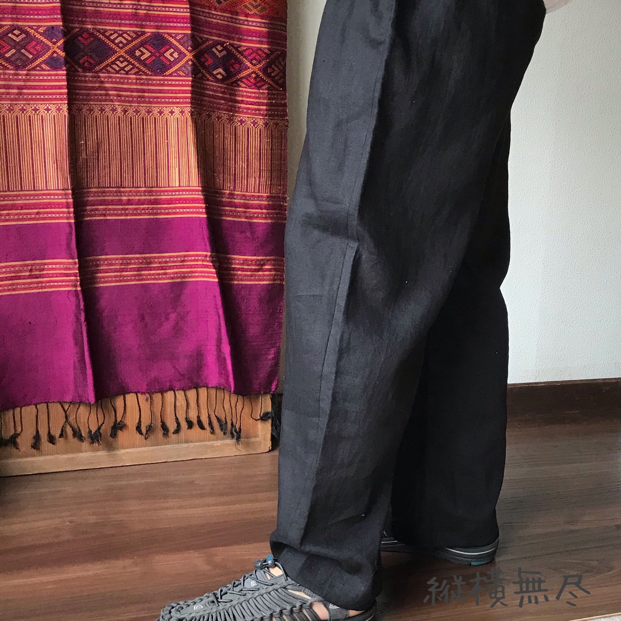 『シンプルなので着こなし自由なリネンのロング丈メンズパンツ』