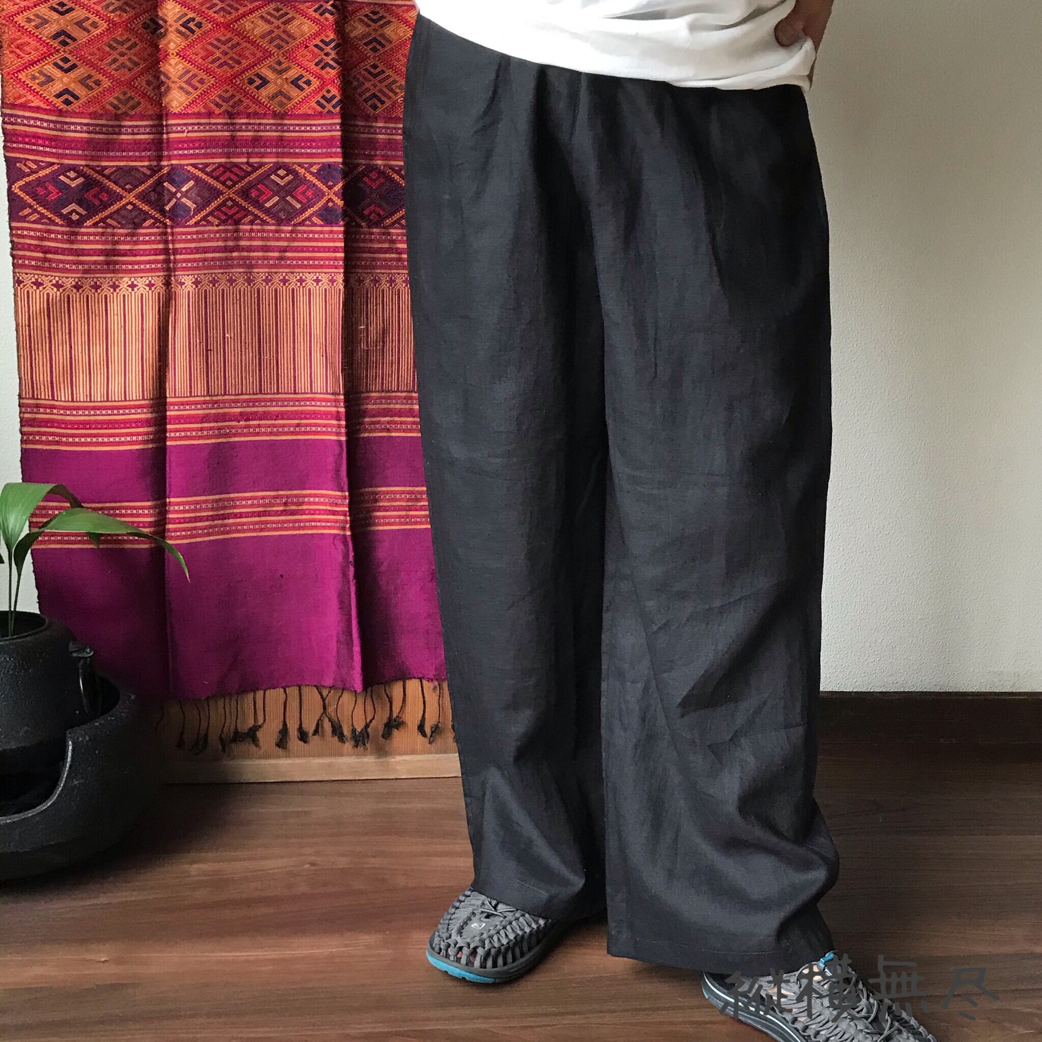 シンプルなので着こなし自由なリネンのロング丈メンズパンツ