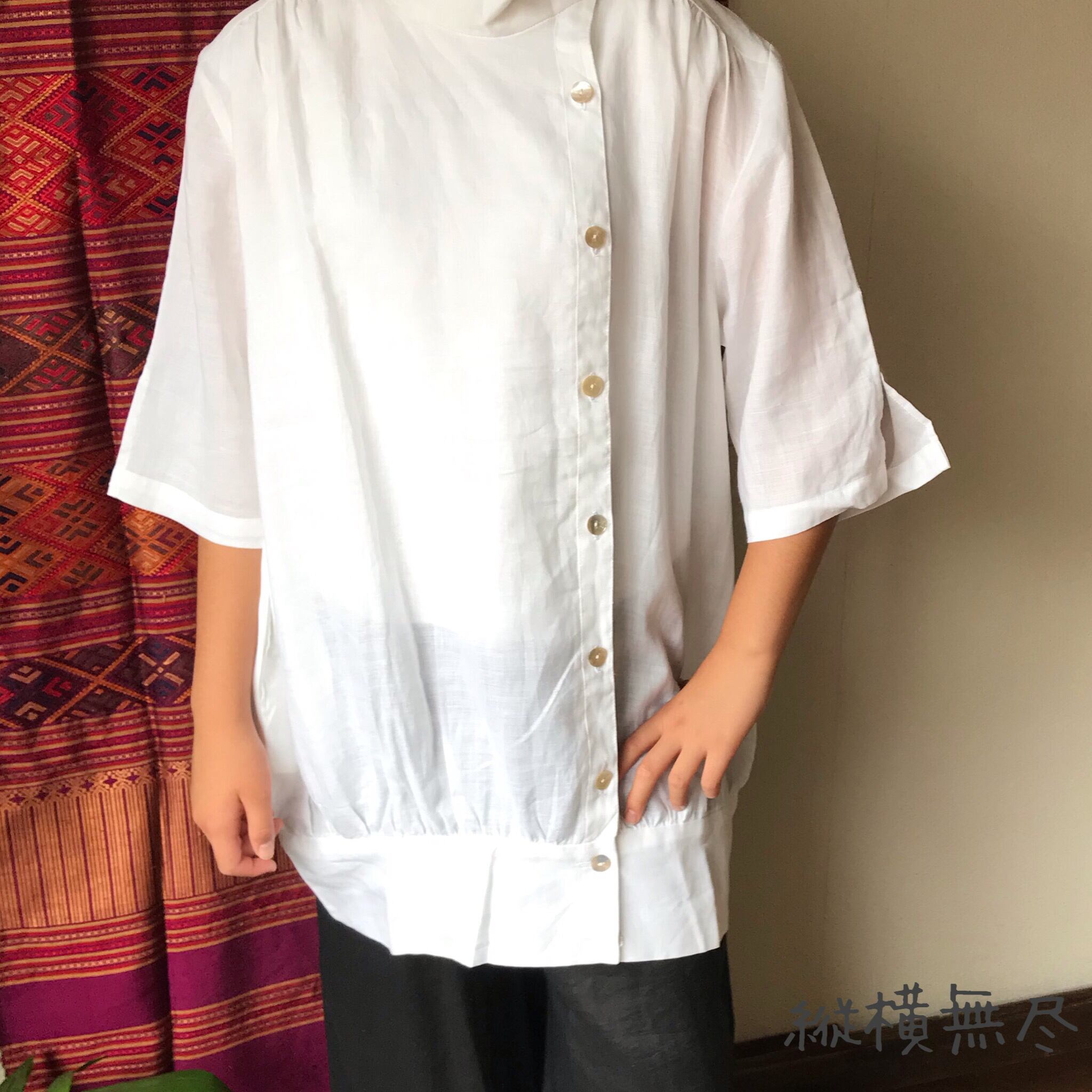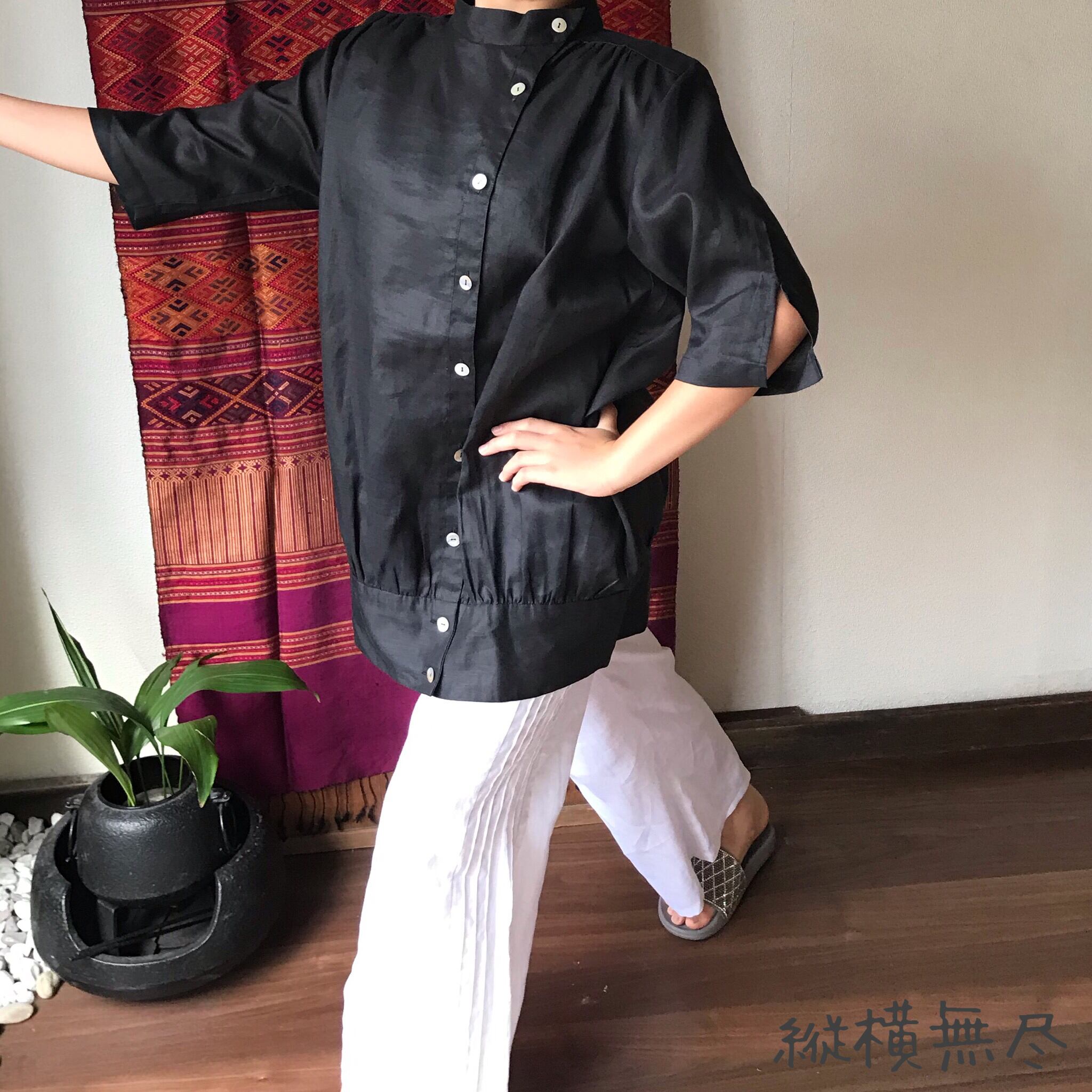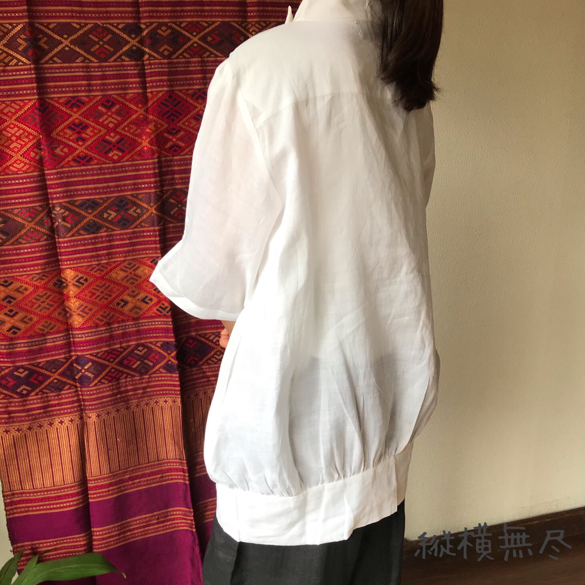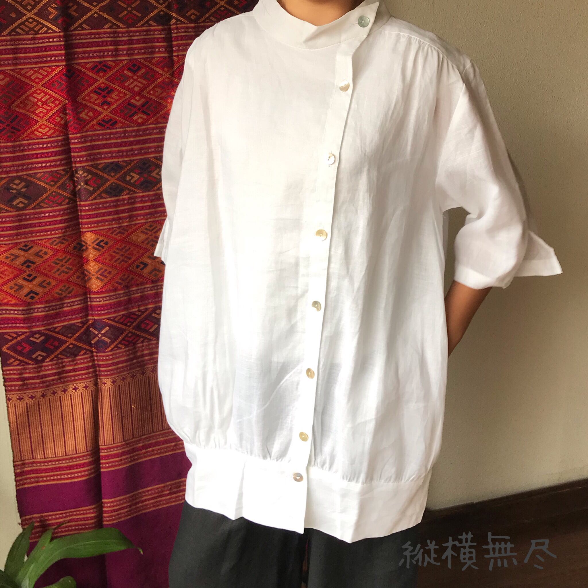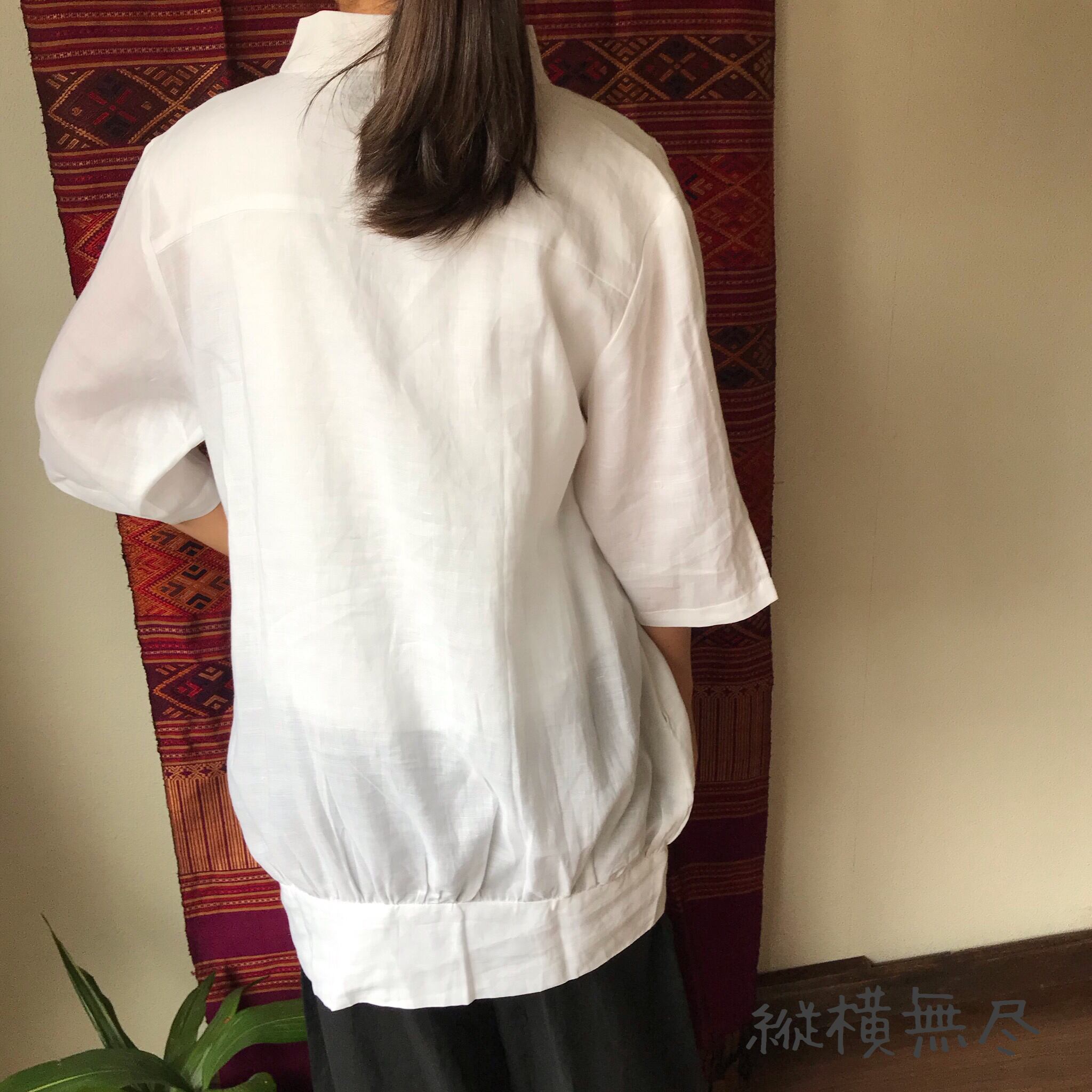 ハリのある通気性のいいリネンなので、Tシャツではラフすぎるけど、暑い季節にもお洒落したい!という時にもってこいです。