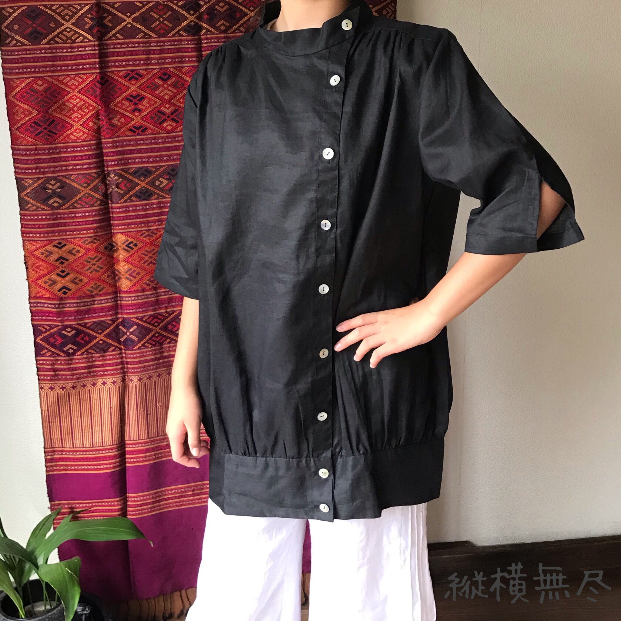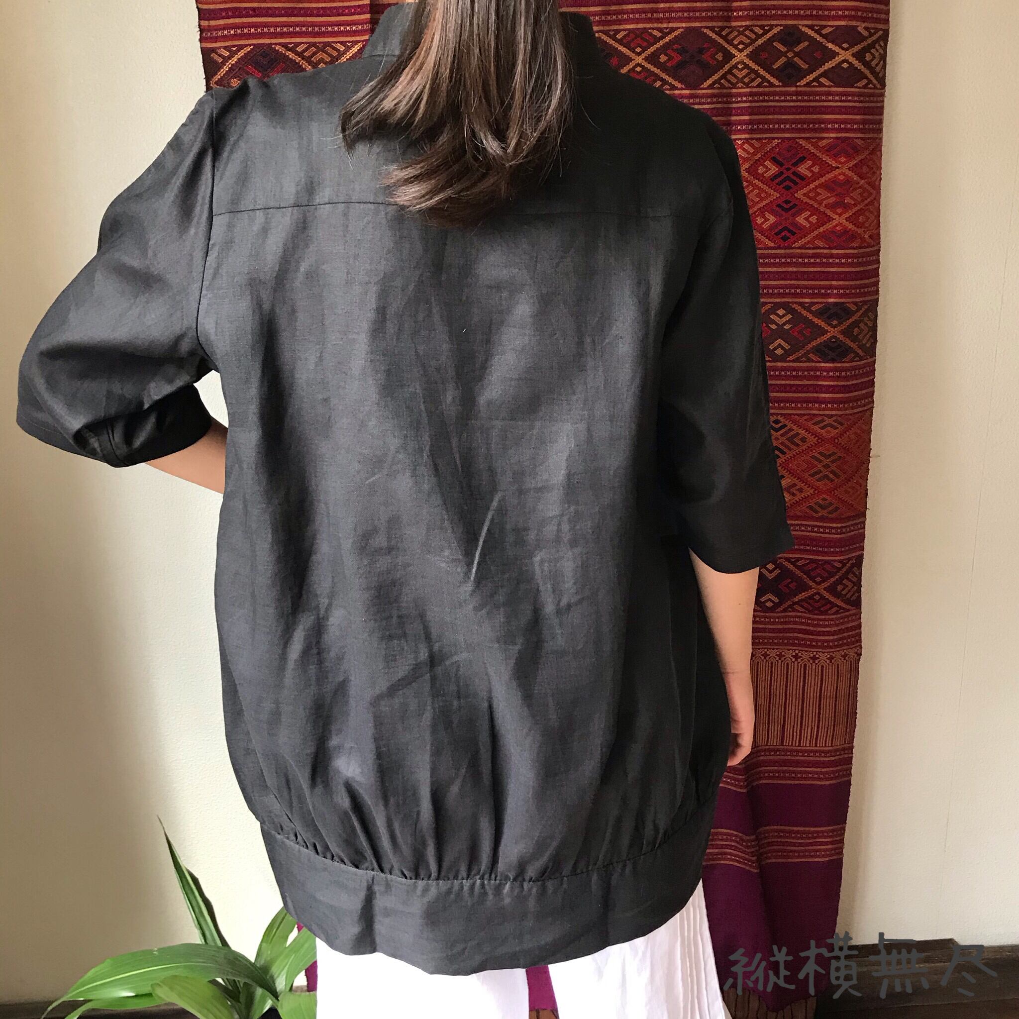 『バルーン型が可愛いリネンのチュニック半袖ブラウス』