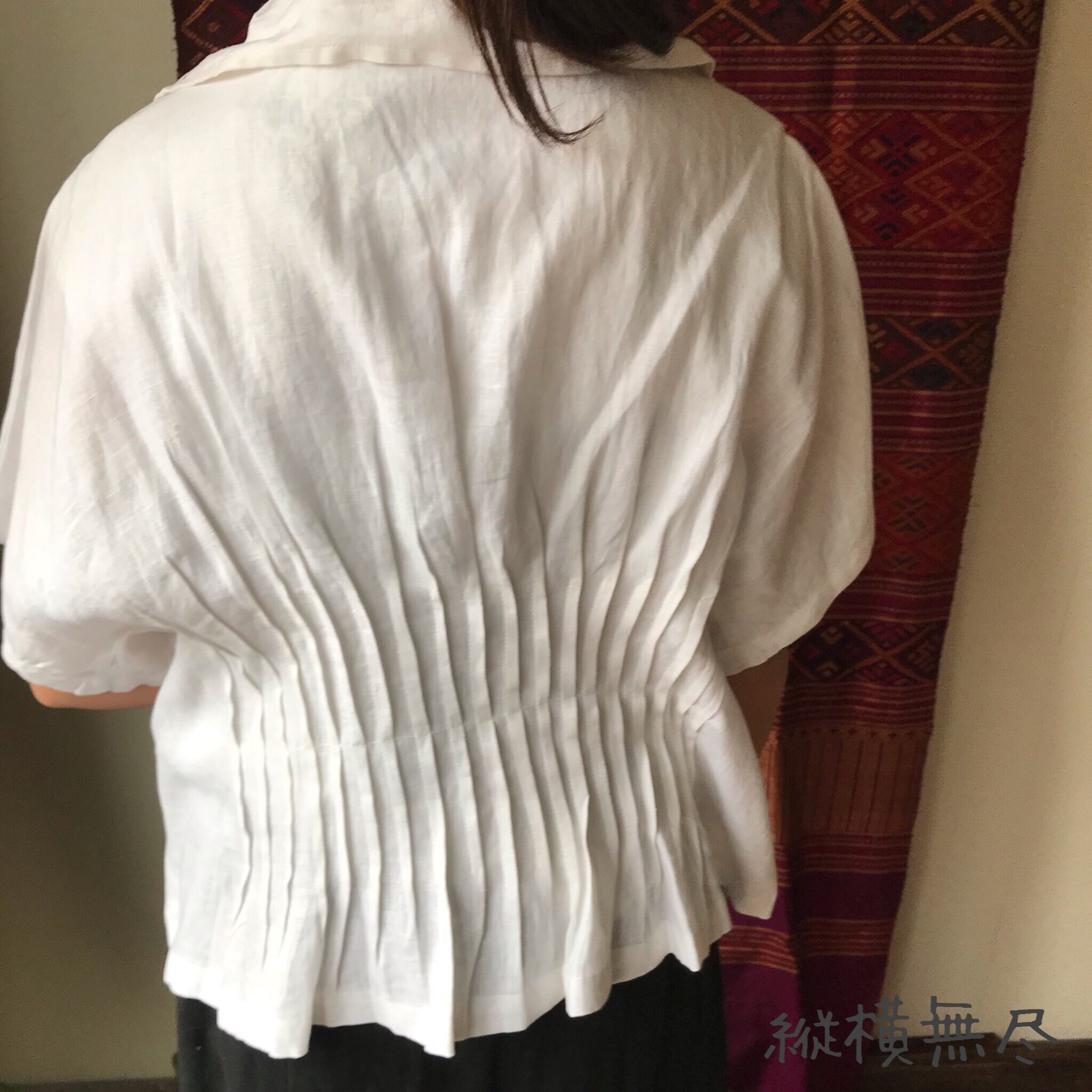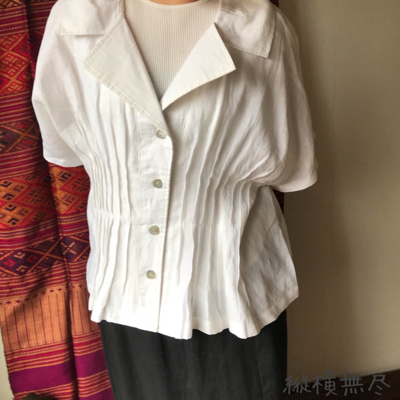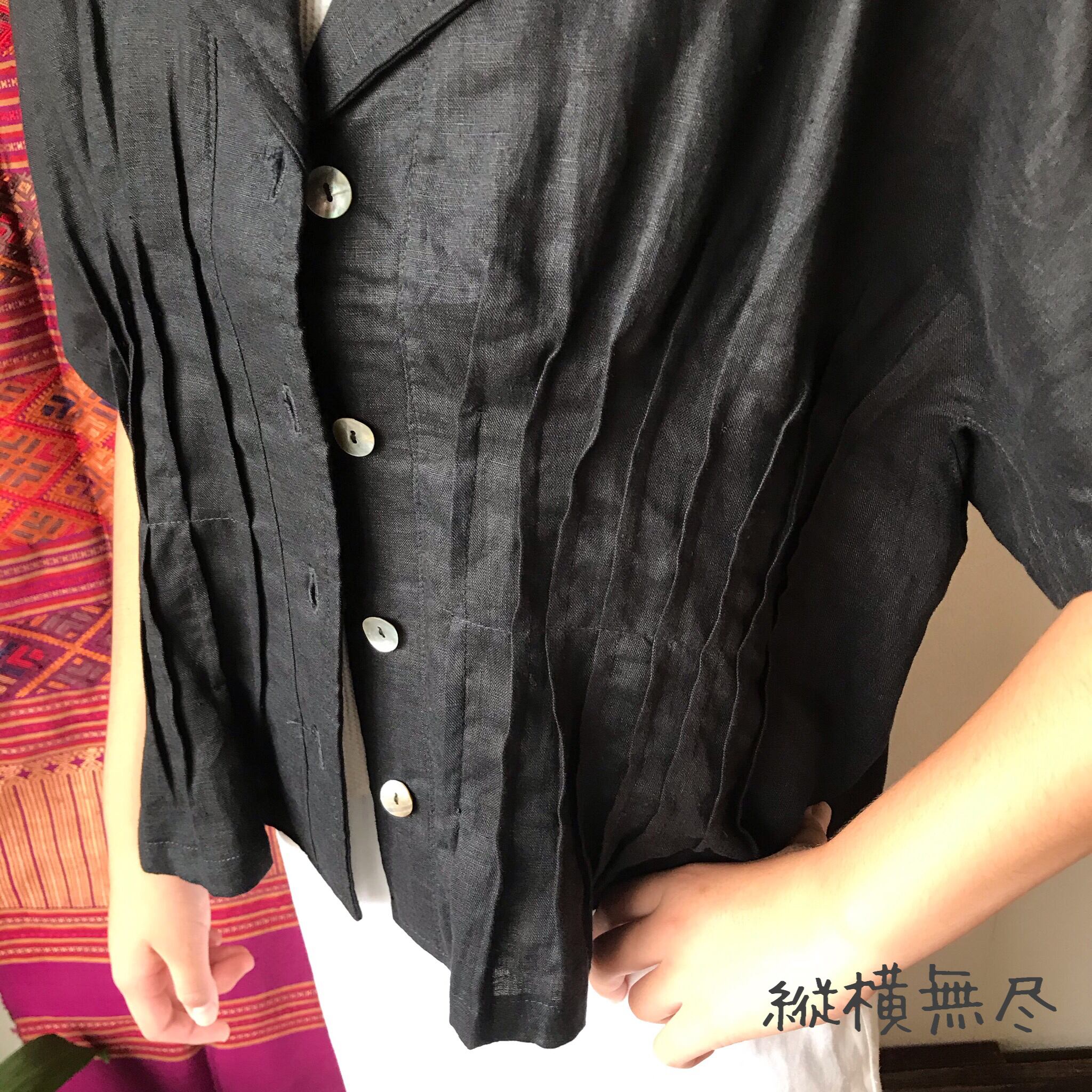 『前後のピンタックと大き目の襟が大人可愛いリネンの前開きブラウス』