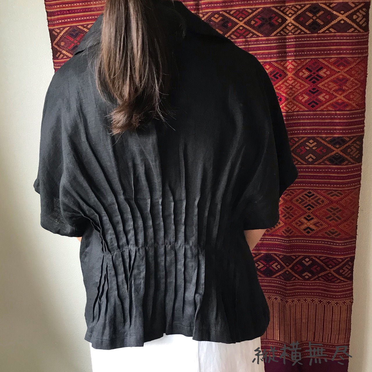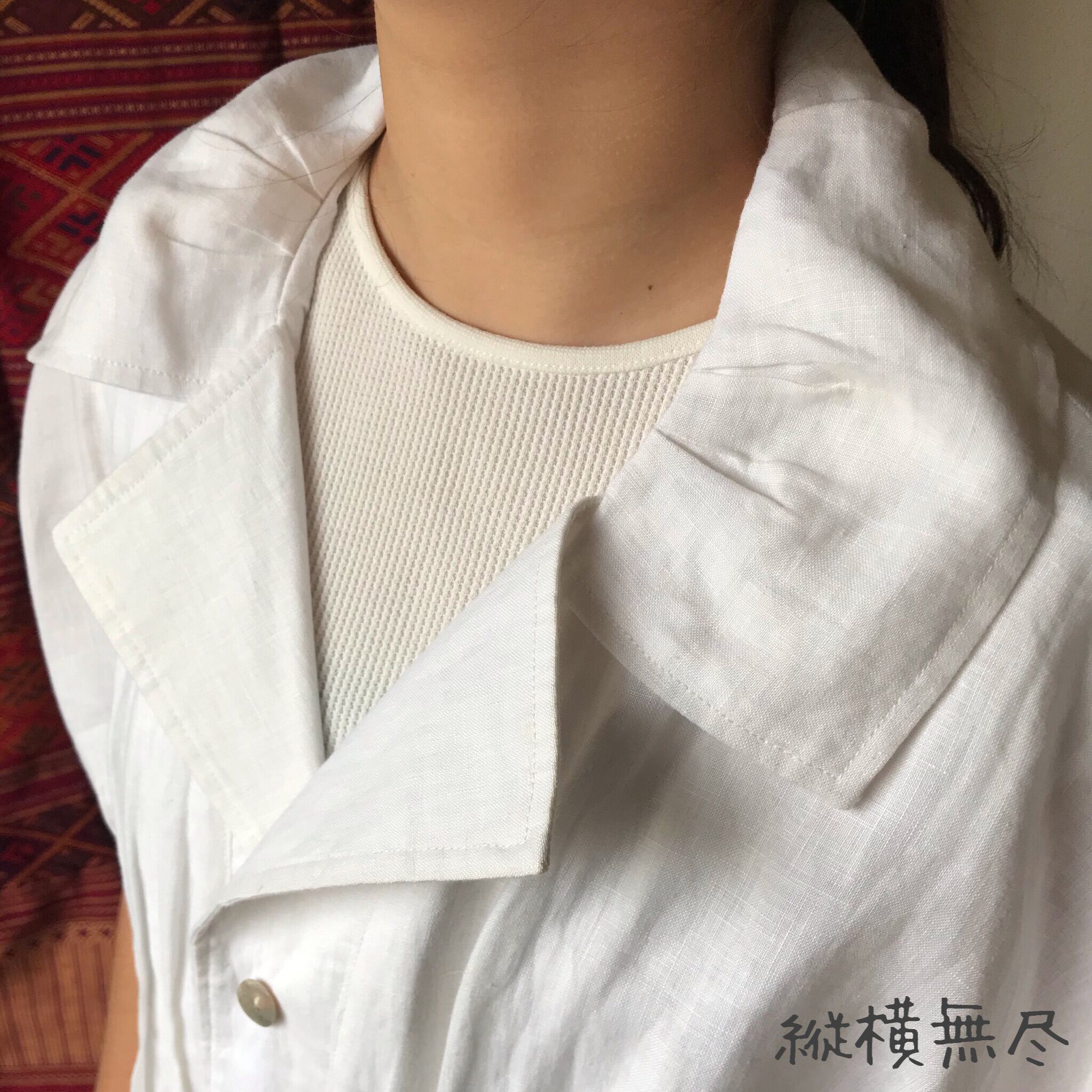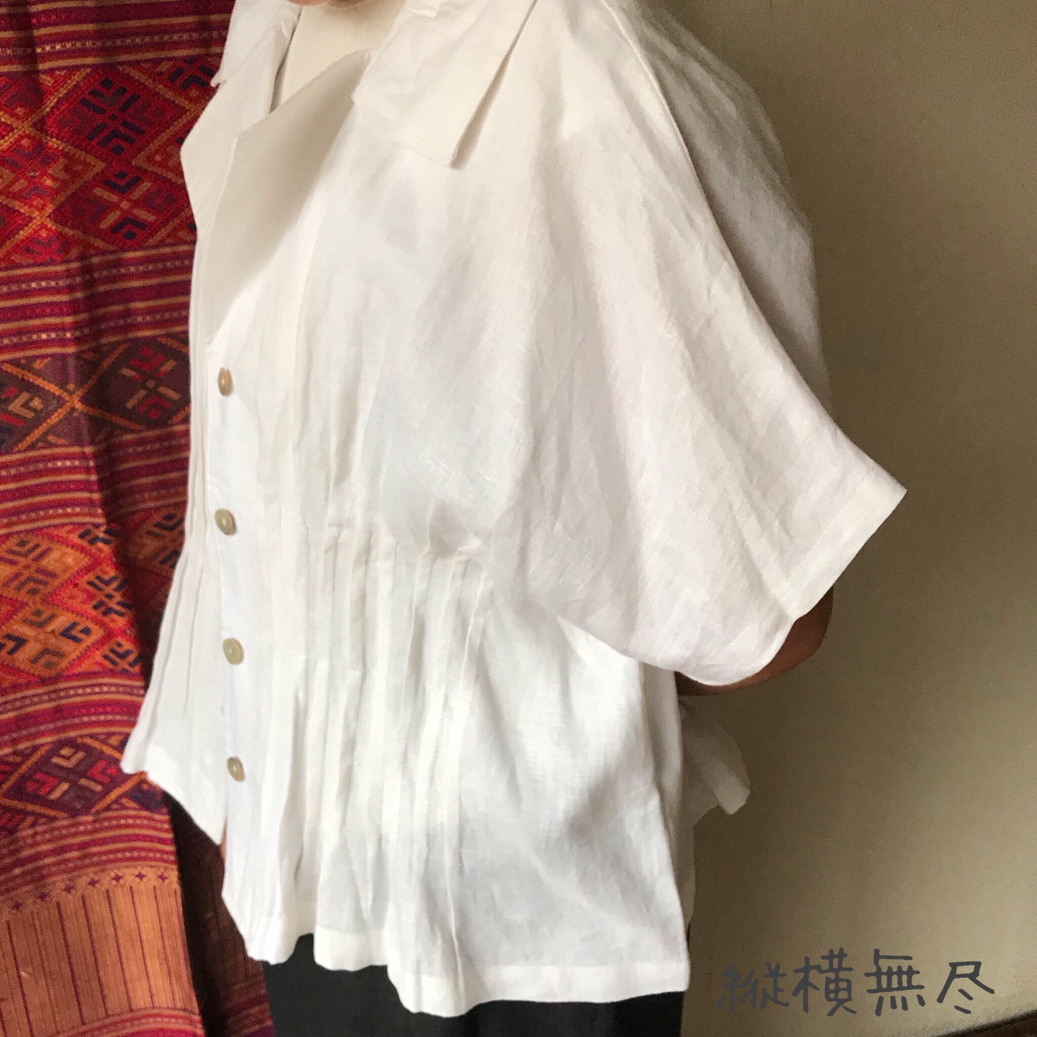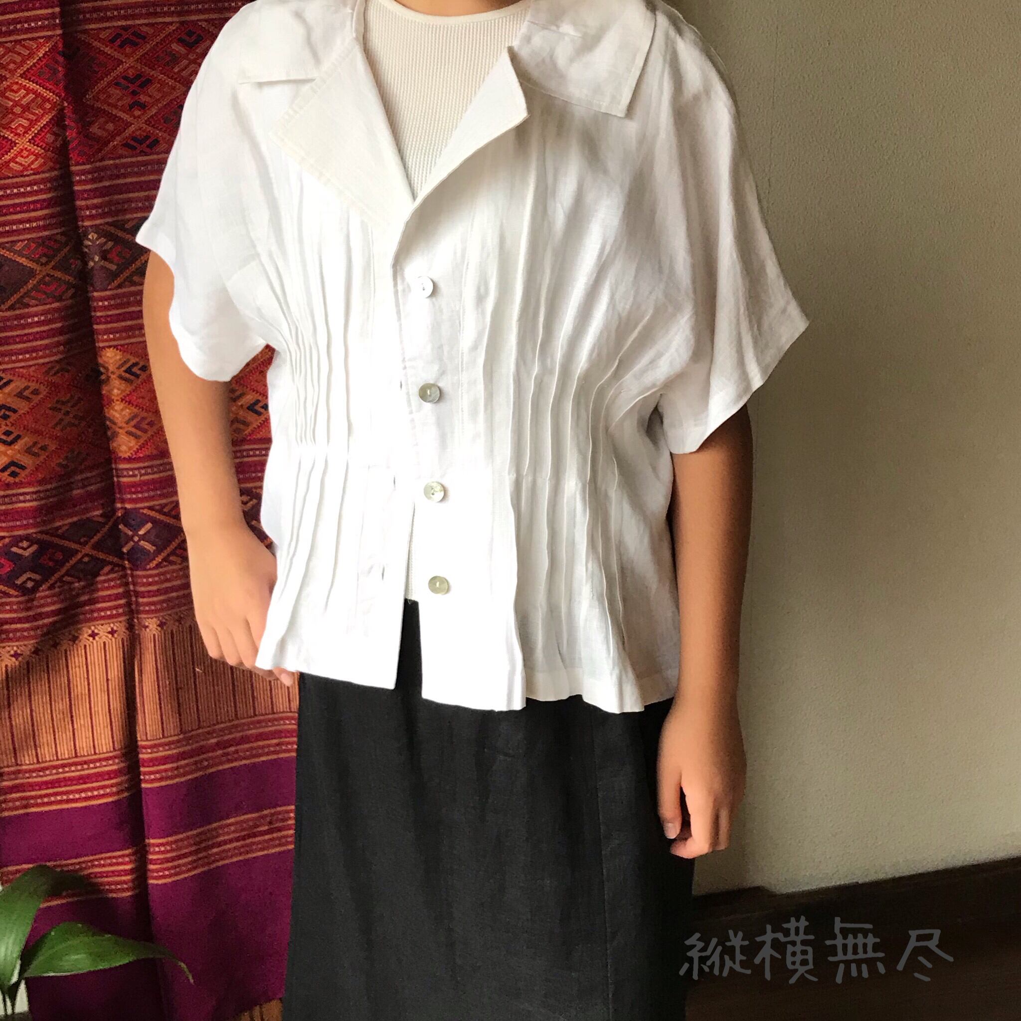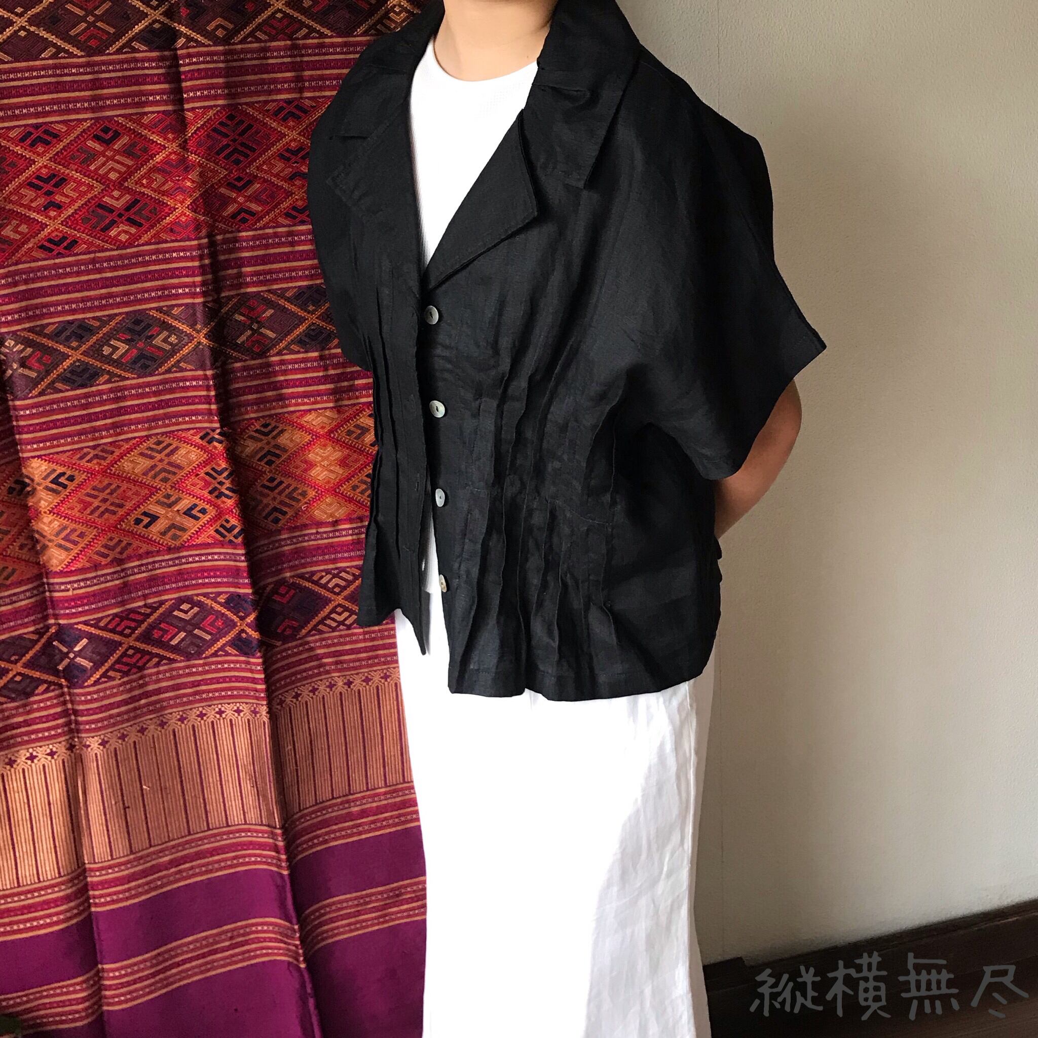 ハリのある通気性のいいリネンなので、Tシャツではラフすぎるけど、暑い季節にもお洒落したい!という時にもってこいです。