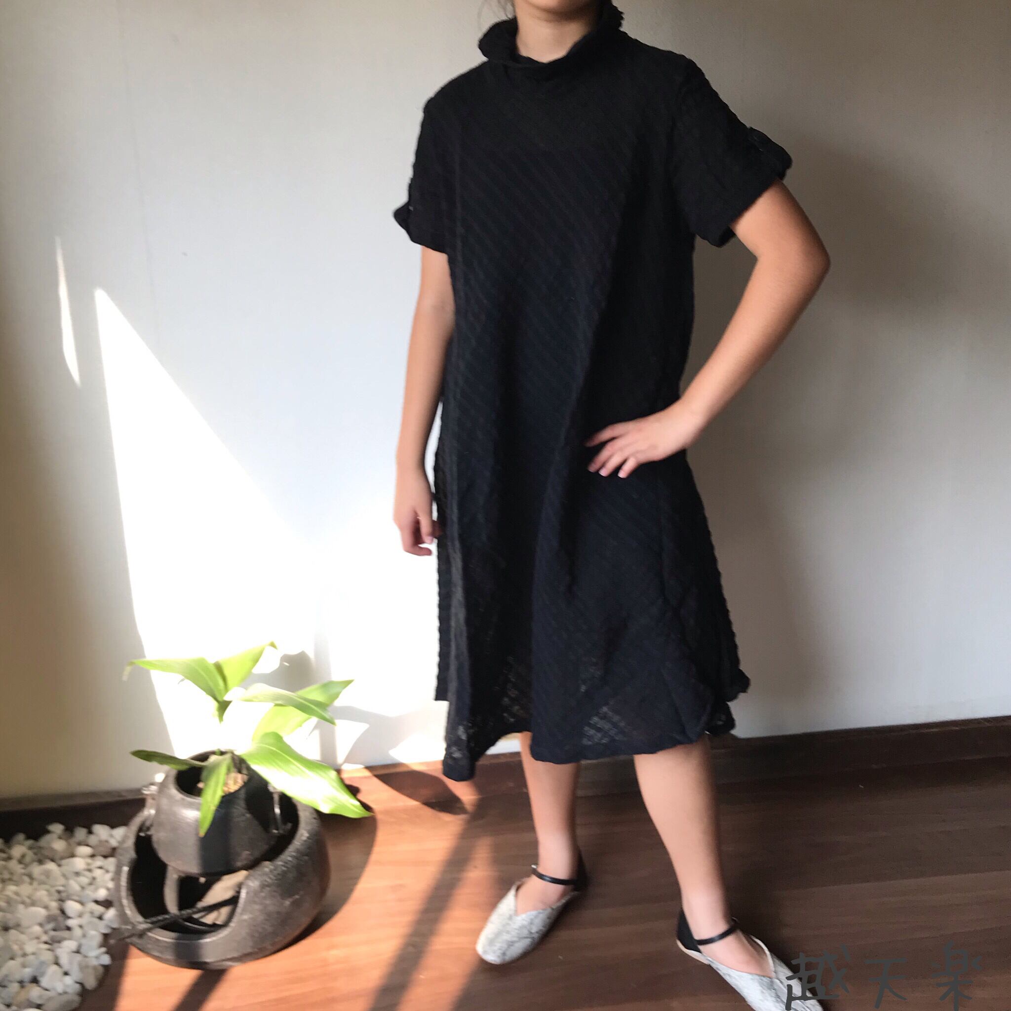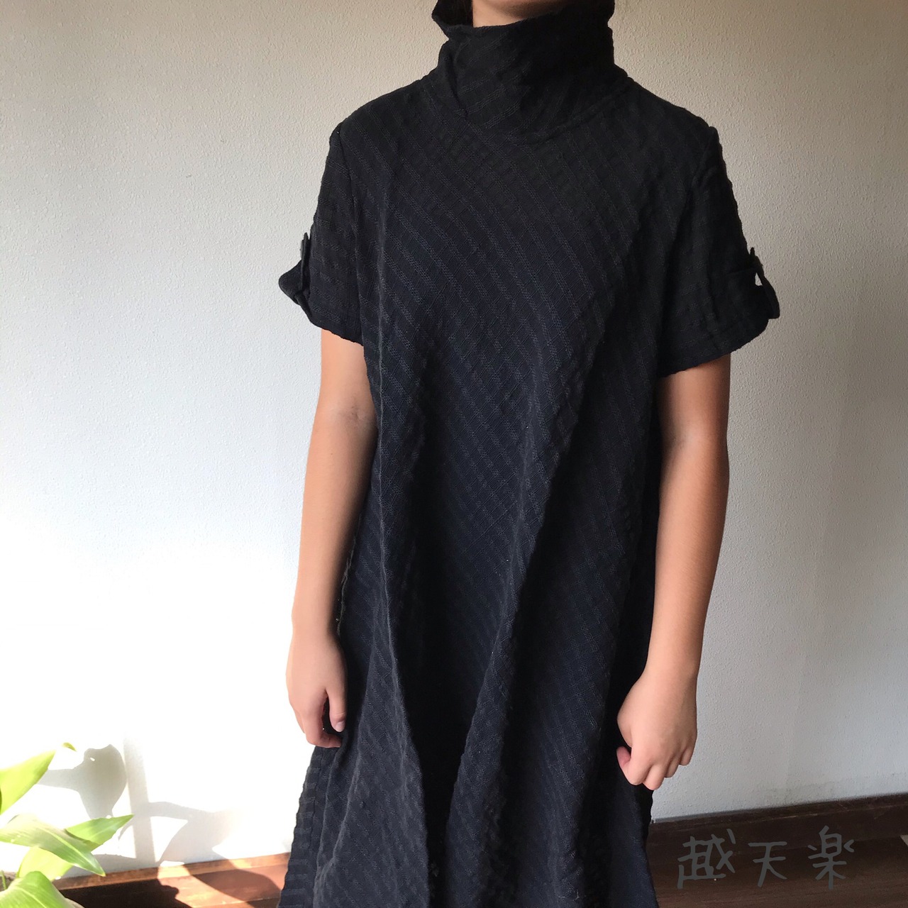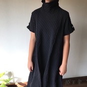 前身頃、後身頃ともバイヤスで仕上げてあるので、小柄でほっそりとされた方はふわっと可愛いワンピースに、小柄でふっくらされた方はすっきり可愛いワンピースに、大柄な方はチュニック風に着ていただけます。