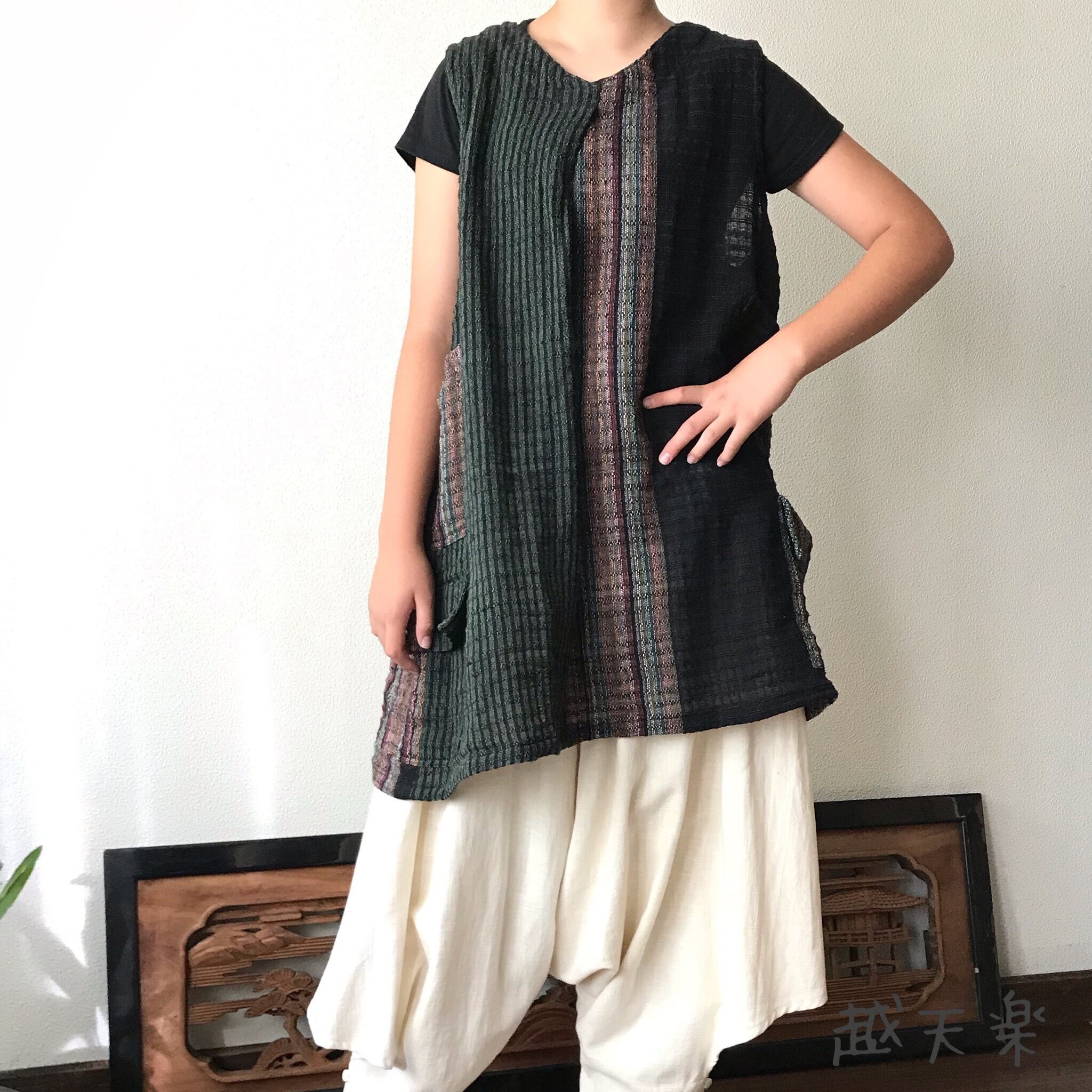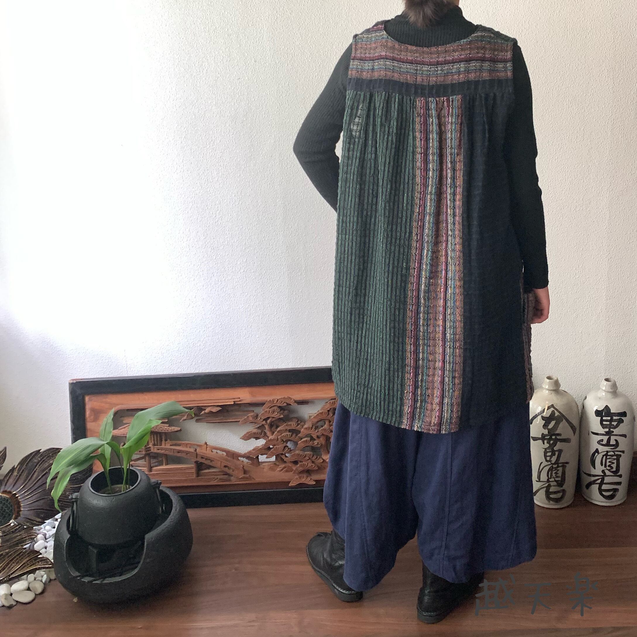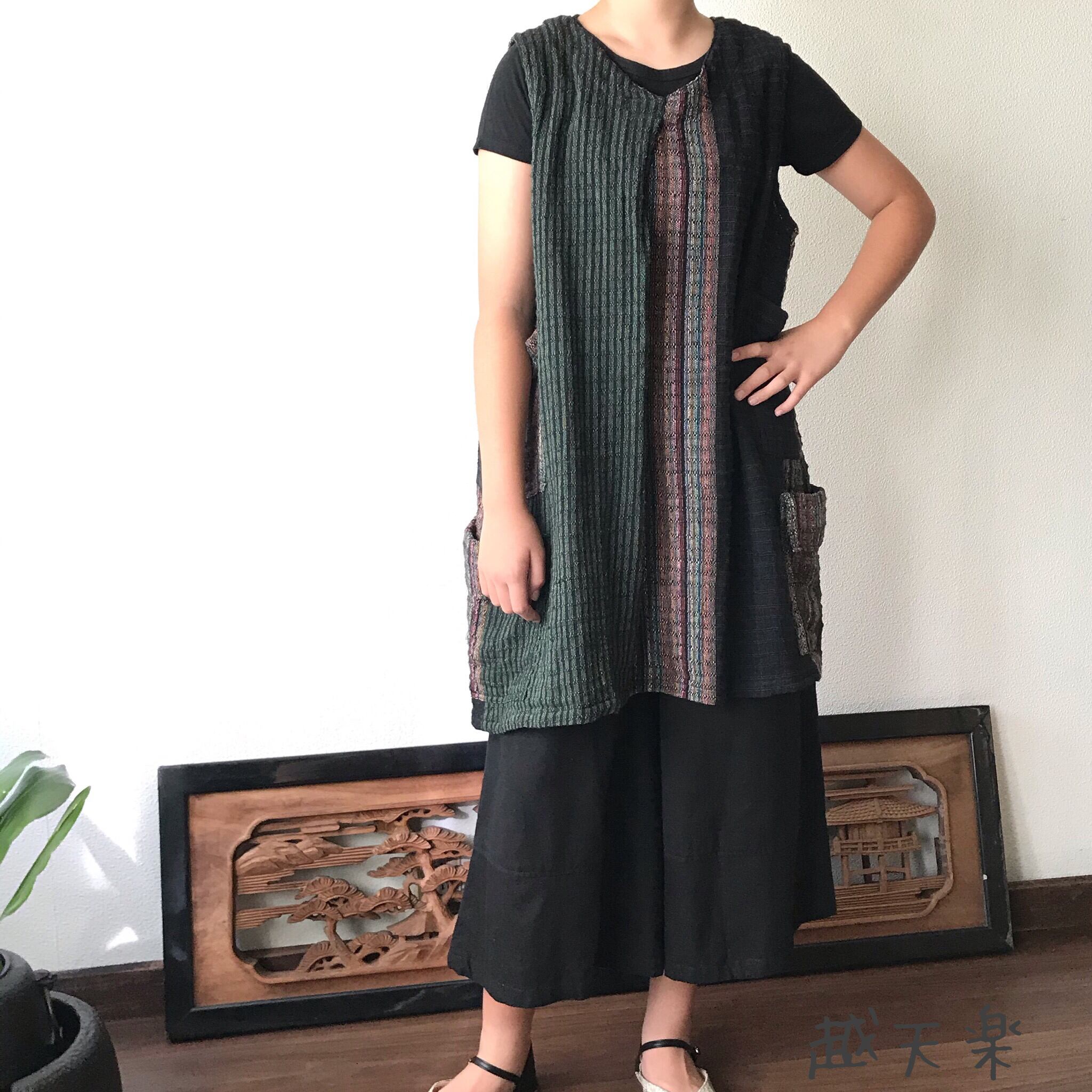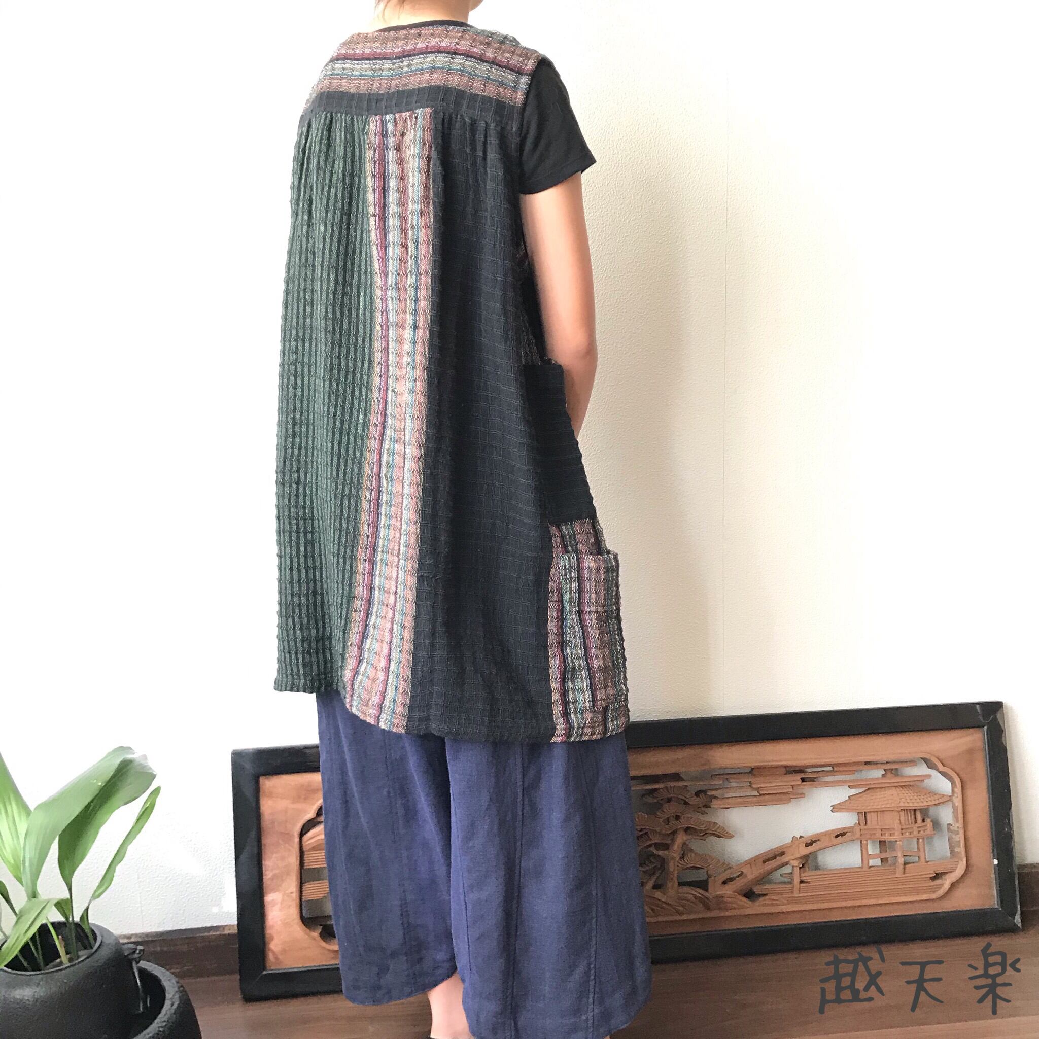 『ベストでもチュニックでも自由自在にオールシーズンでつかえる手織り綿ベストブラウス』