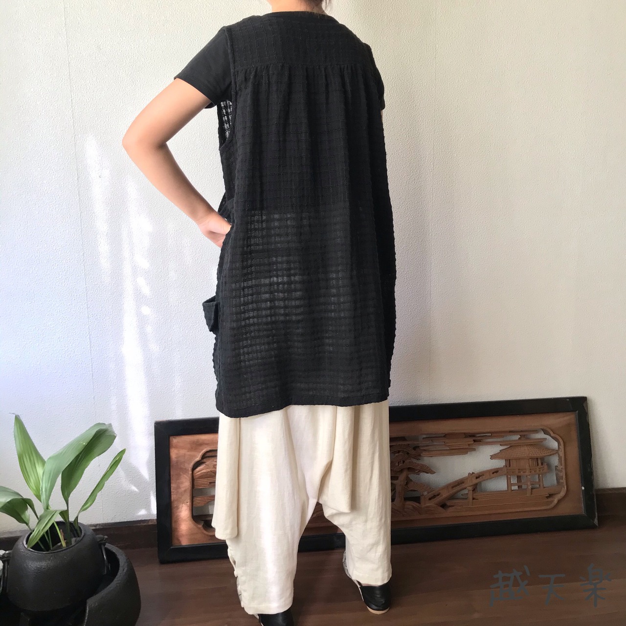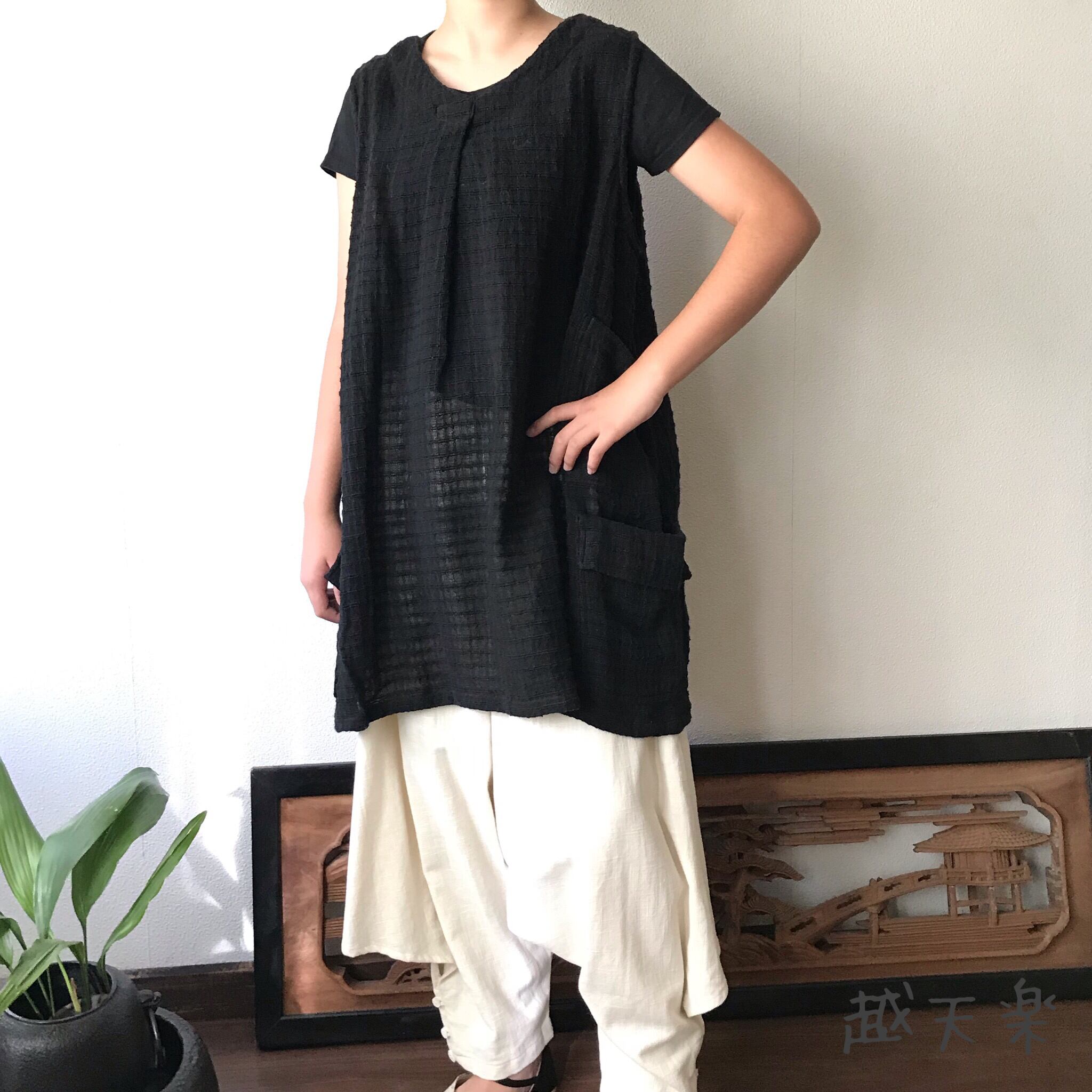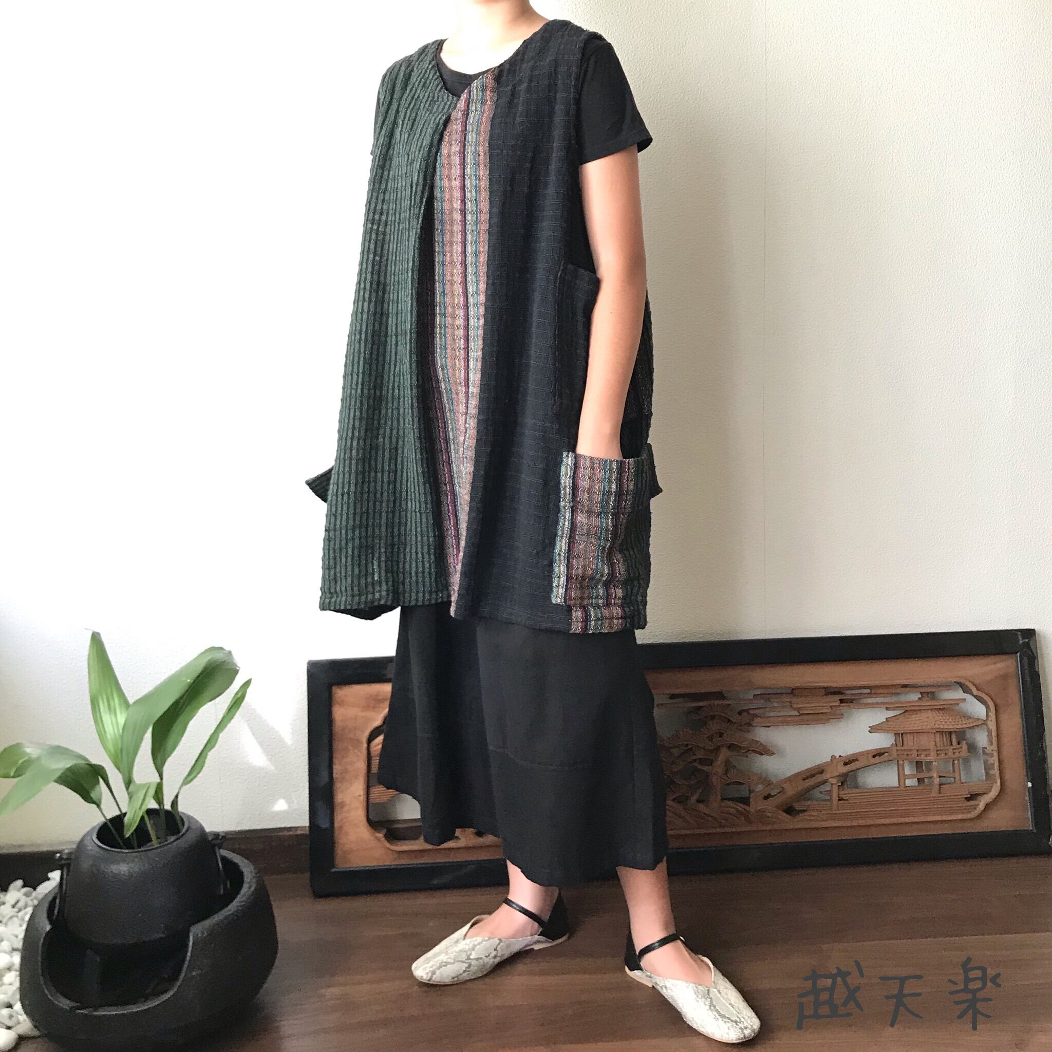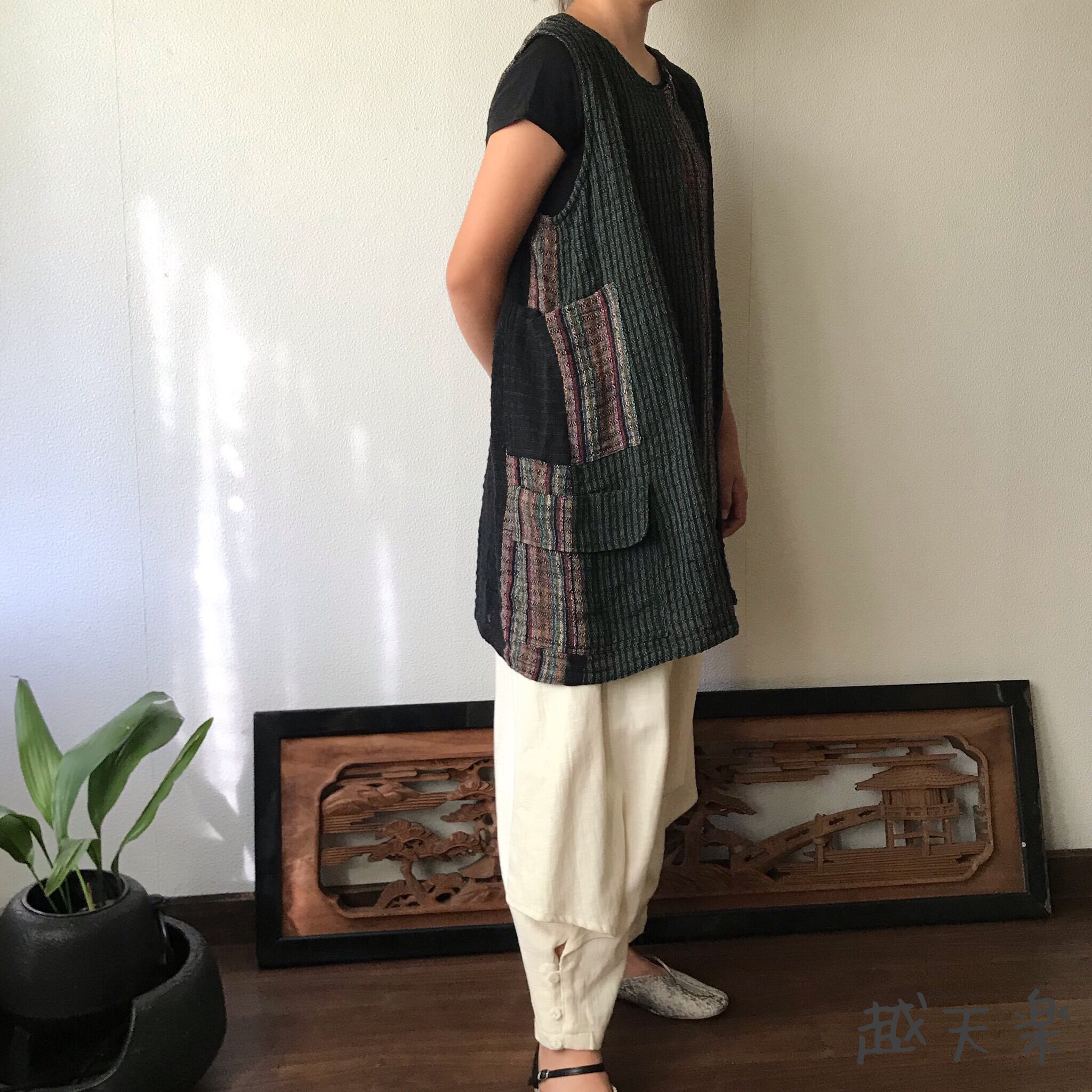 『ベストでもチュニックでも自由自在にオールシーズンでつかえる手織り綿ベストブラウス』