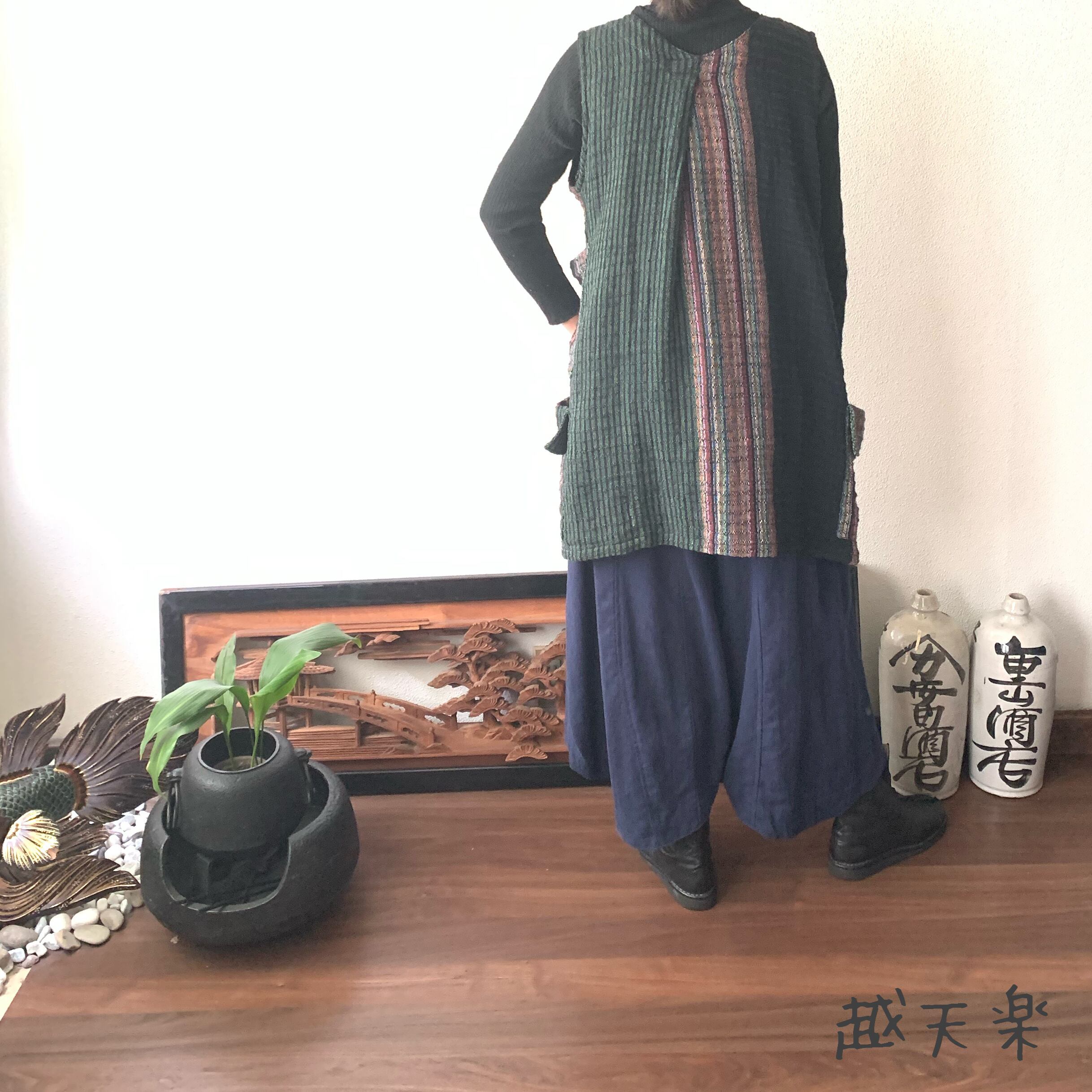 写真セットで履いている手織り綿のガウチョパンツはこちら↓