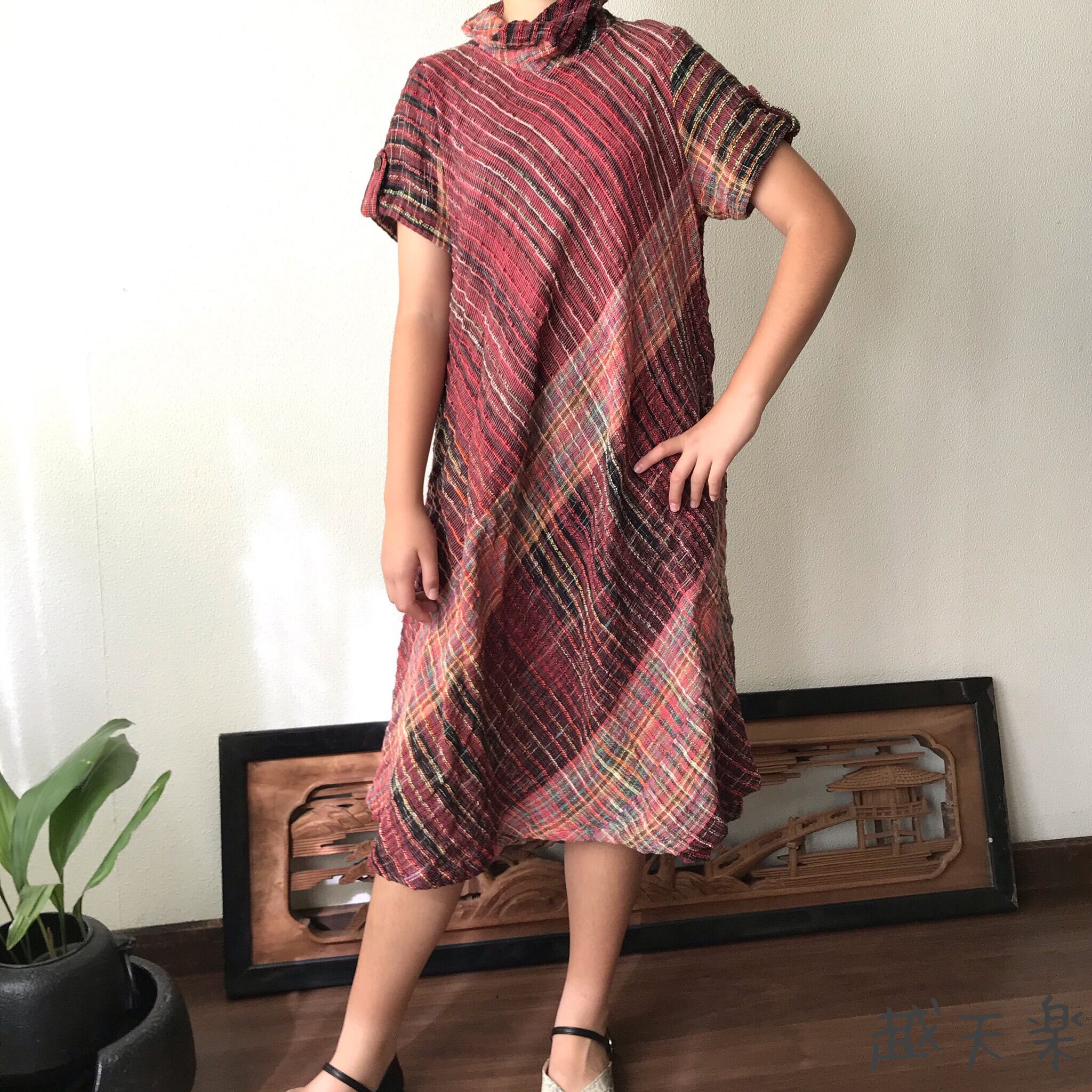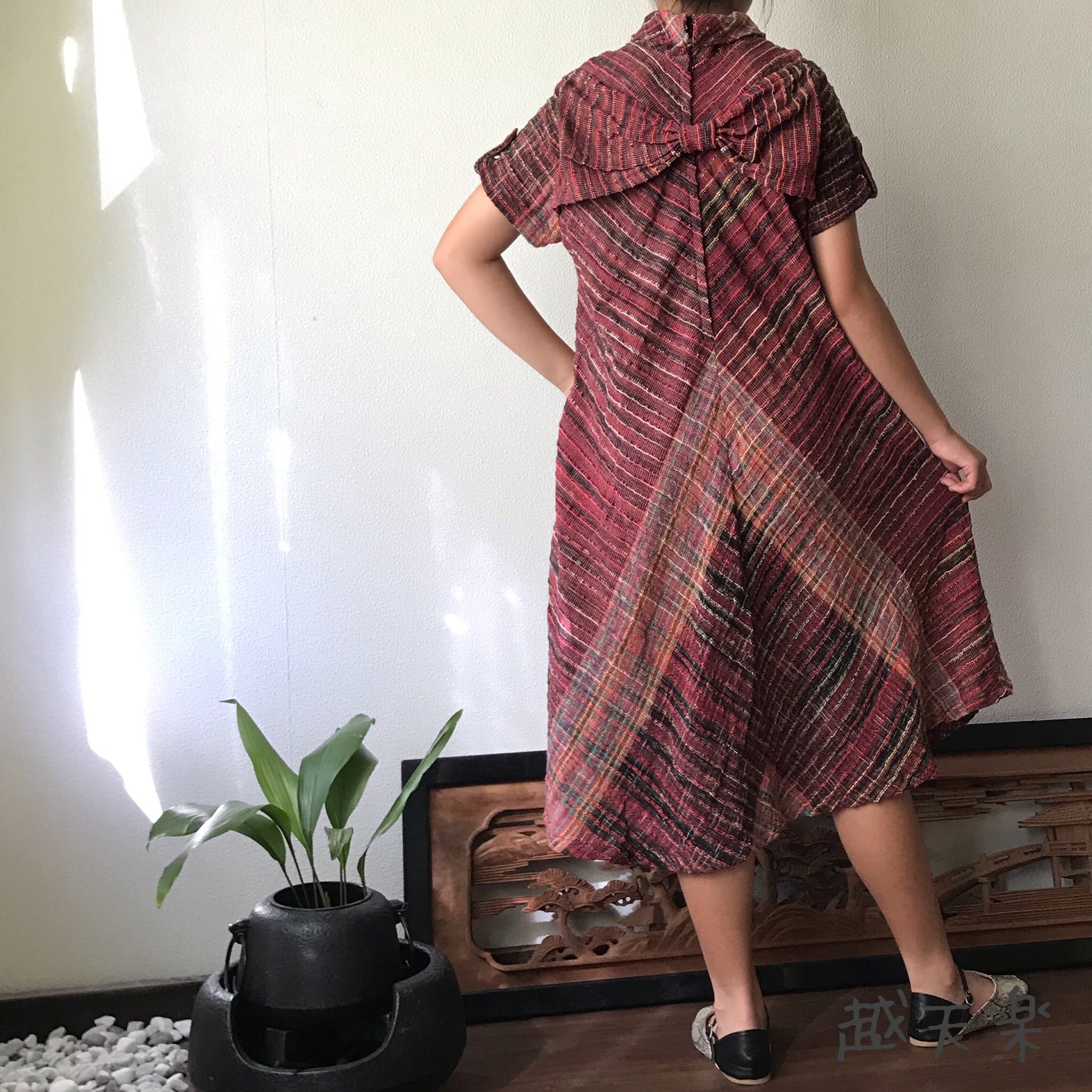 お店ではべっぴんさんワンピースと呼ばれている、大人の可愛さ満載な手織り綿のワンピースです。