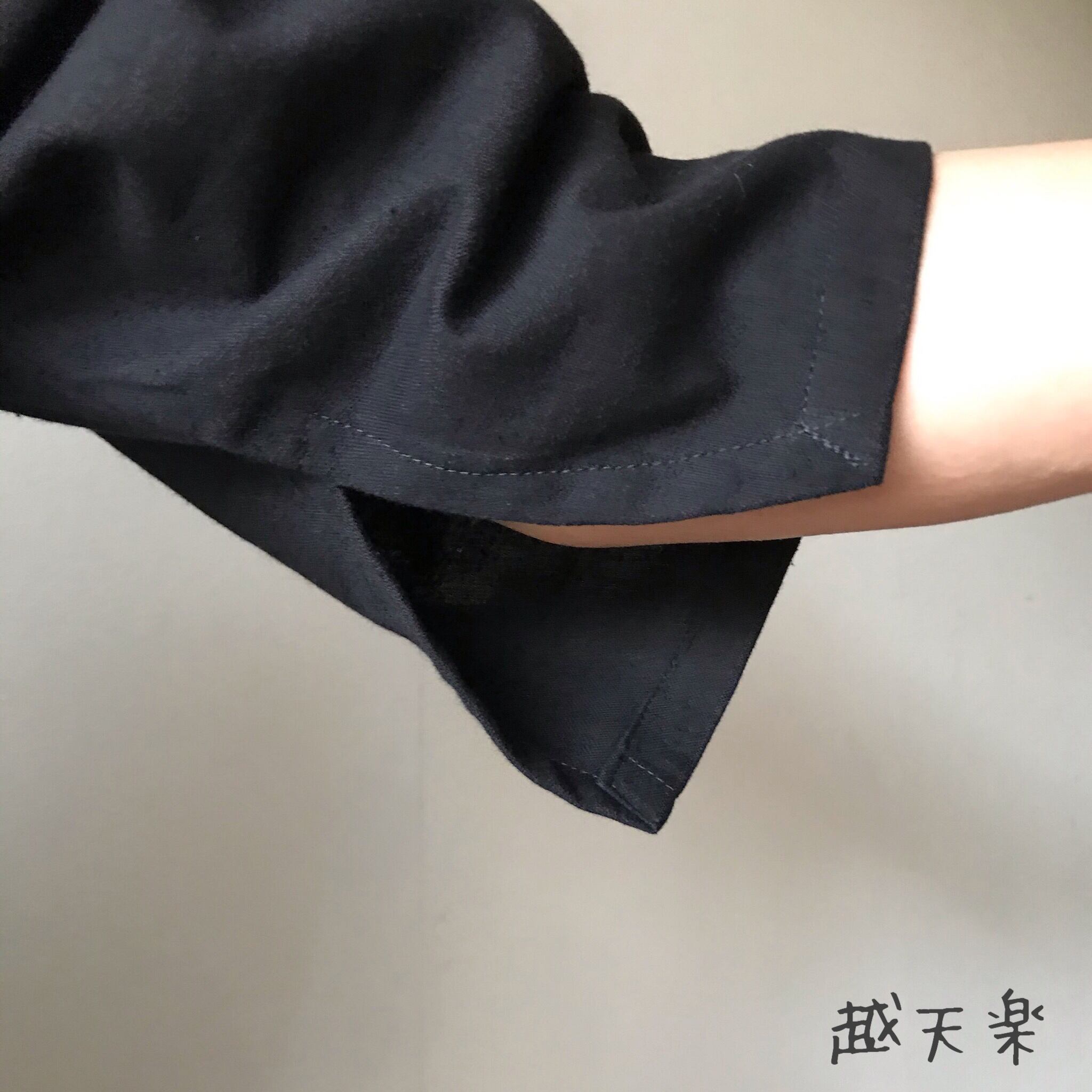 袖口にはスリットも入っているので、暑がりの方でも少しでも風通し良く着ていただけます。