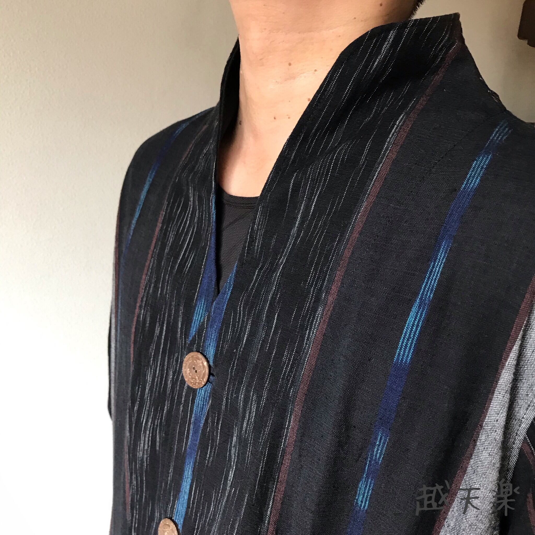 メンズ仕立てですがもちろん女性が羽織ってもいいですし、ダブルボタン手織り綿メンズパンツ(https://etenraku.base.ec/items/27960933)の共生地で作っていますので、上下にセットしてもスーツのように着ていただいても素敵です。