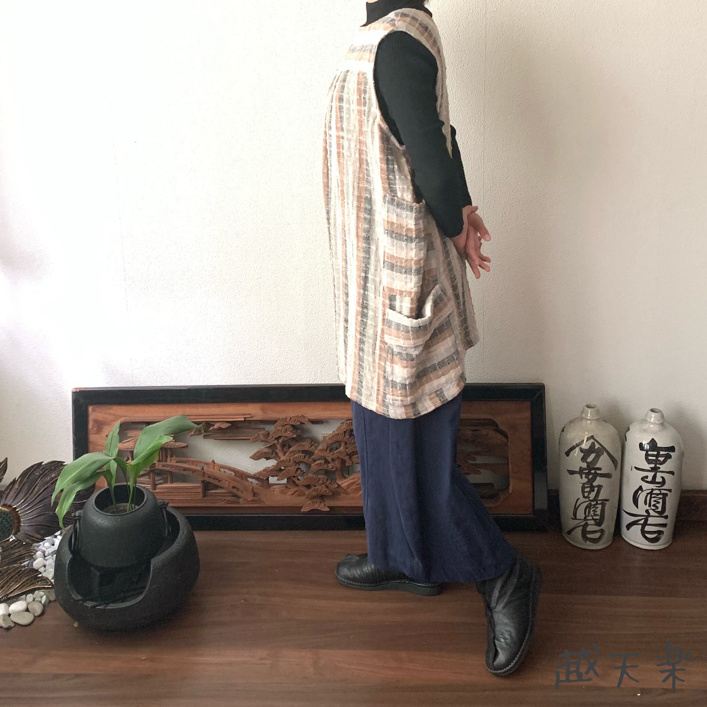 『ベストでもチュニックでも自由自在にオールシーズンでつかえる手織り綿ベストブラウス』