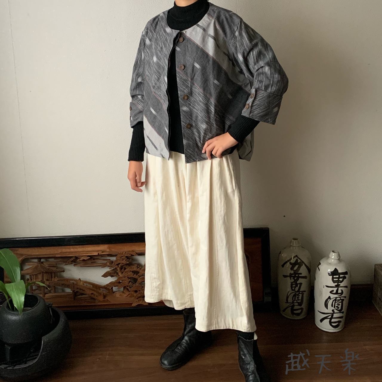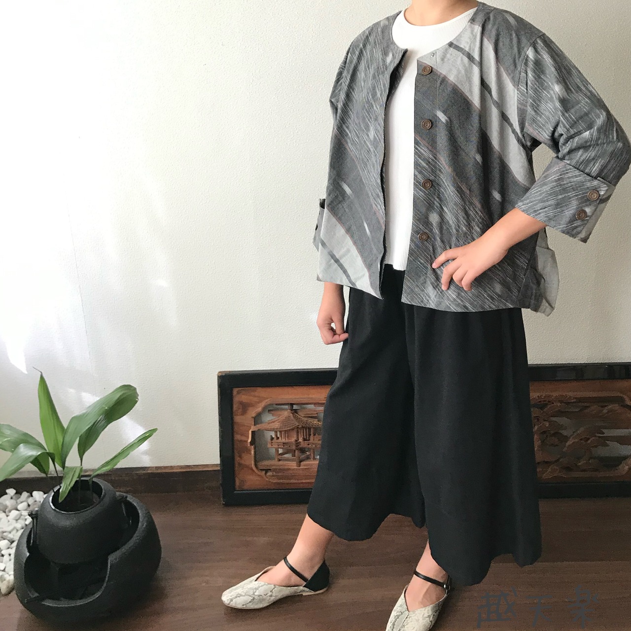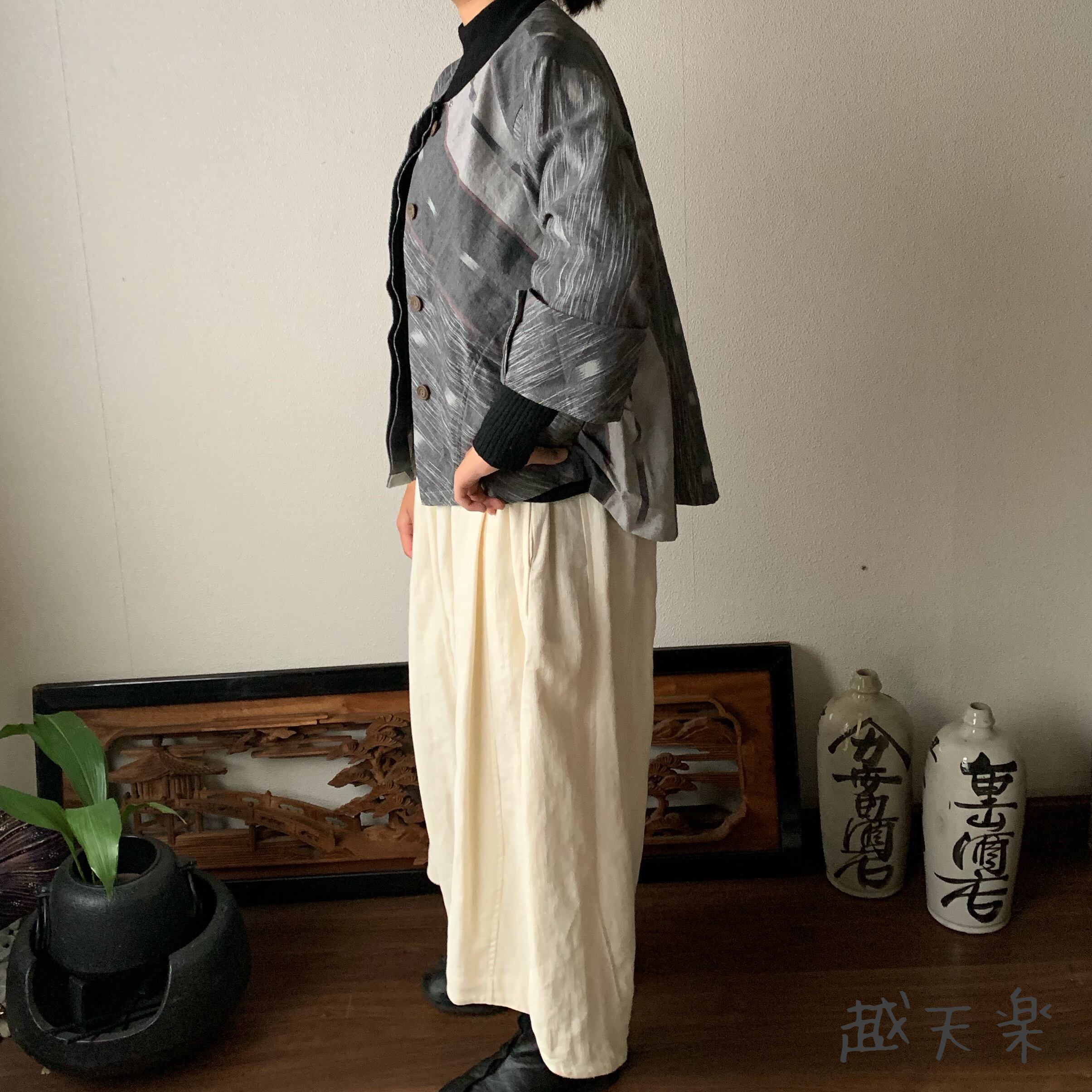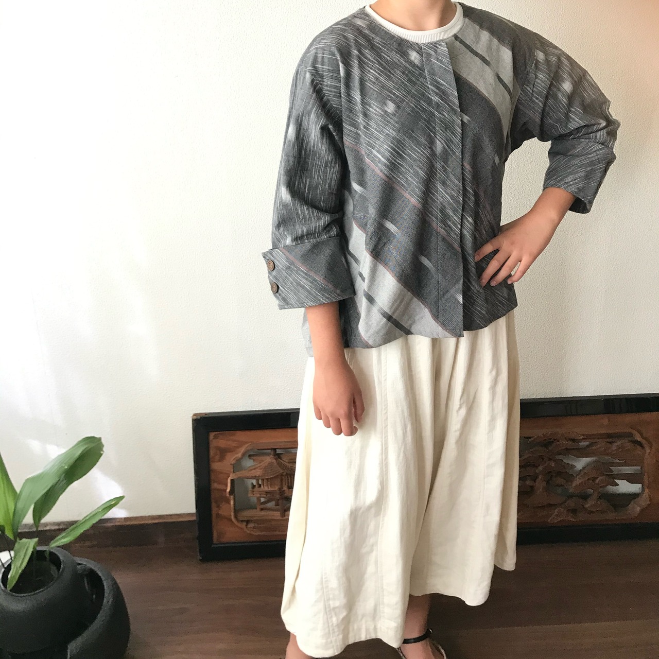 写真セットで履いているヘンプのガウチョパンツはこちら↓