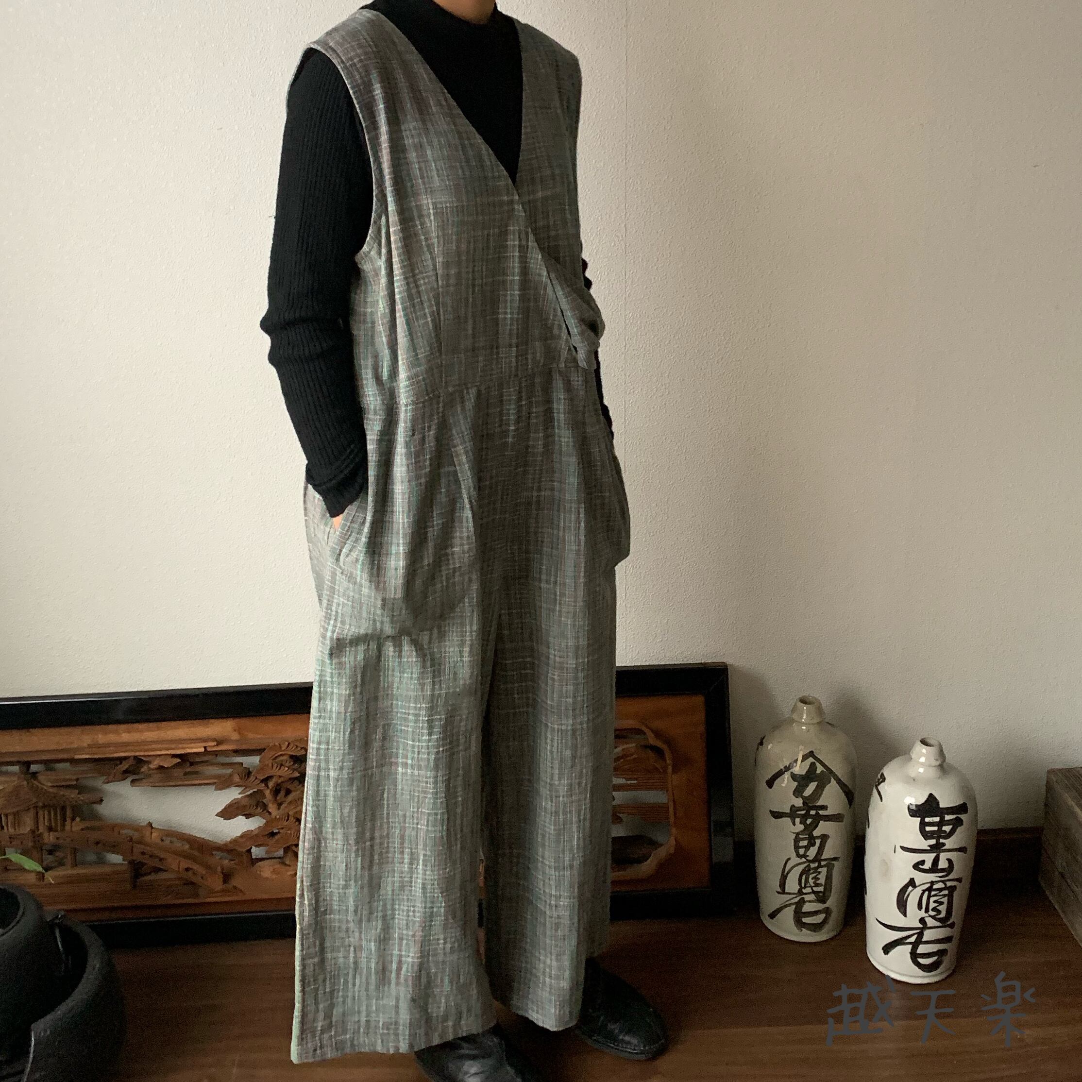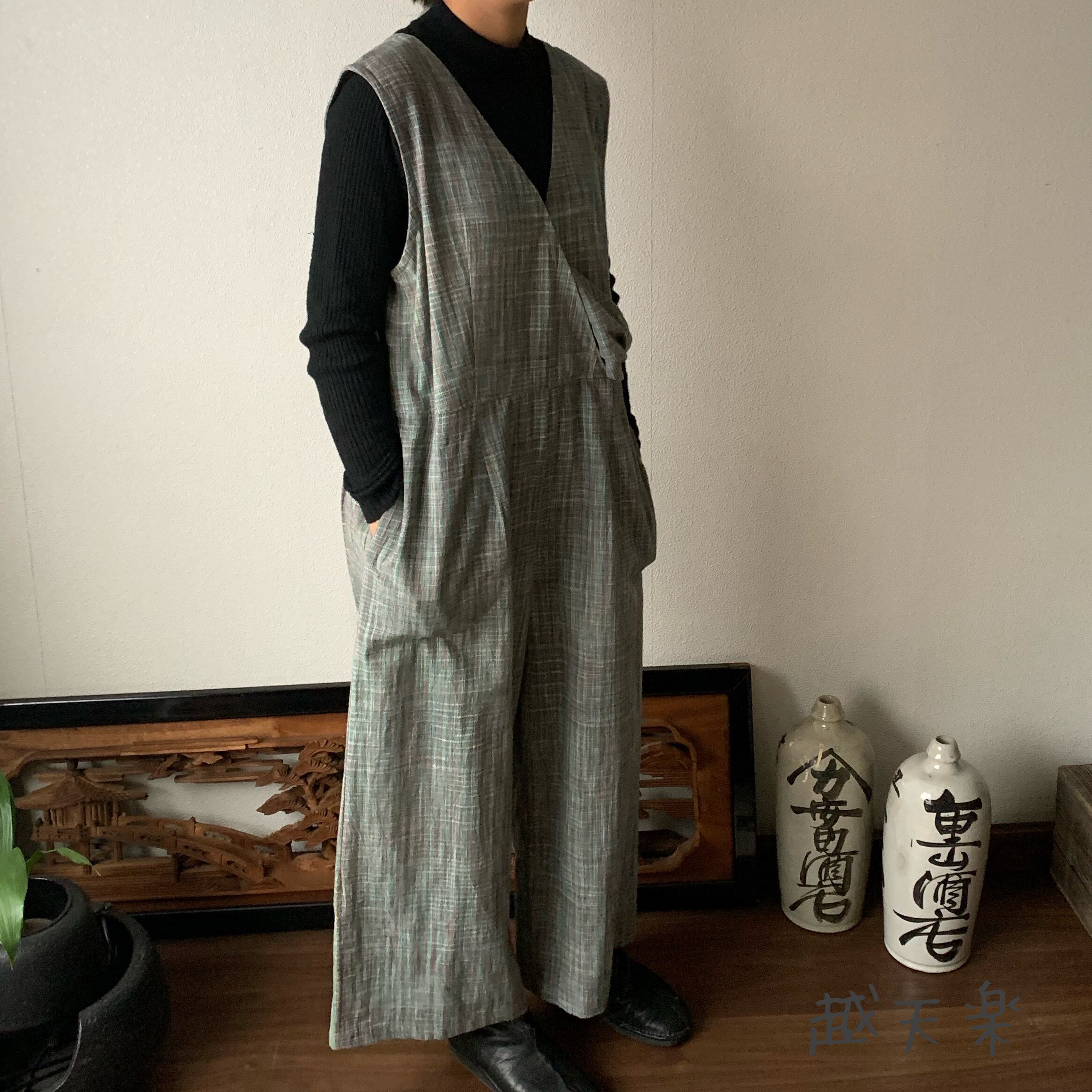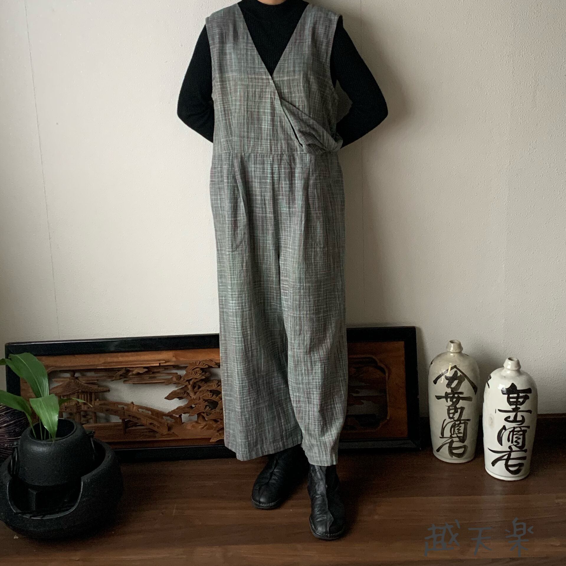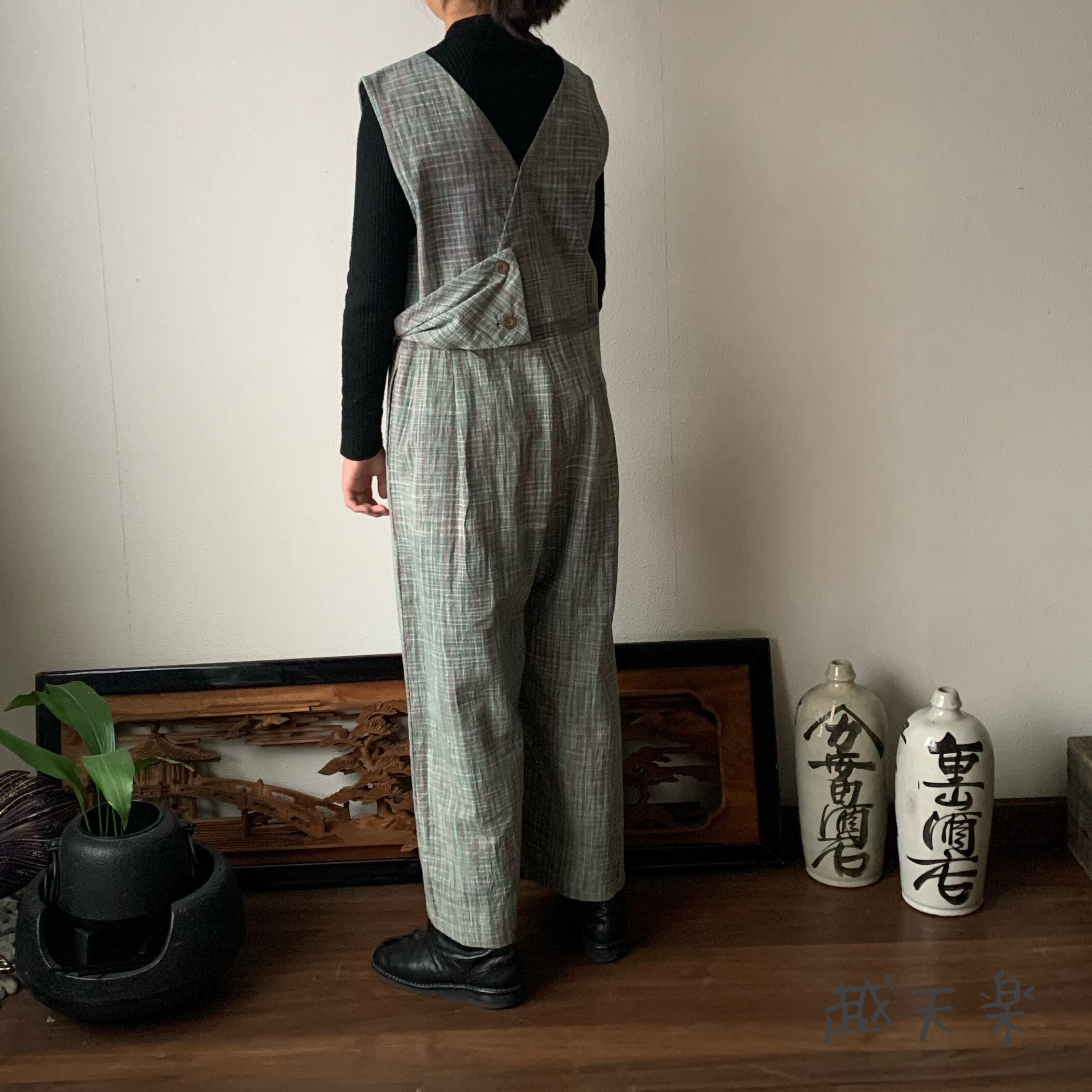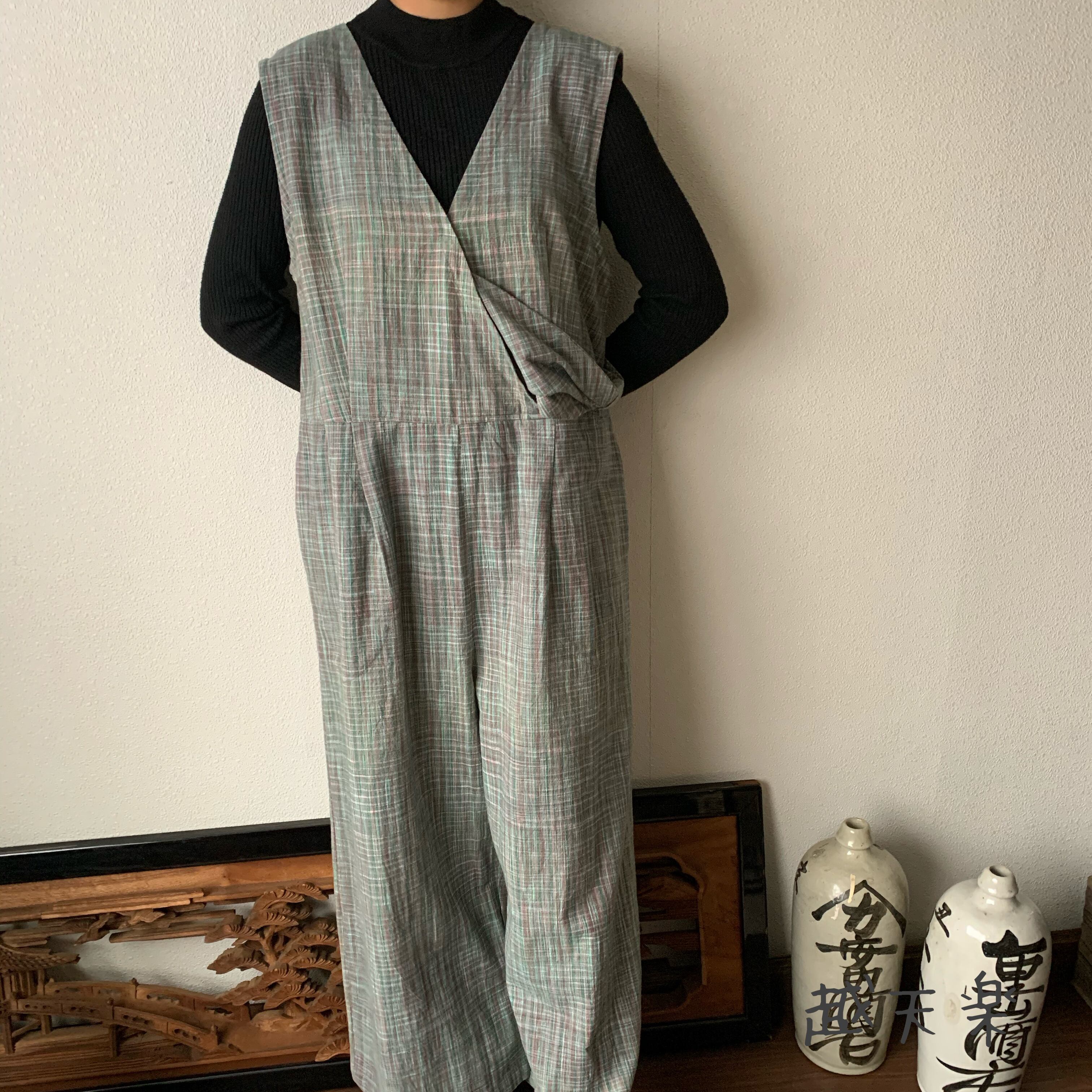 ゆったりと長めの丈ですっきり着こなせる手織り綿のサロペットです。