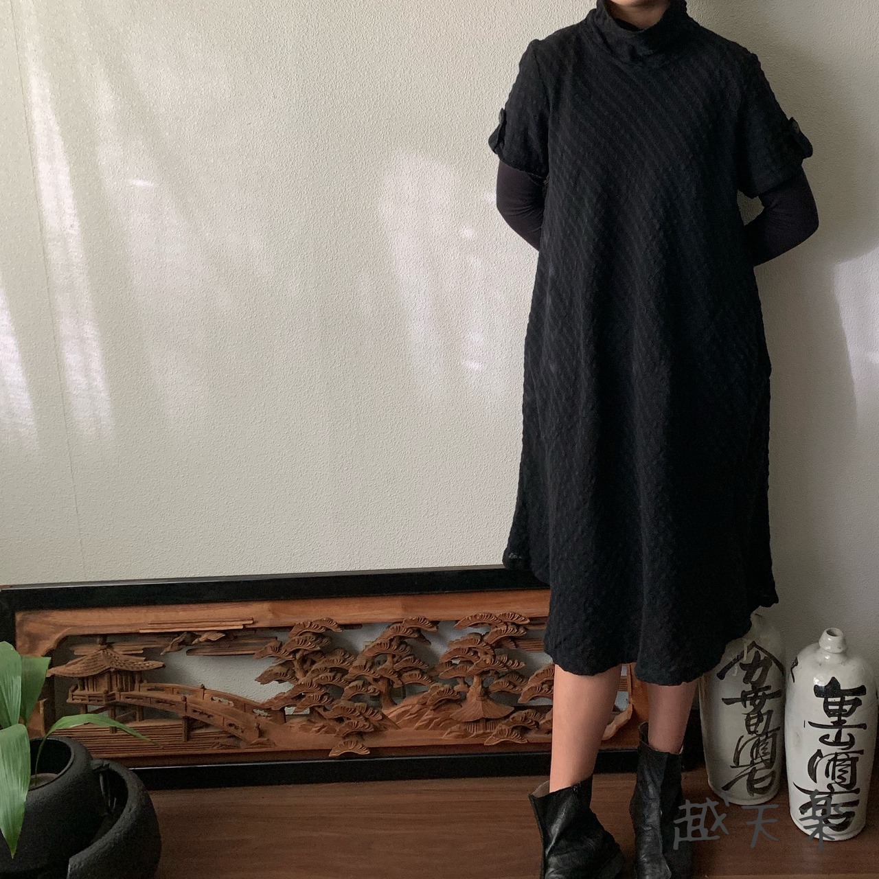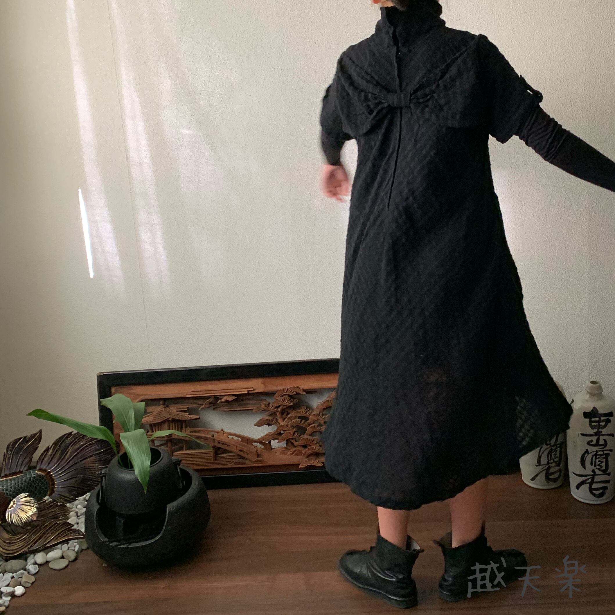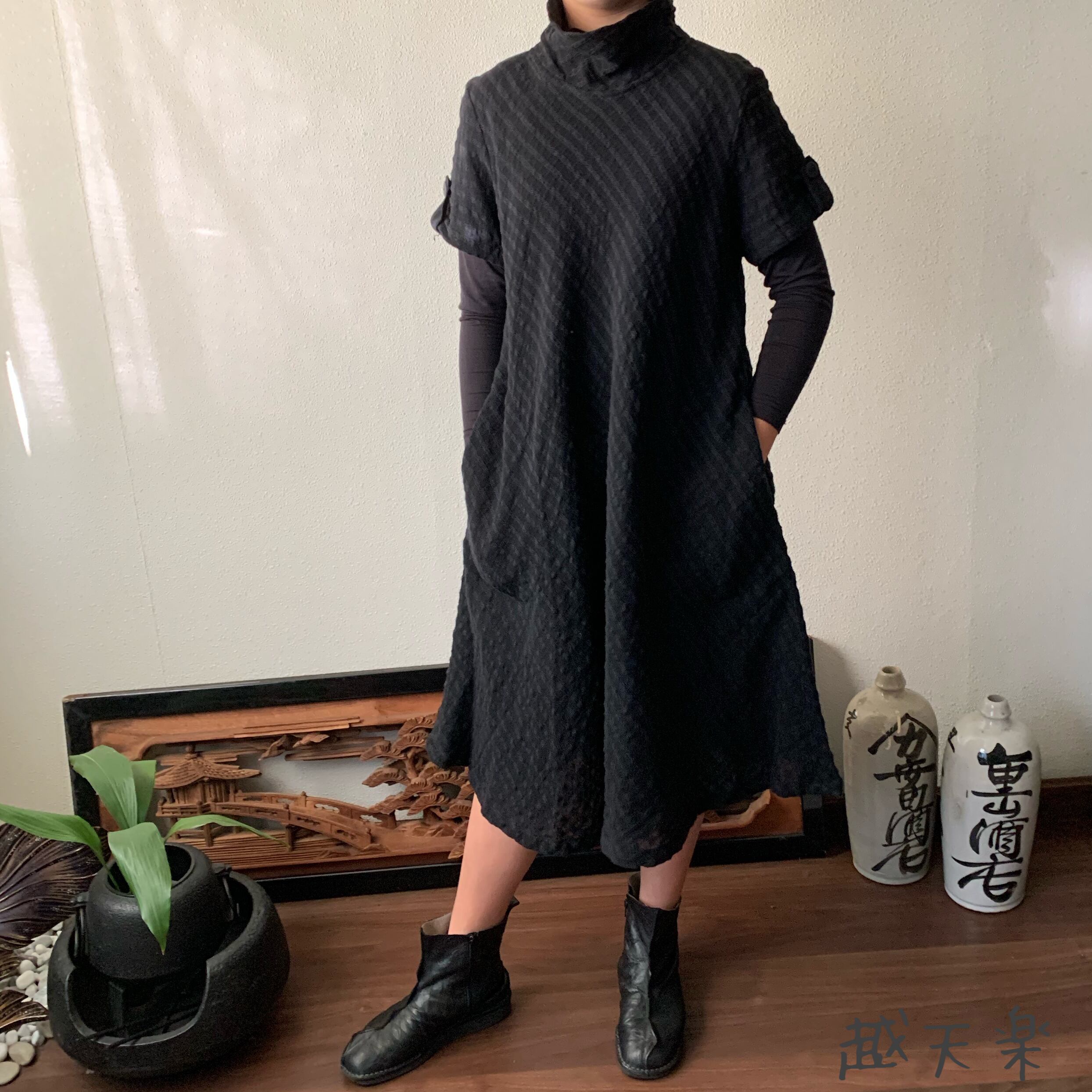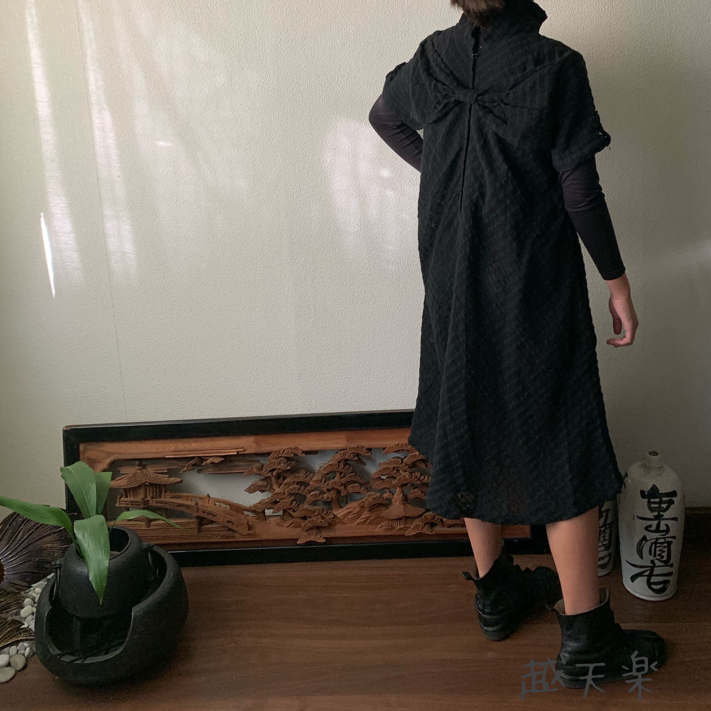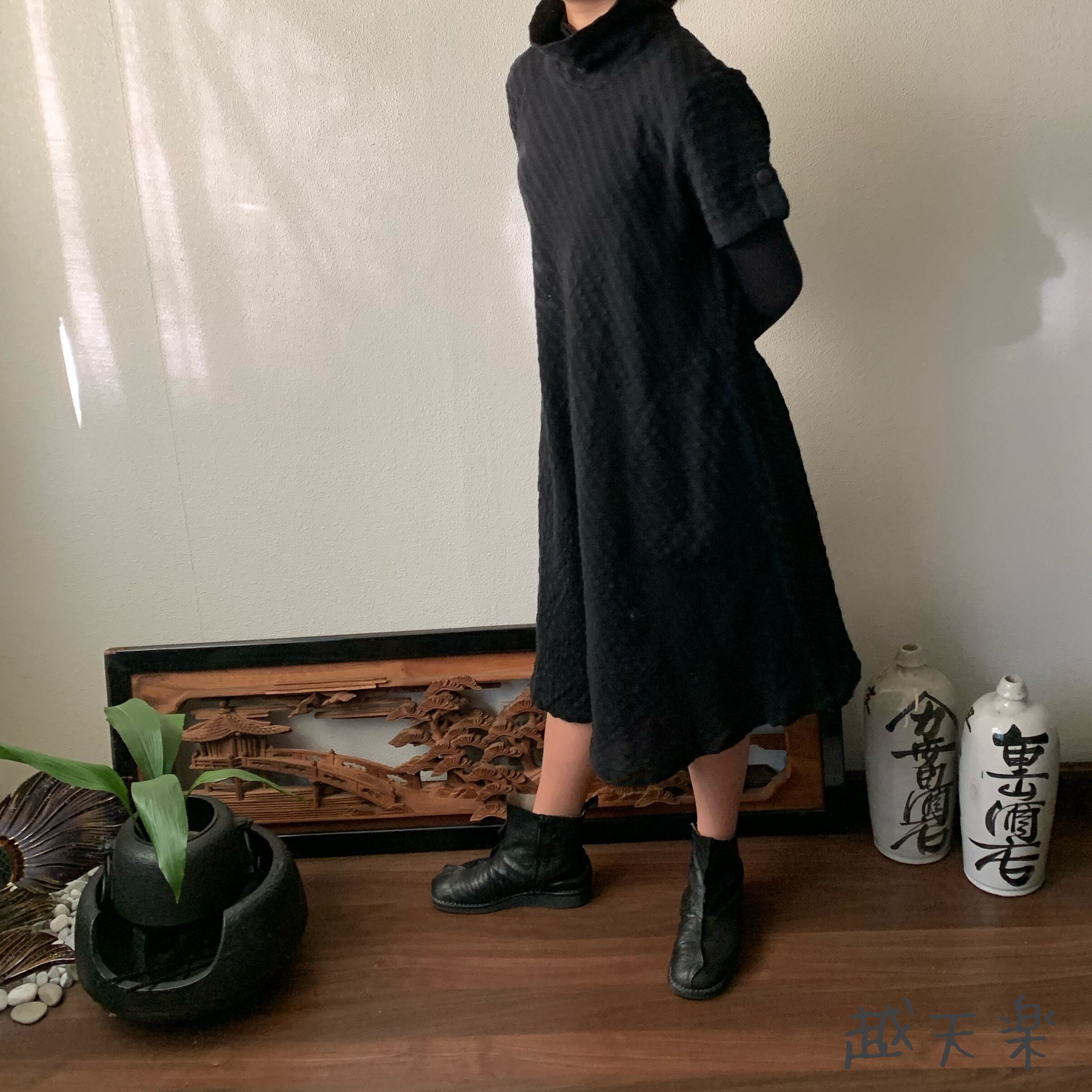前身頃、後身頃ともバイヤスで仕上げてあるので、小柄でほっそりとされた方はふわっと可愛いワンピースに、小柄でふっくらされた方はすっきり可愛いワンピースに、大柄な方はチュニック風に着ていただけます。