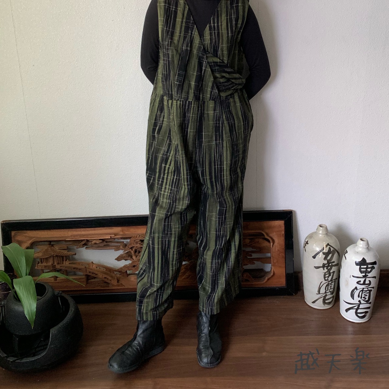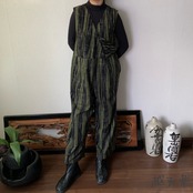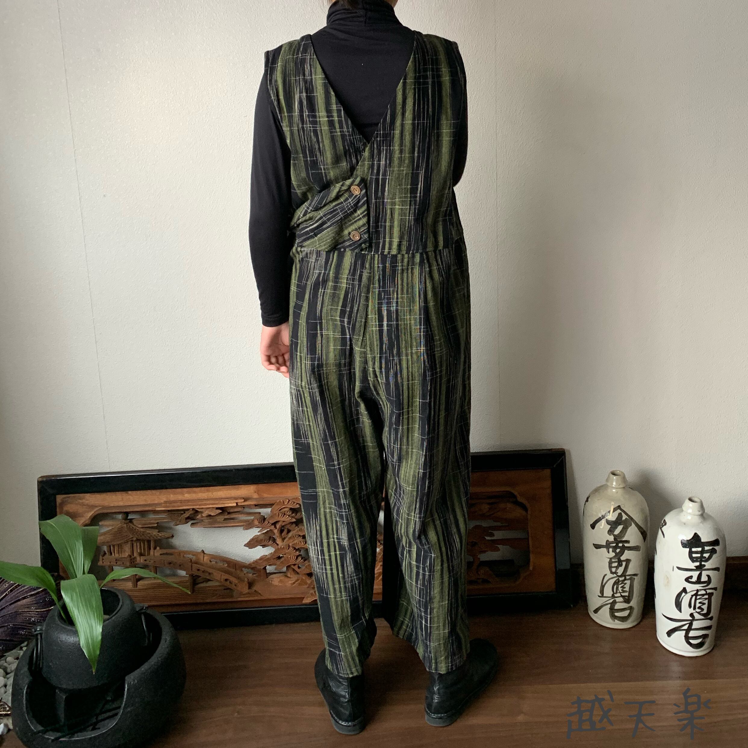 ゆったりと長めの丈ですっきり着こなせる手織り綿のサロペットです。