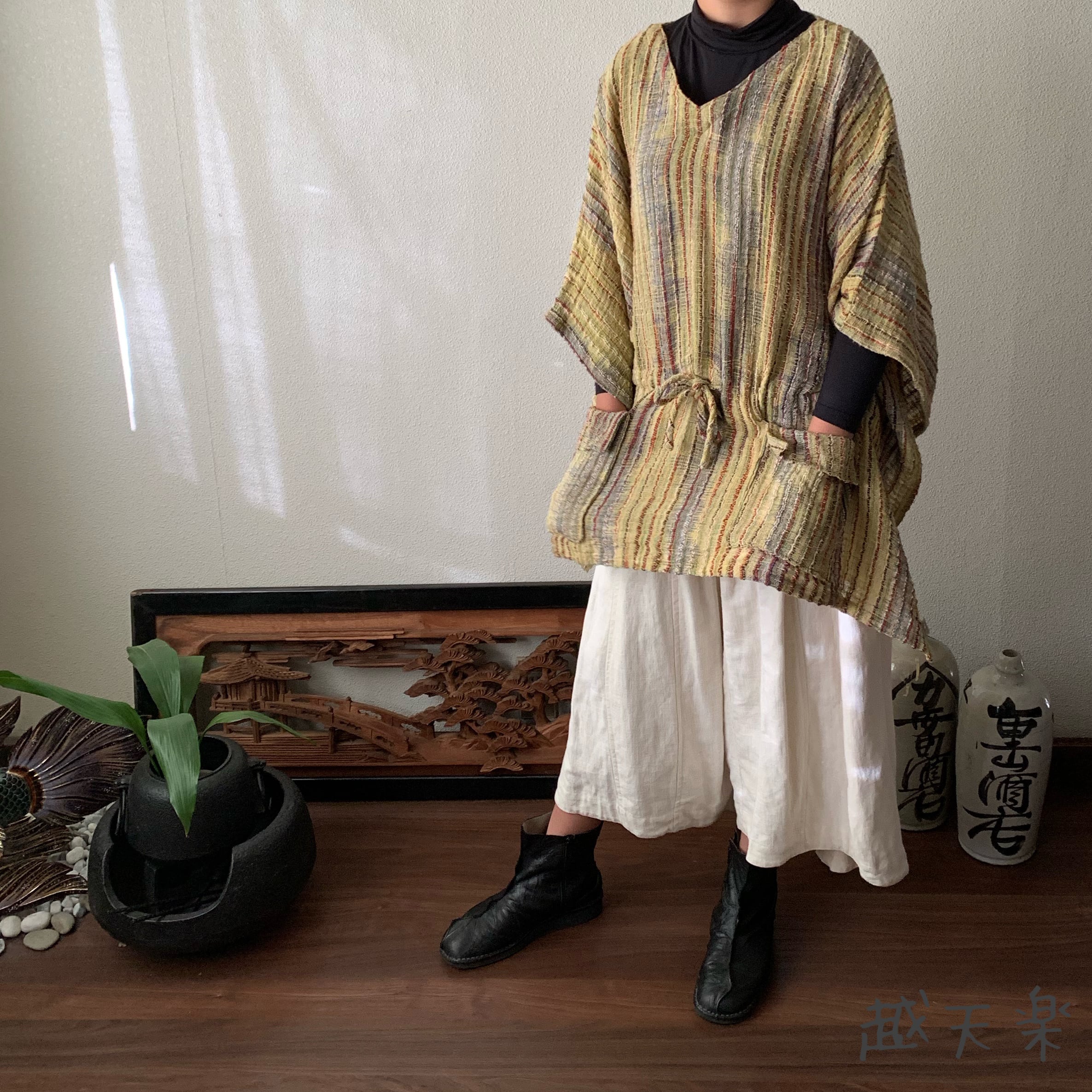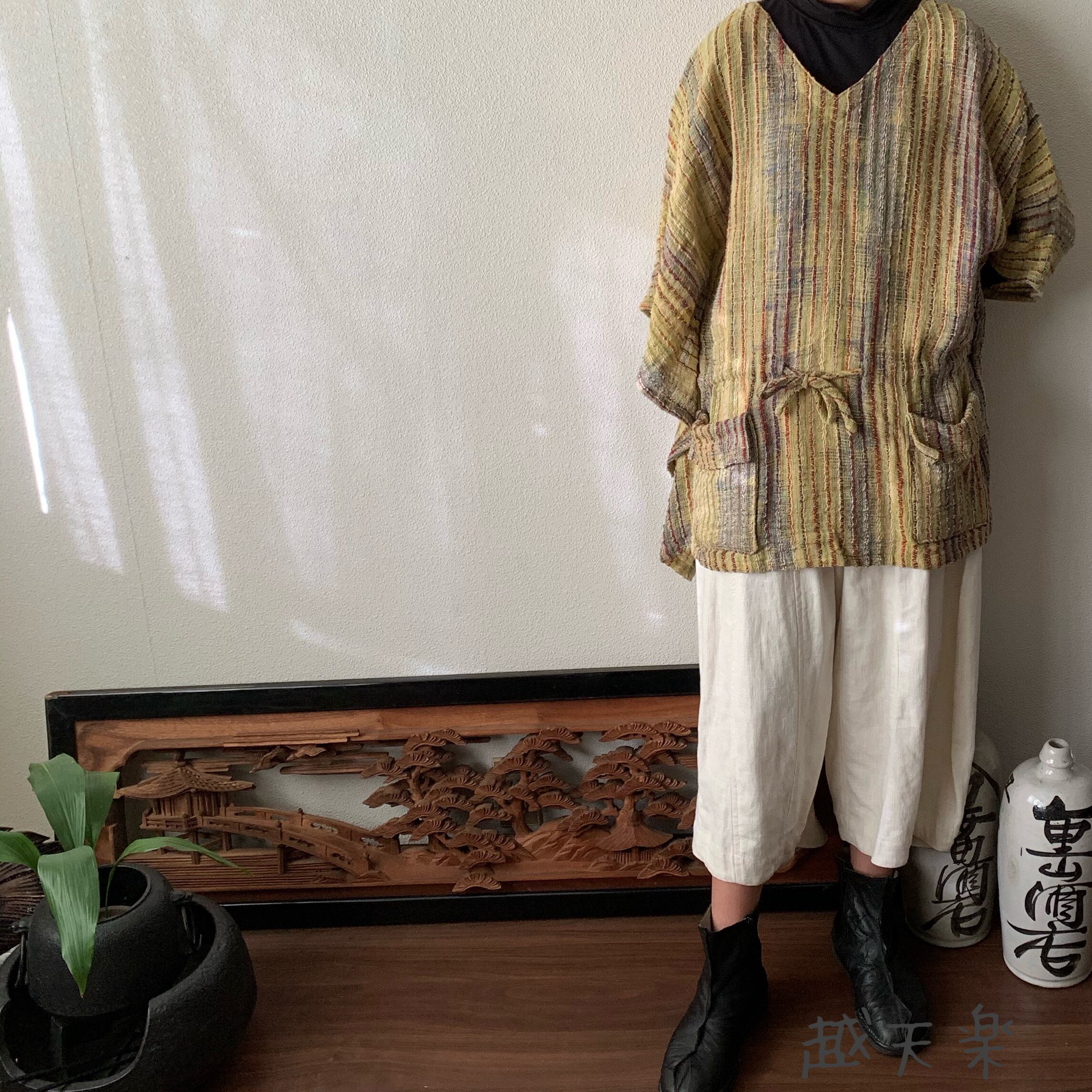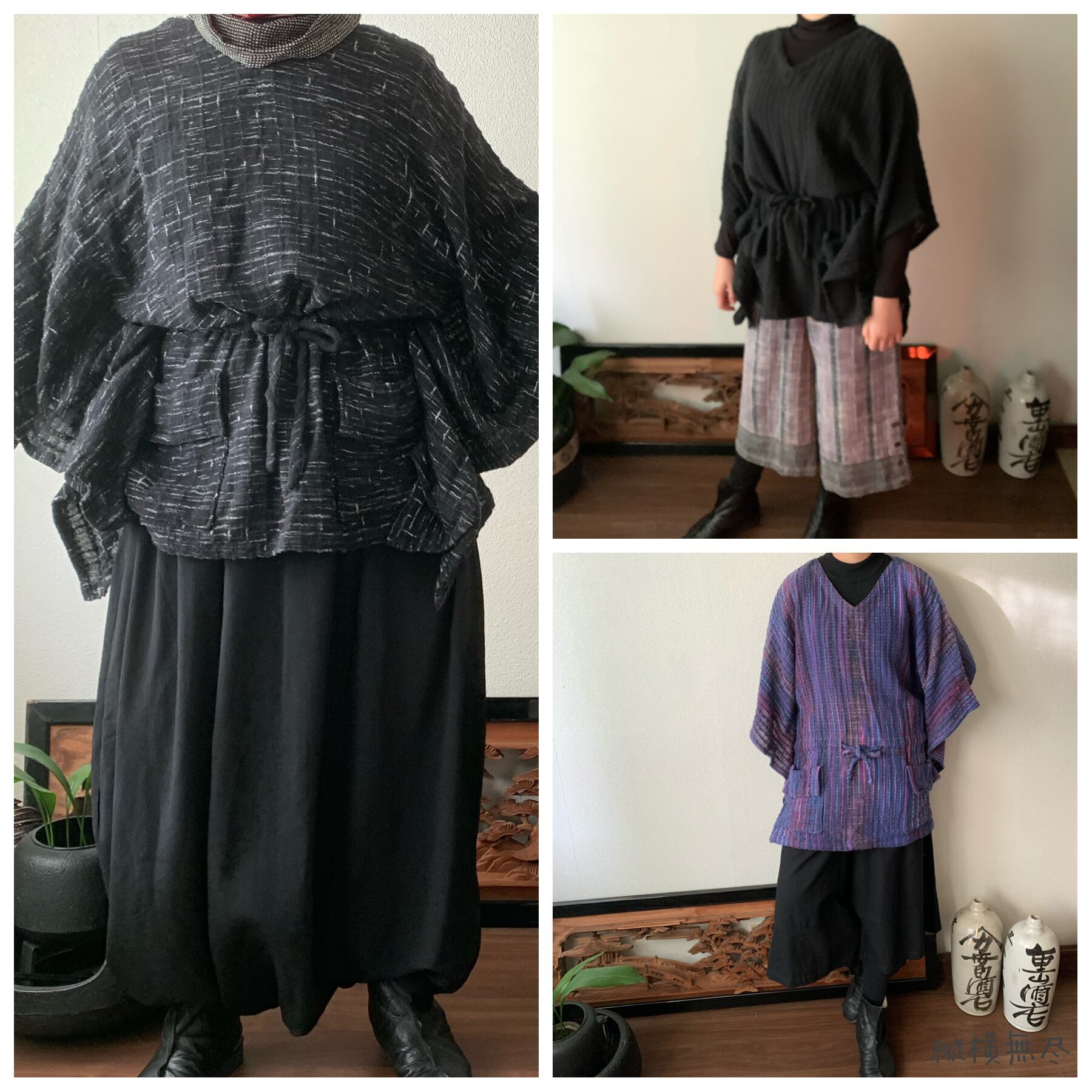 写真セットで履いている手織り綿の黒無地ガウチョパンツはこちら↓