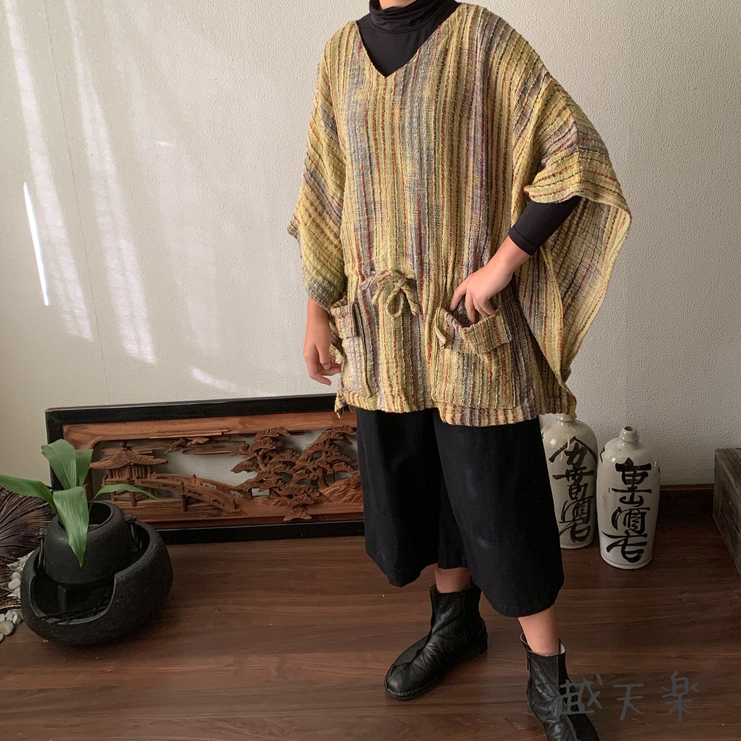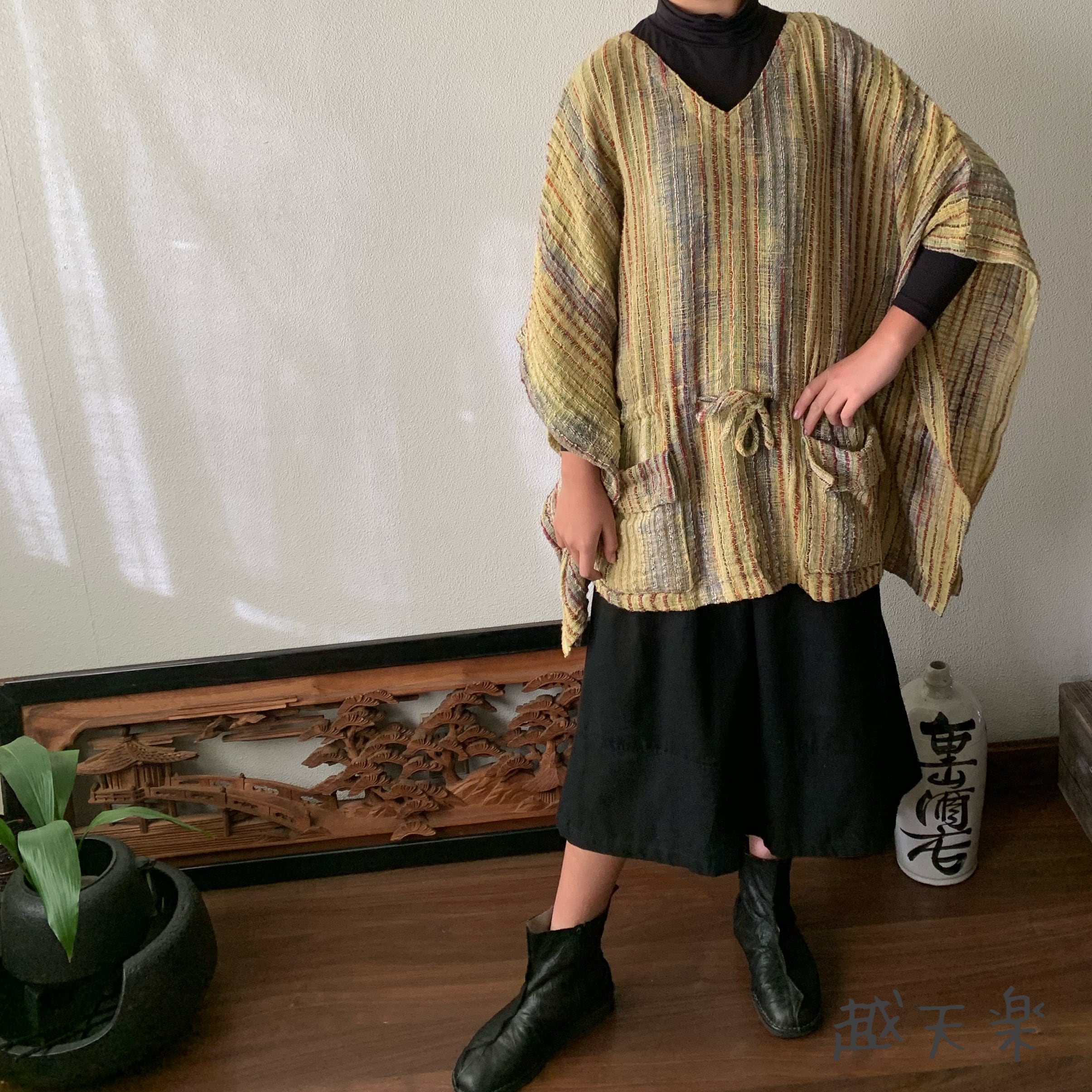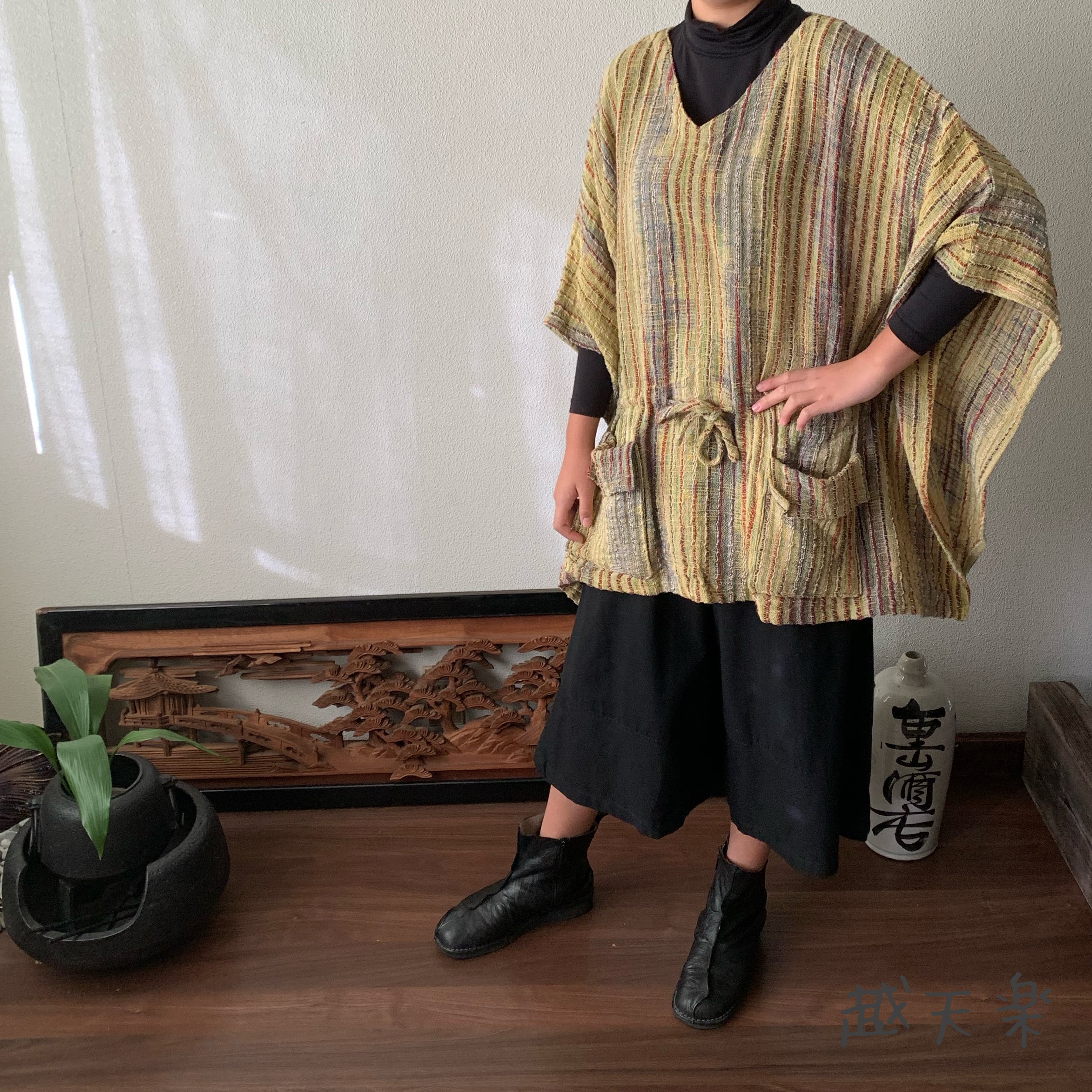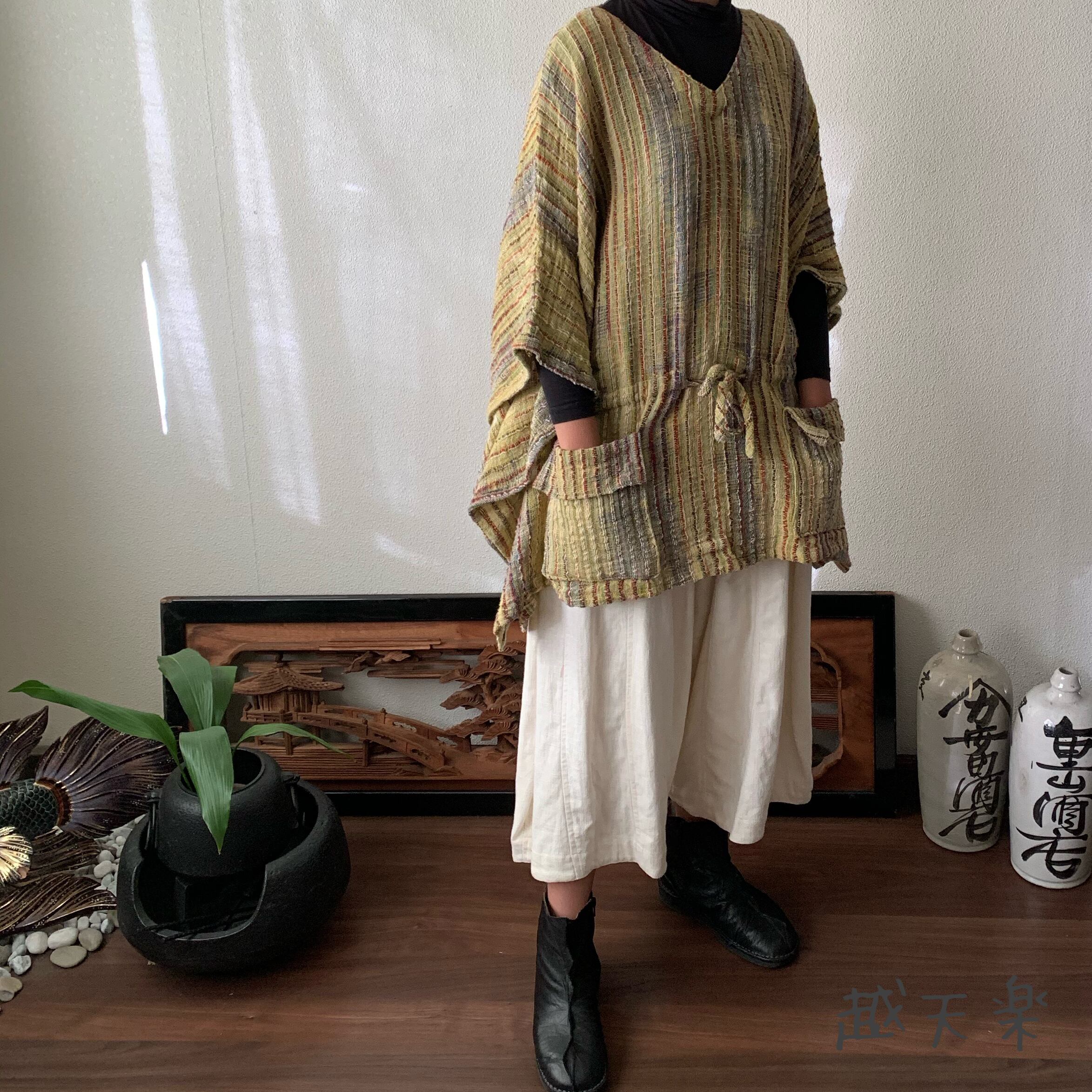 写真セットで履いている手織り綿の黒無地ガウチョパンツはこちら↓