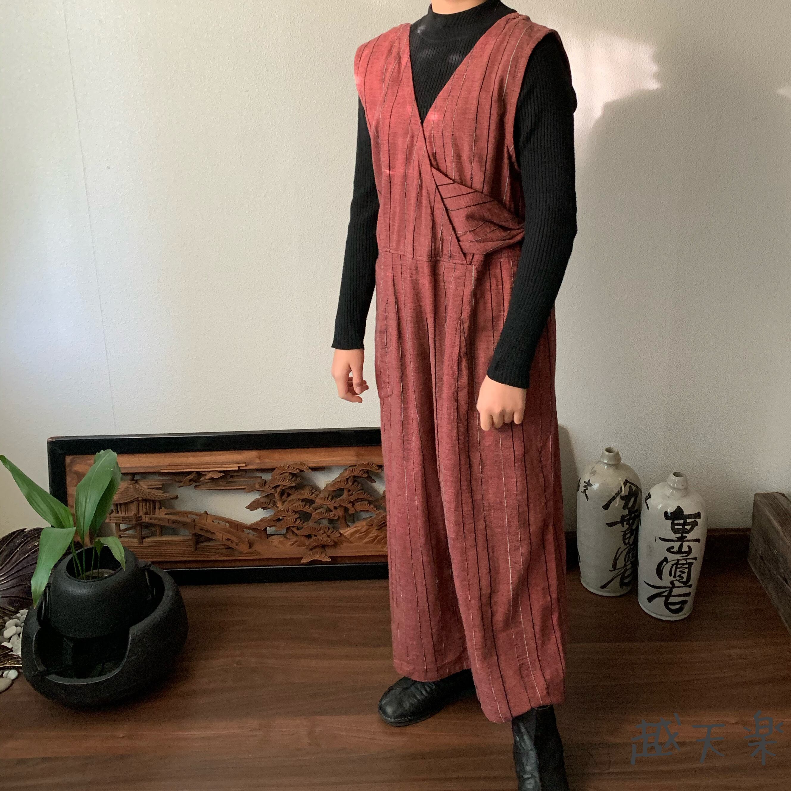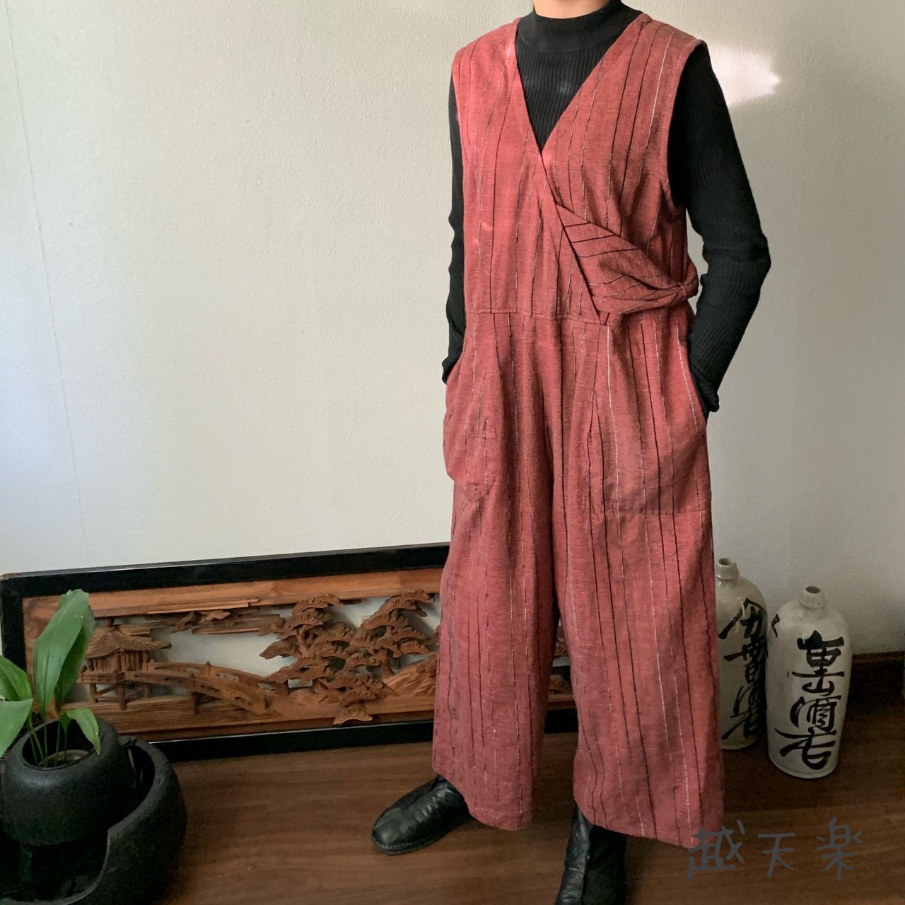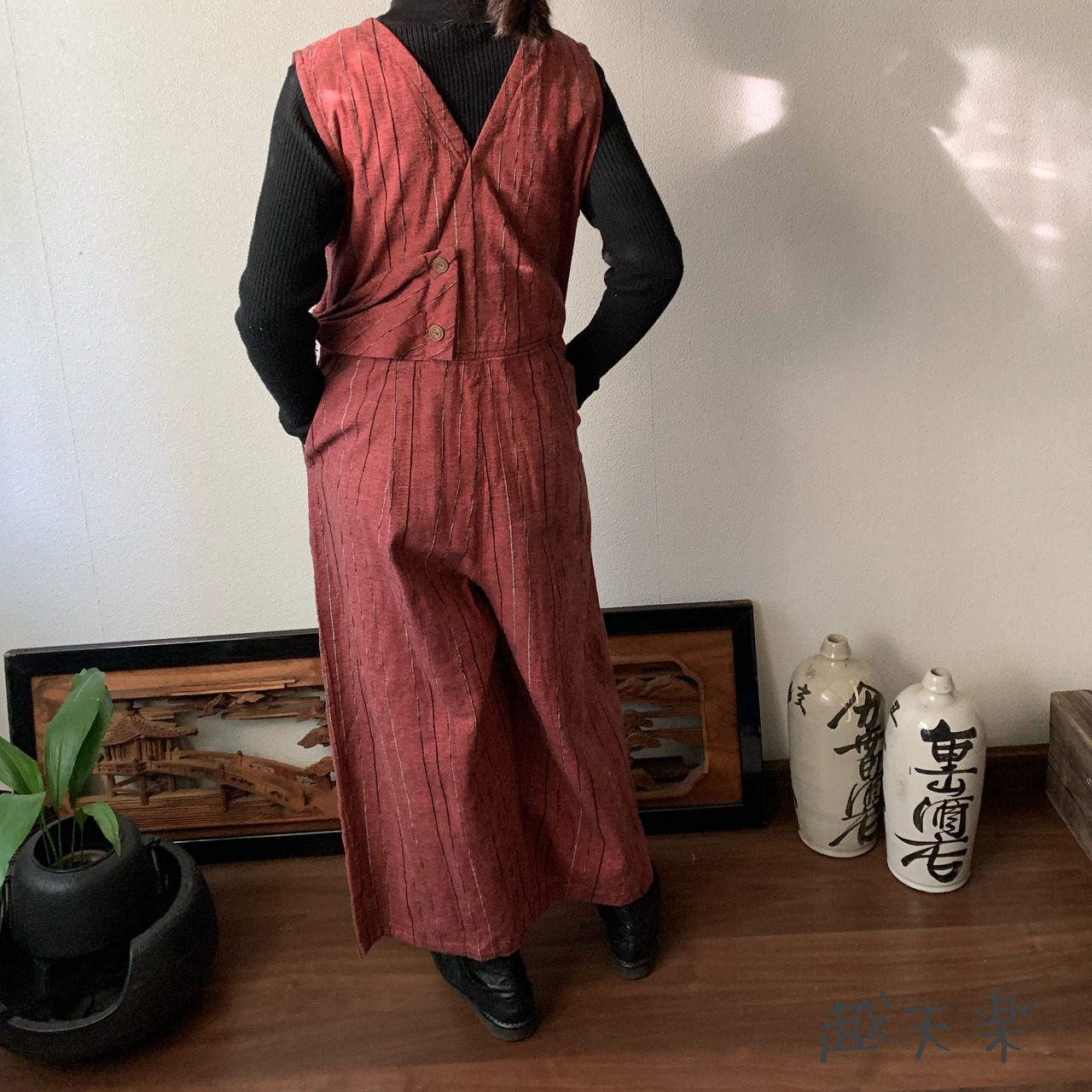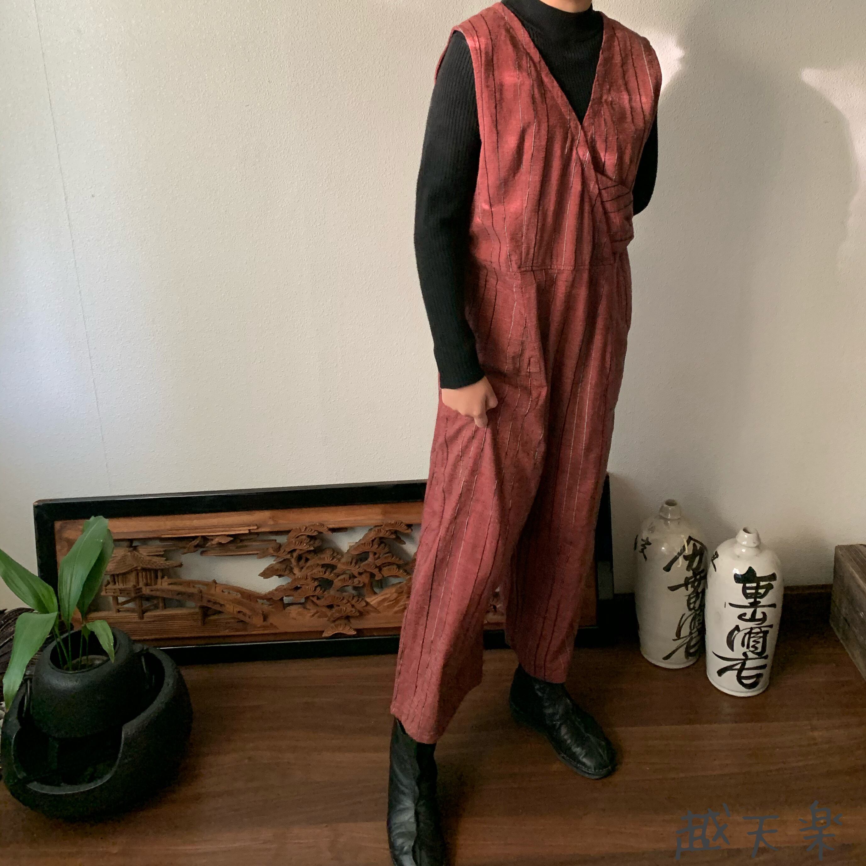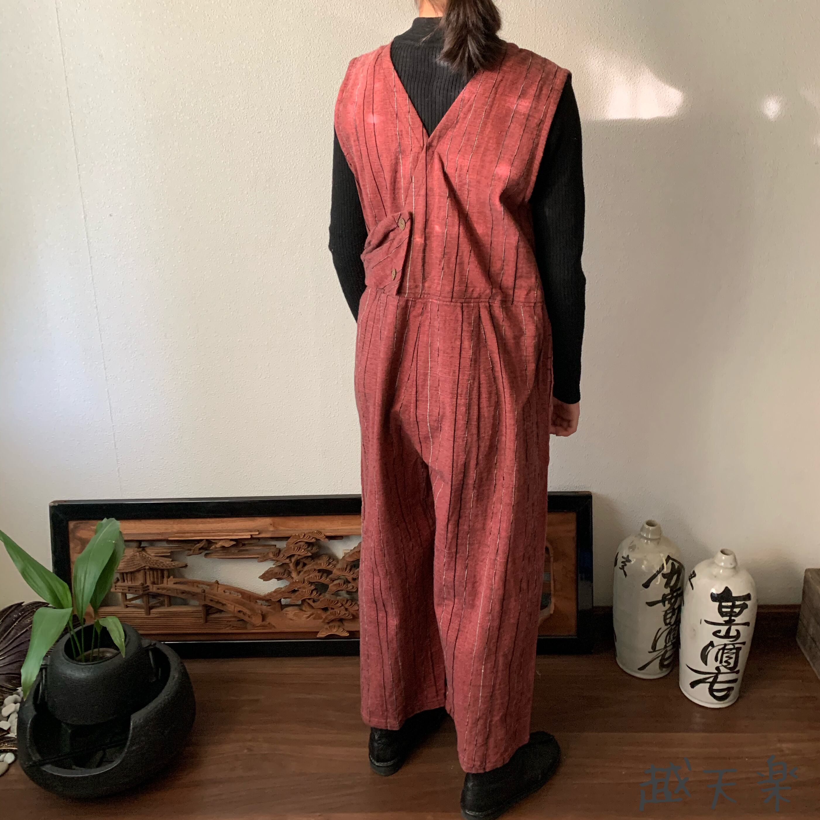 ゆったりと長めの丈ですっきり着こなせる手織り綿のサロペットです。