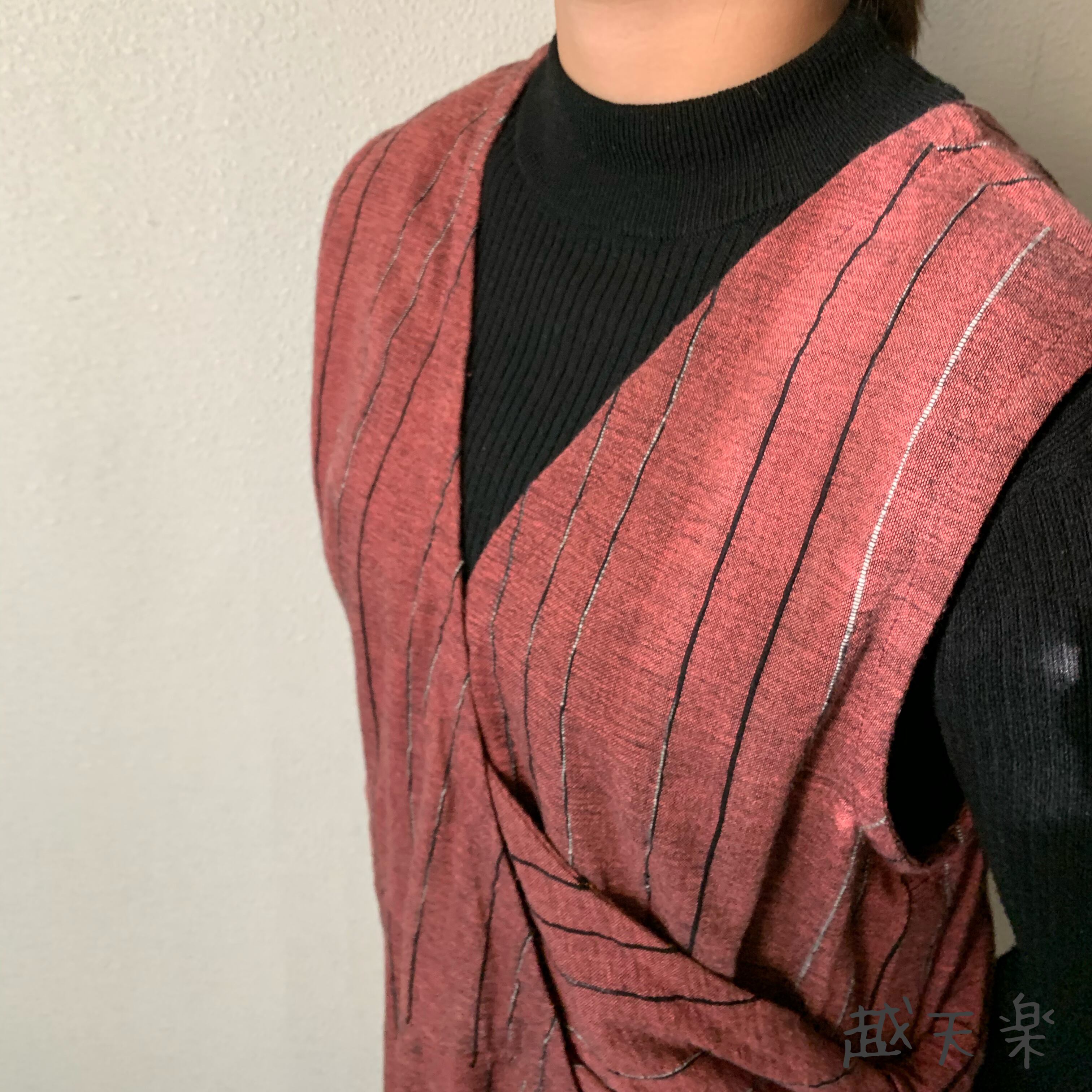 脇部分に大人のリボンをつけ大人可愛く、肩部分もしっかり生地を使って仕上げているので肩に負担がかかりにくく、中にTシャツやタートルを着て楽しんでいただけます。