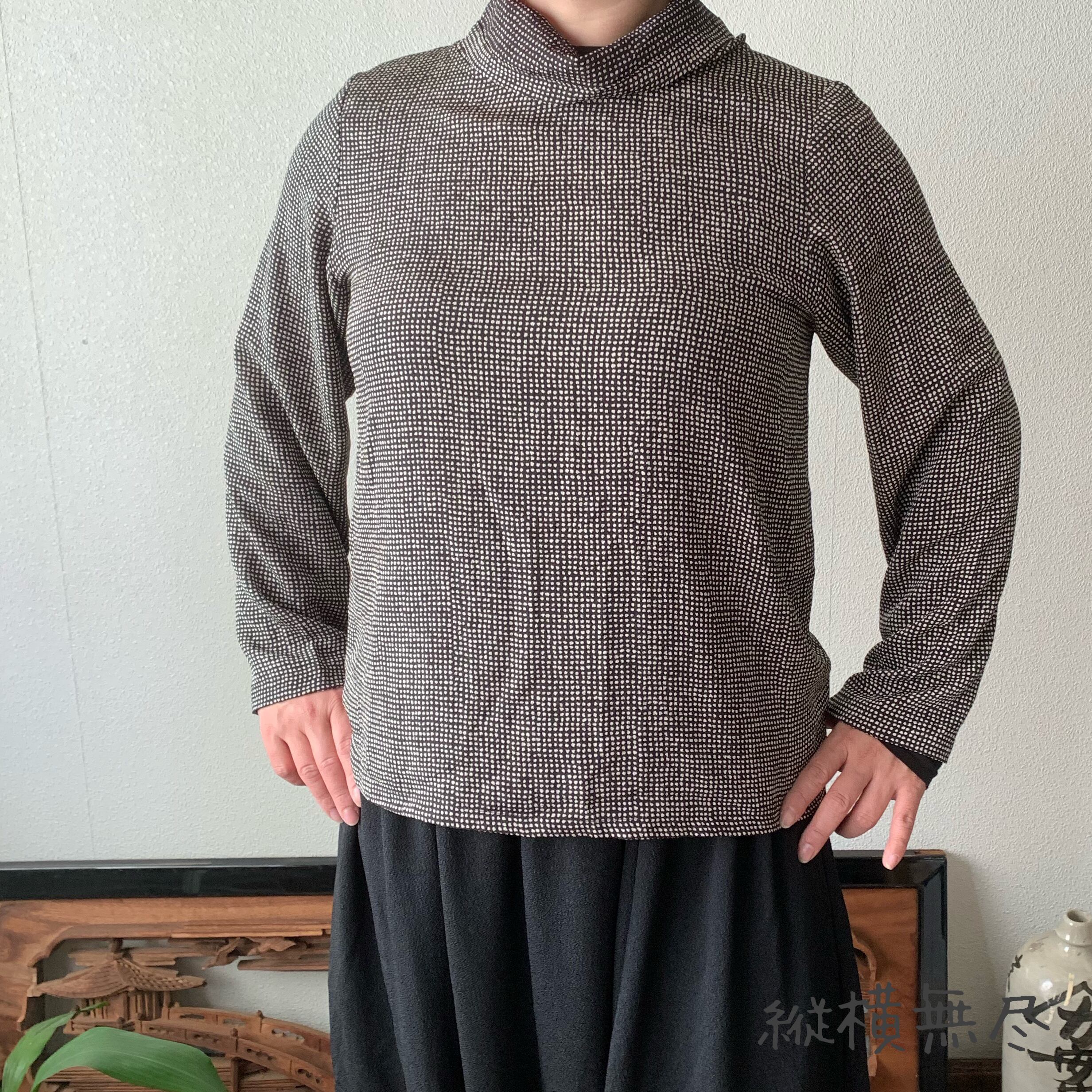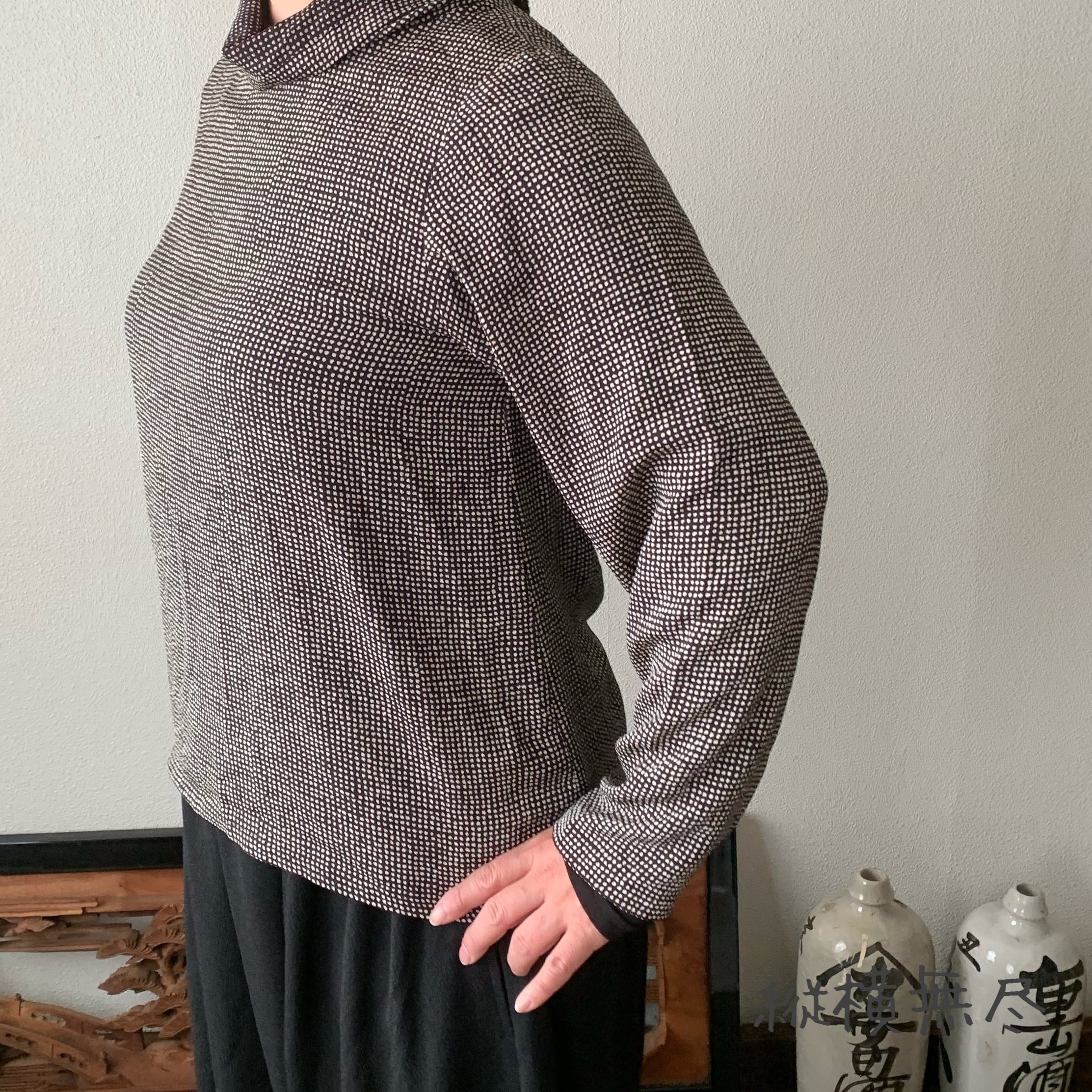 シンプルなちりめんタートルブラウス インナーづかいも楽しい 絞り柄
