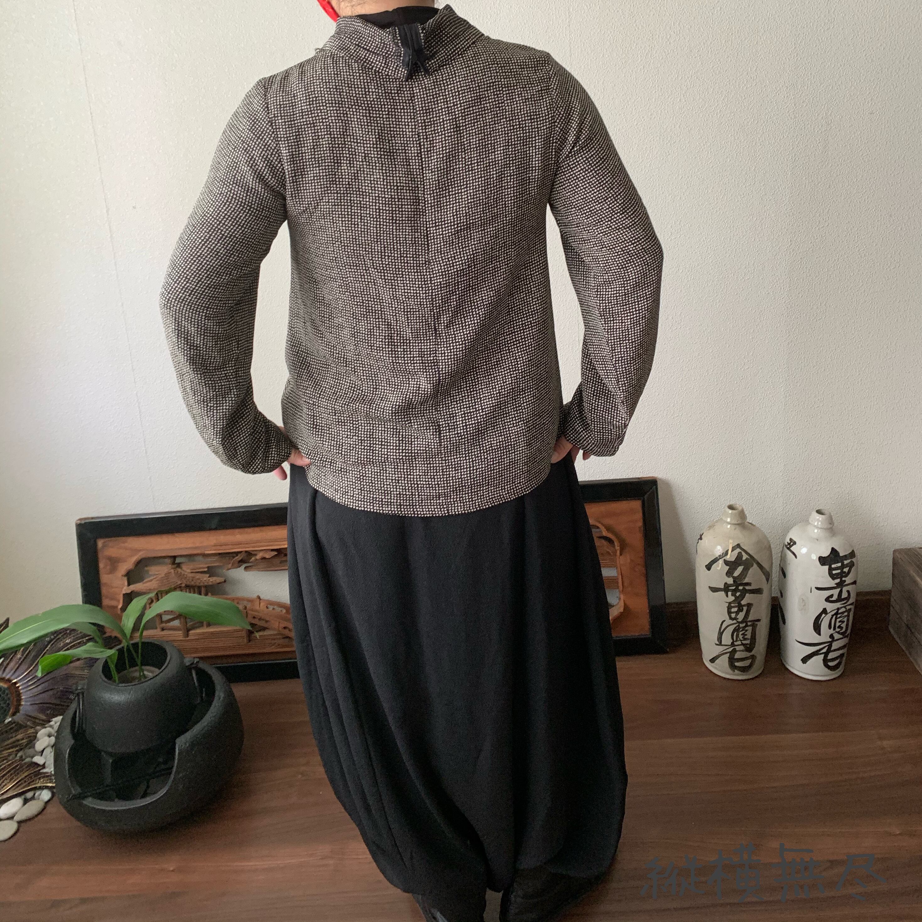 かぶって着ていただきますが、後ろにファスナーが付いていますので楽に脱ぎ着できます。