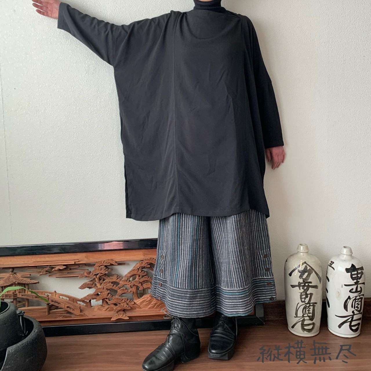 無地でゆったりしているので、柄物のパンツとも相性抜群です。