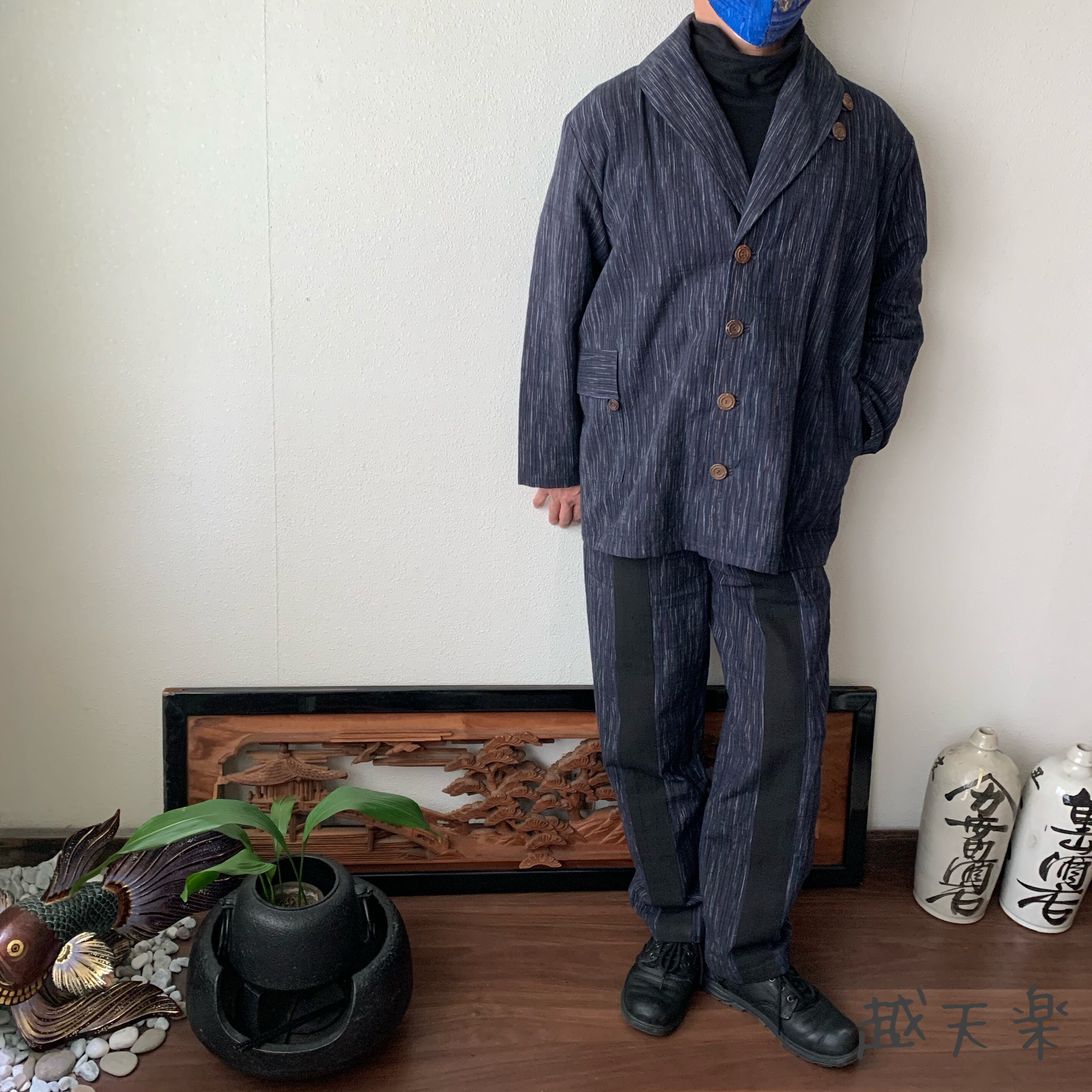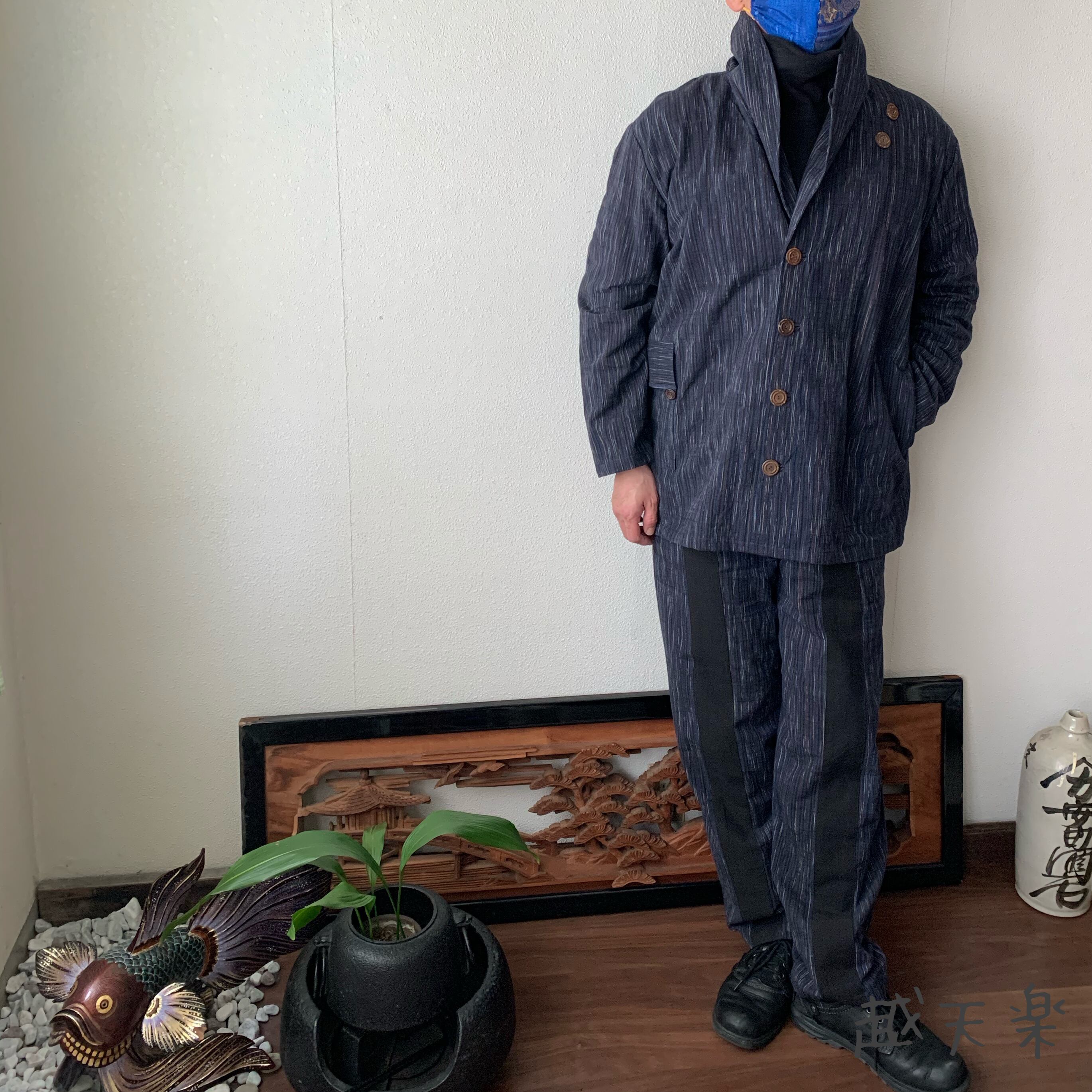 写真セットで履いている前身切り替えライン手織り綿メンズパンツはこちら↓