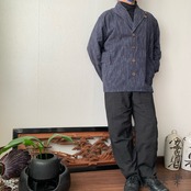 写真セットで履いている共生地の前身切り替えライン手織り綿メンズパンツはこちら↓