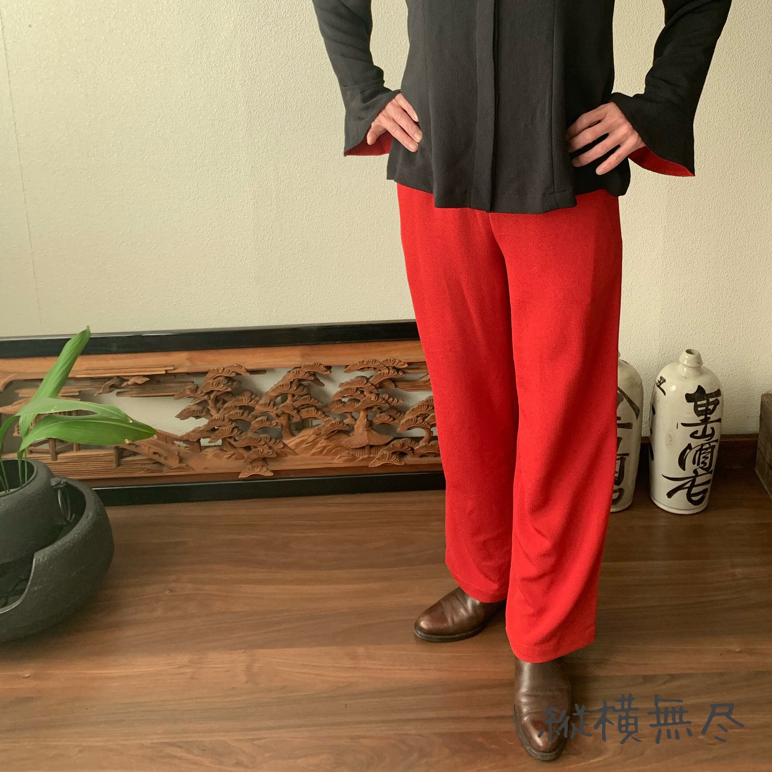 トップの洋服に凝ったデザインが多い越天楽、縦横無尽ではたまにシンプルに合わせやすいボトムを作ったりします。