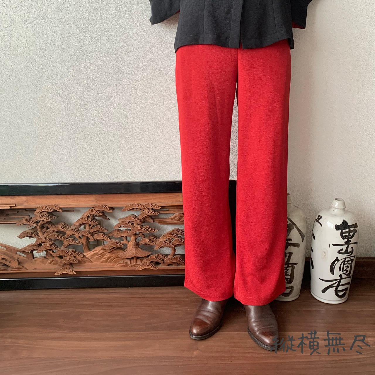 とろみのあるちりめん生地なので、ブーツでもサンダルでもすっきりとしながらエレガントに履きこなせます。