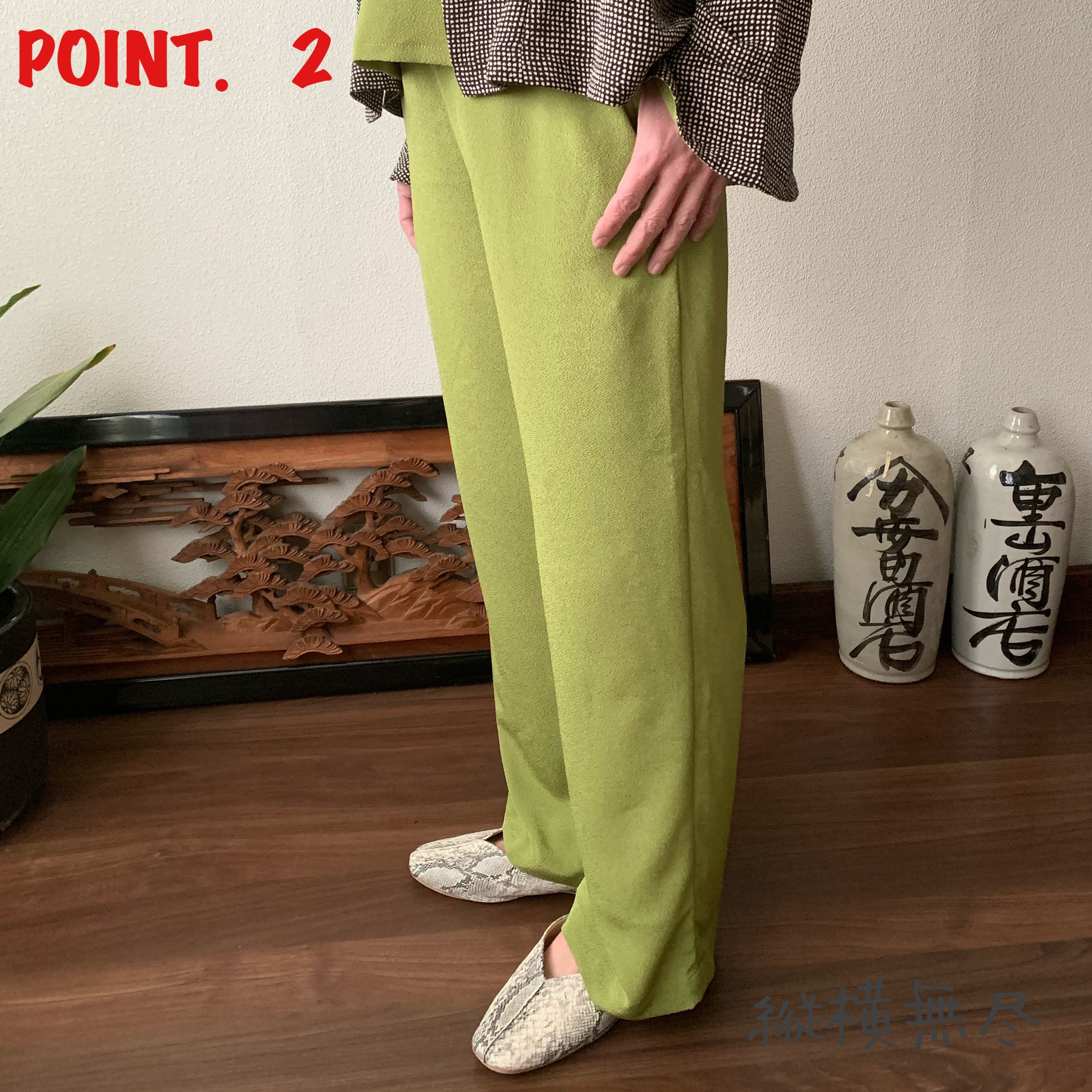 『シンプルで使いやすいバイヤスちりめんパンツ 色や柄によって表情が変わるのが楽しい』