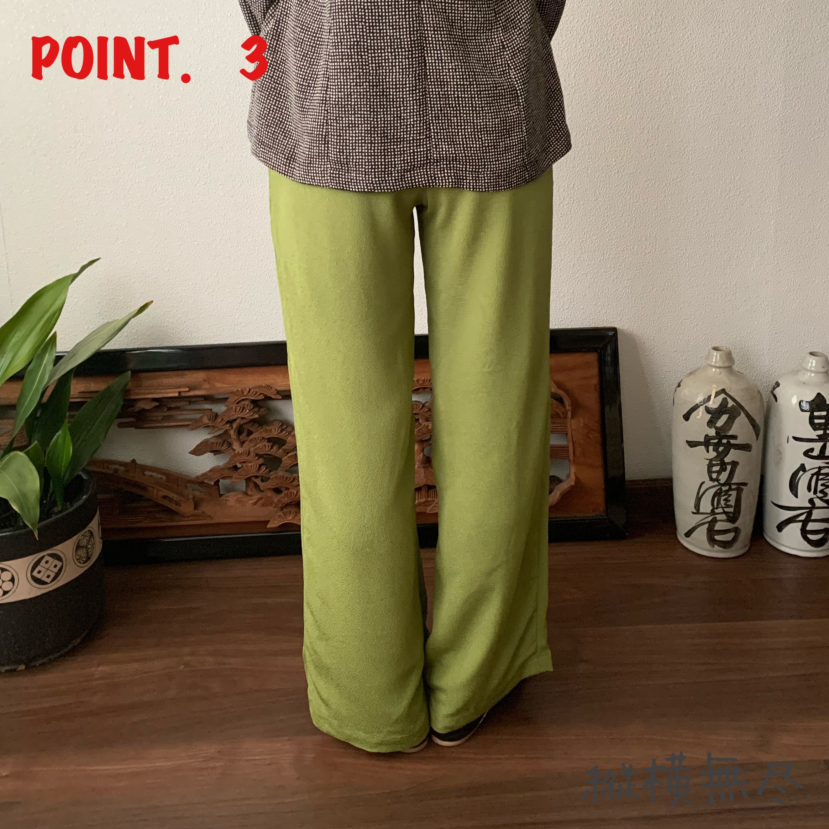 とろみのあるちりめん生地なので、ブーツでもサンダルでもすっきりとしながらエレガントに履きこなせます。