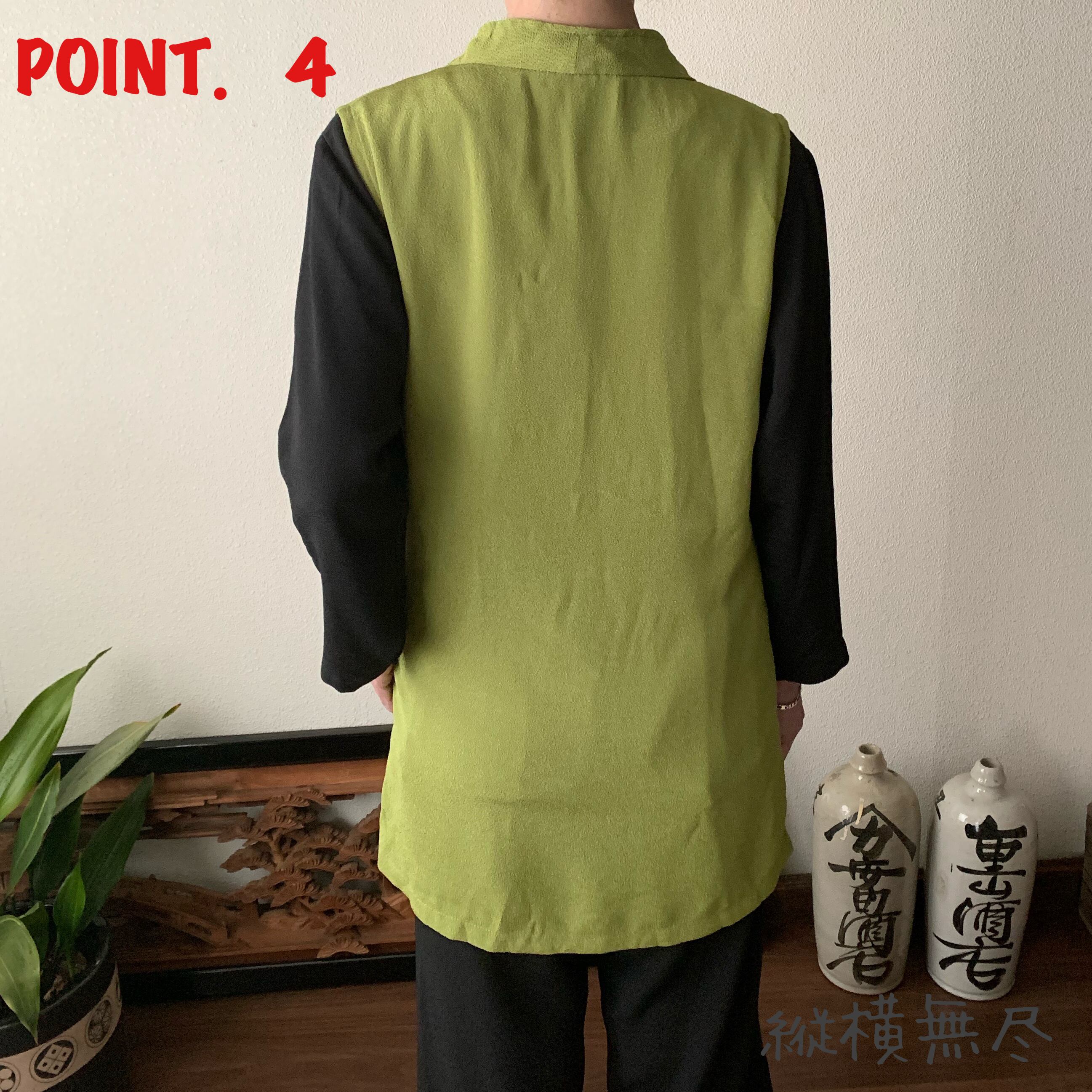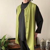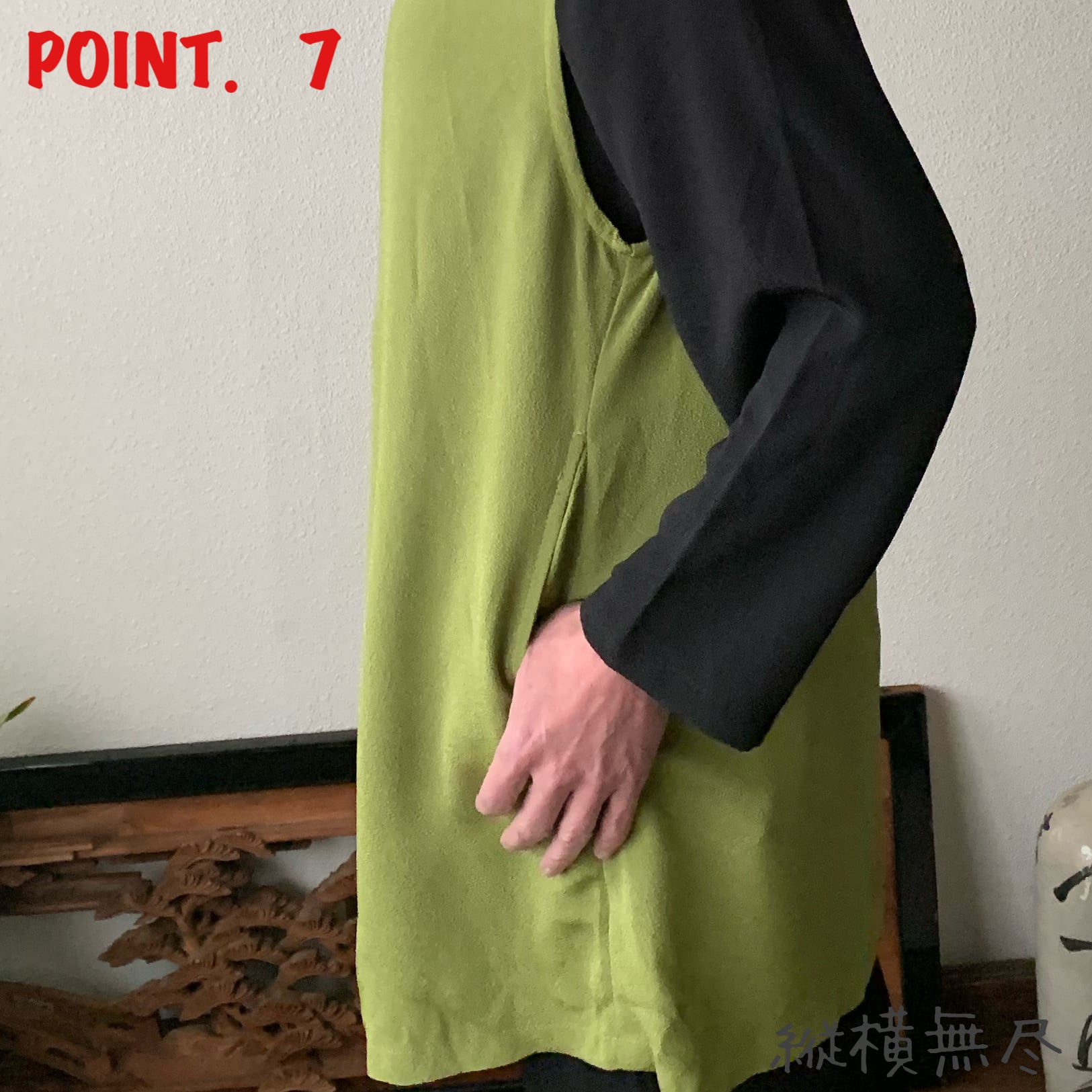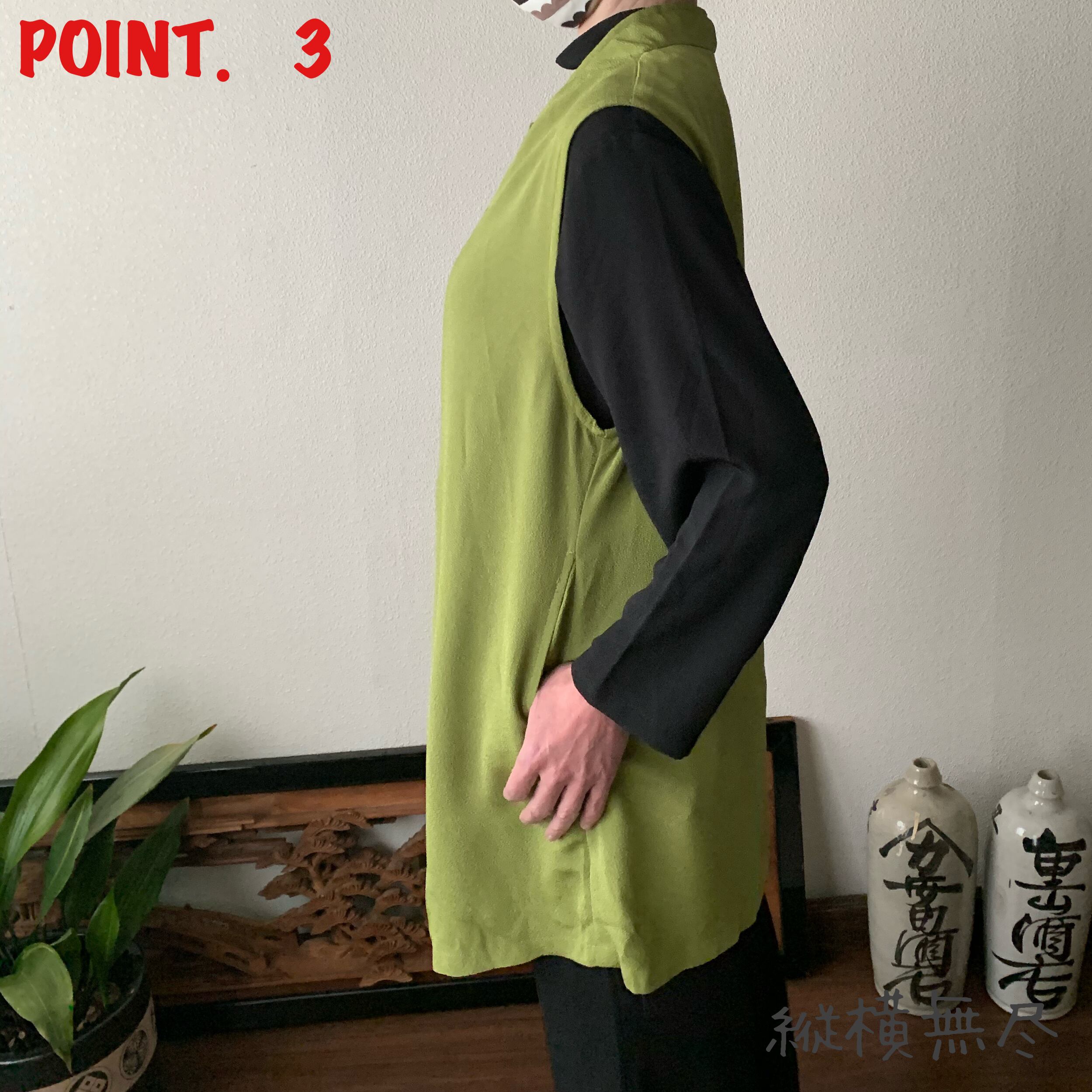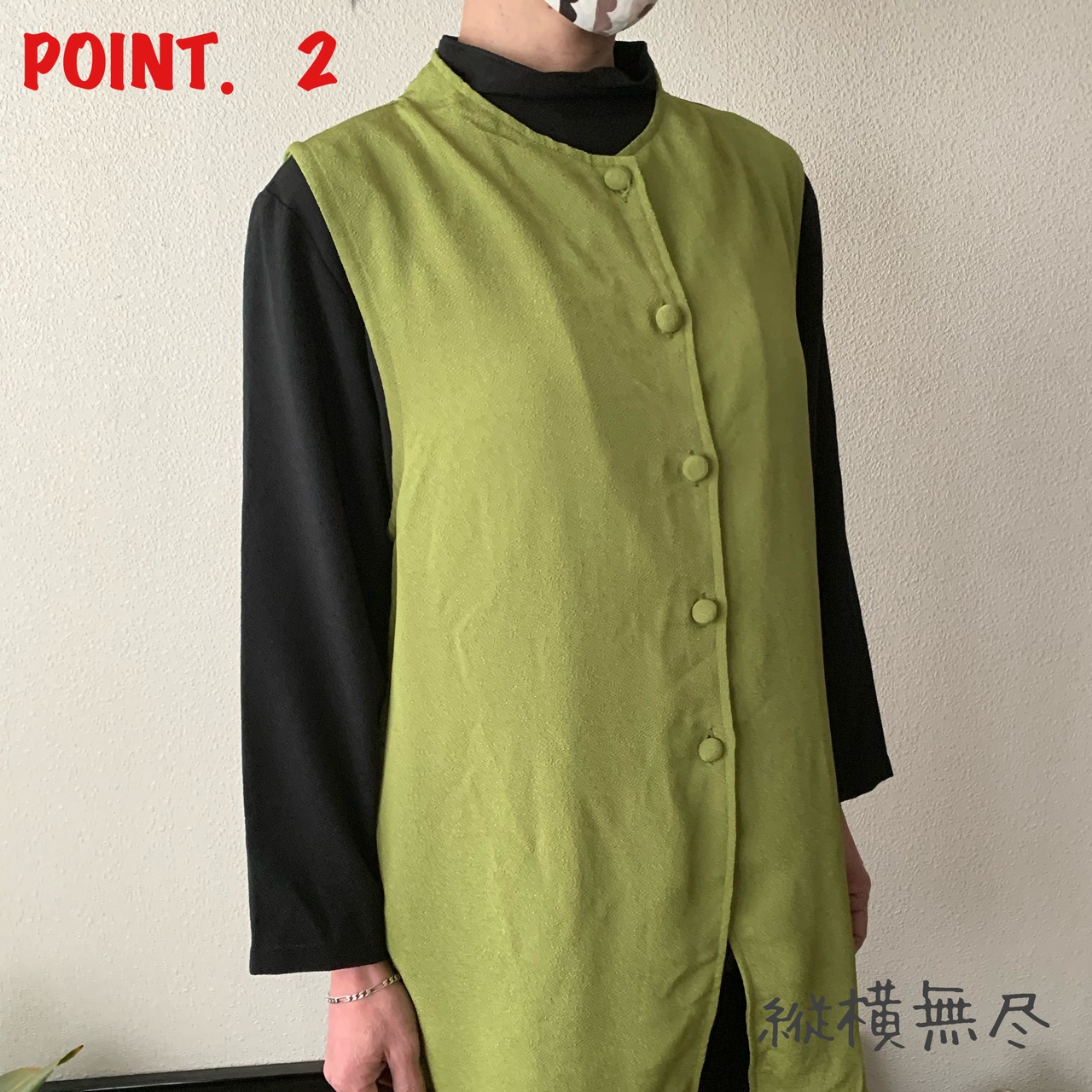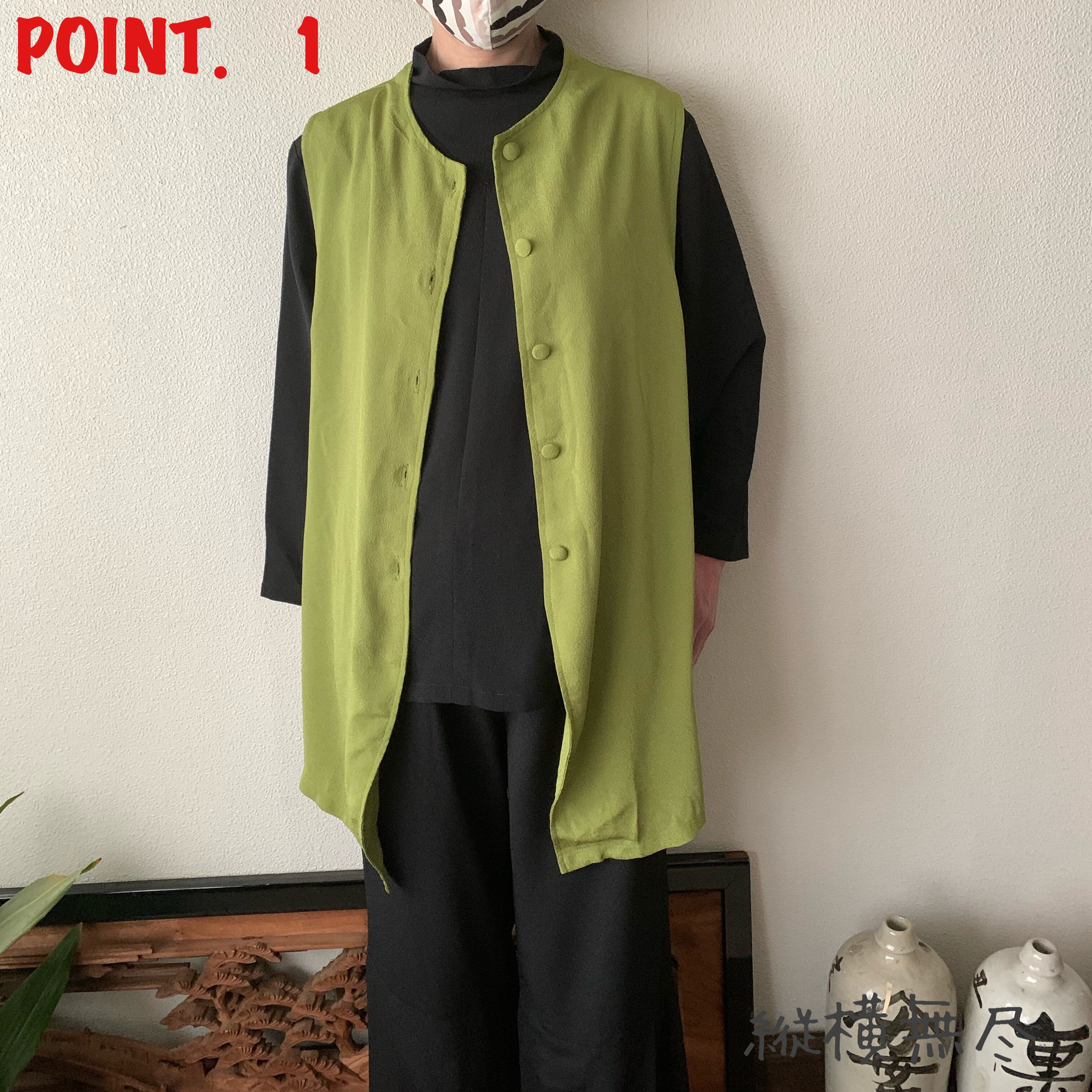 『くるみボタンの前開きシンプルちりめんベスト お腹とお尻をしっかり隠してすっきりライン』