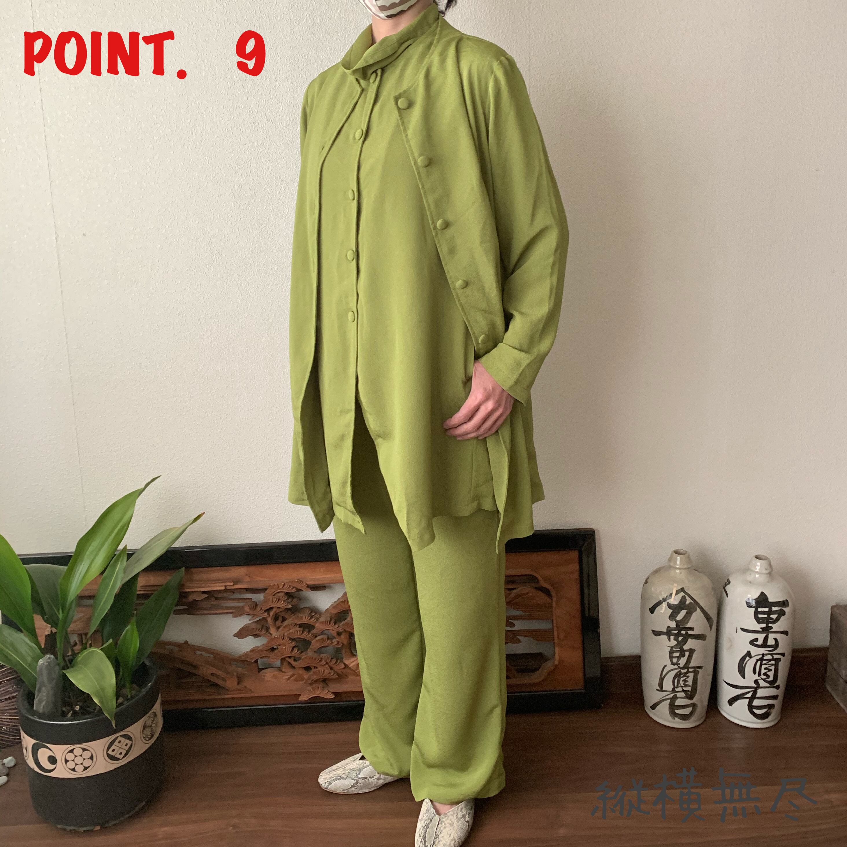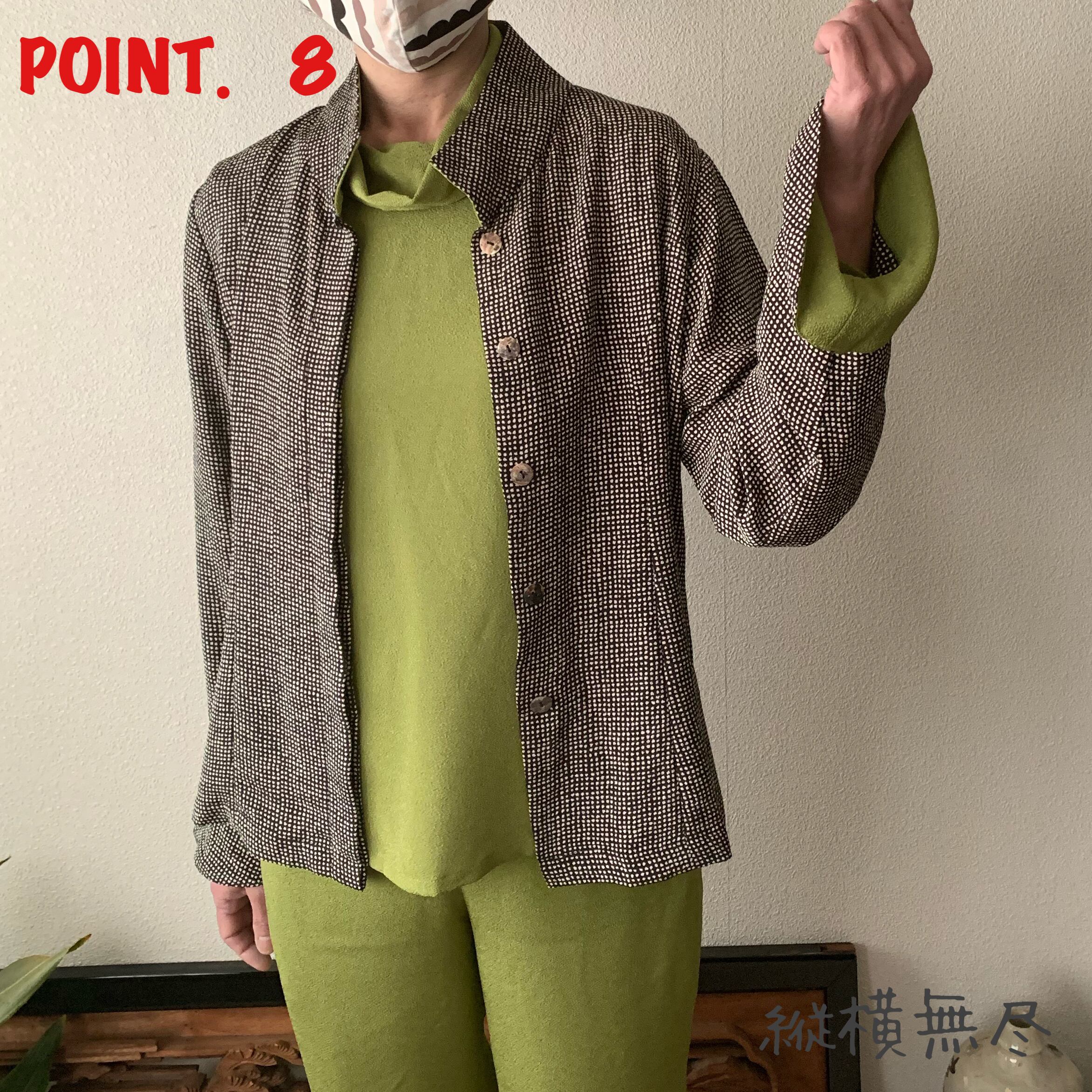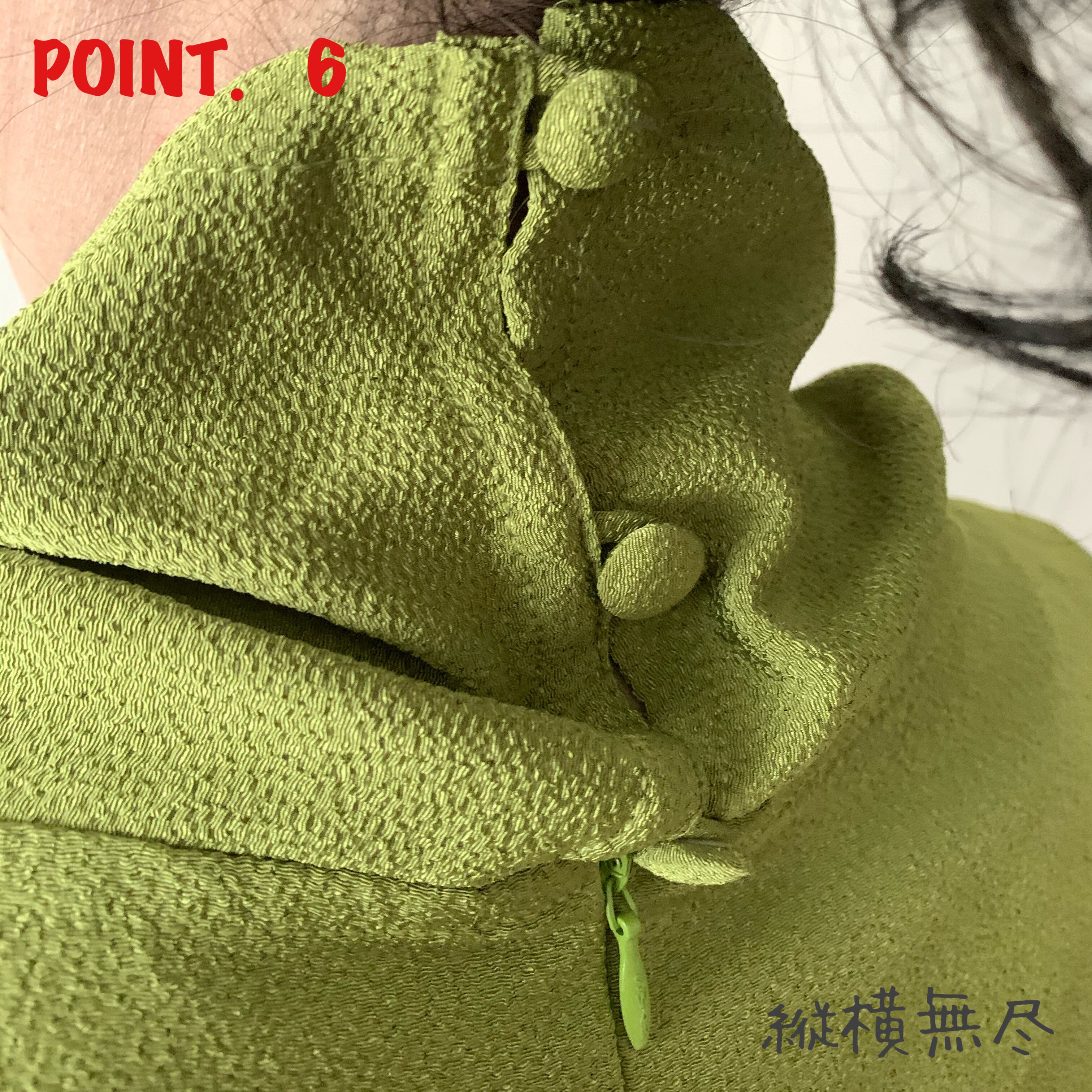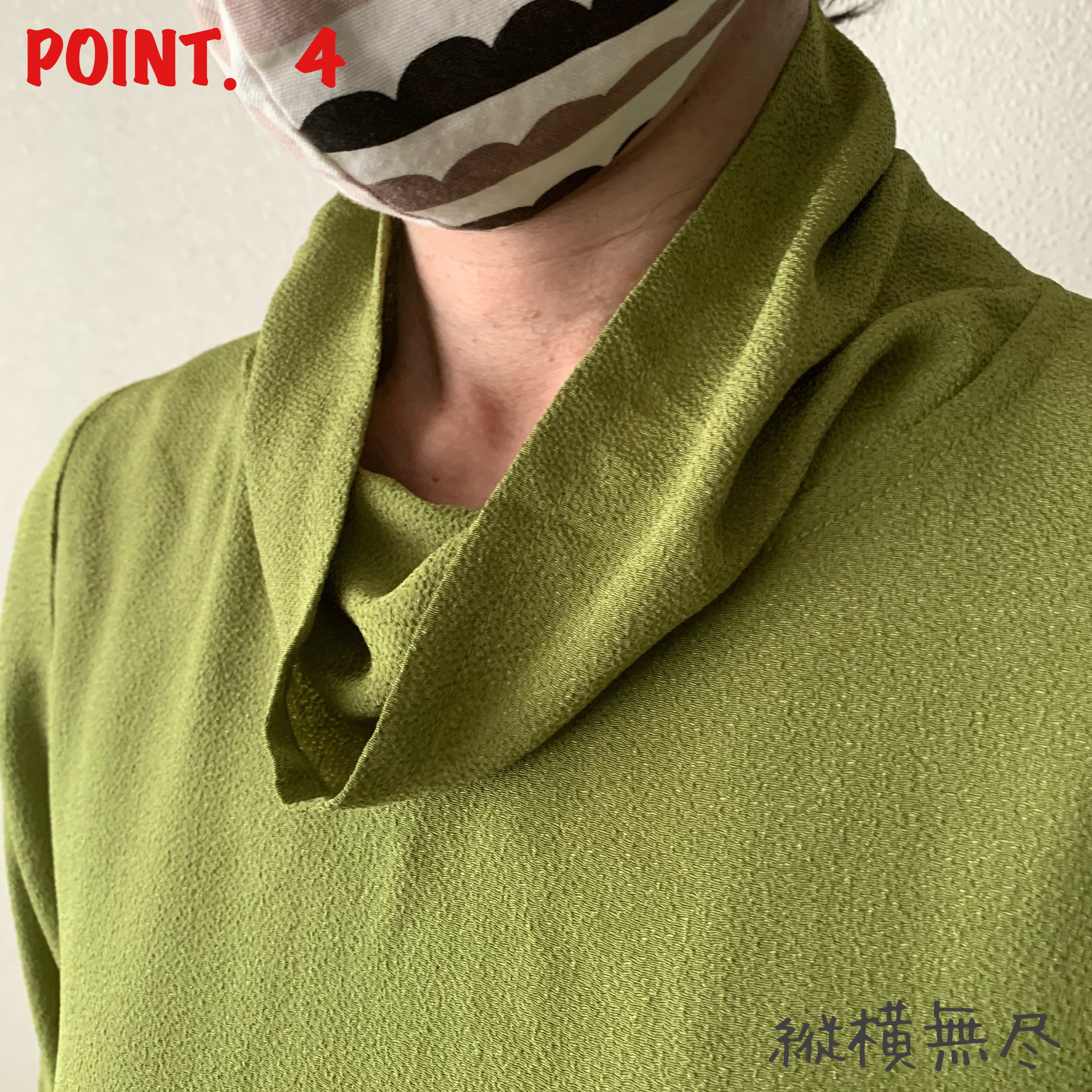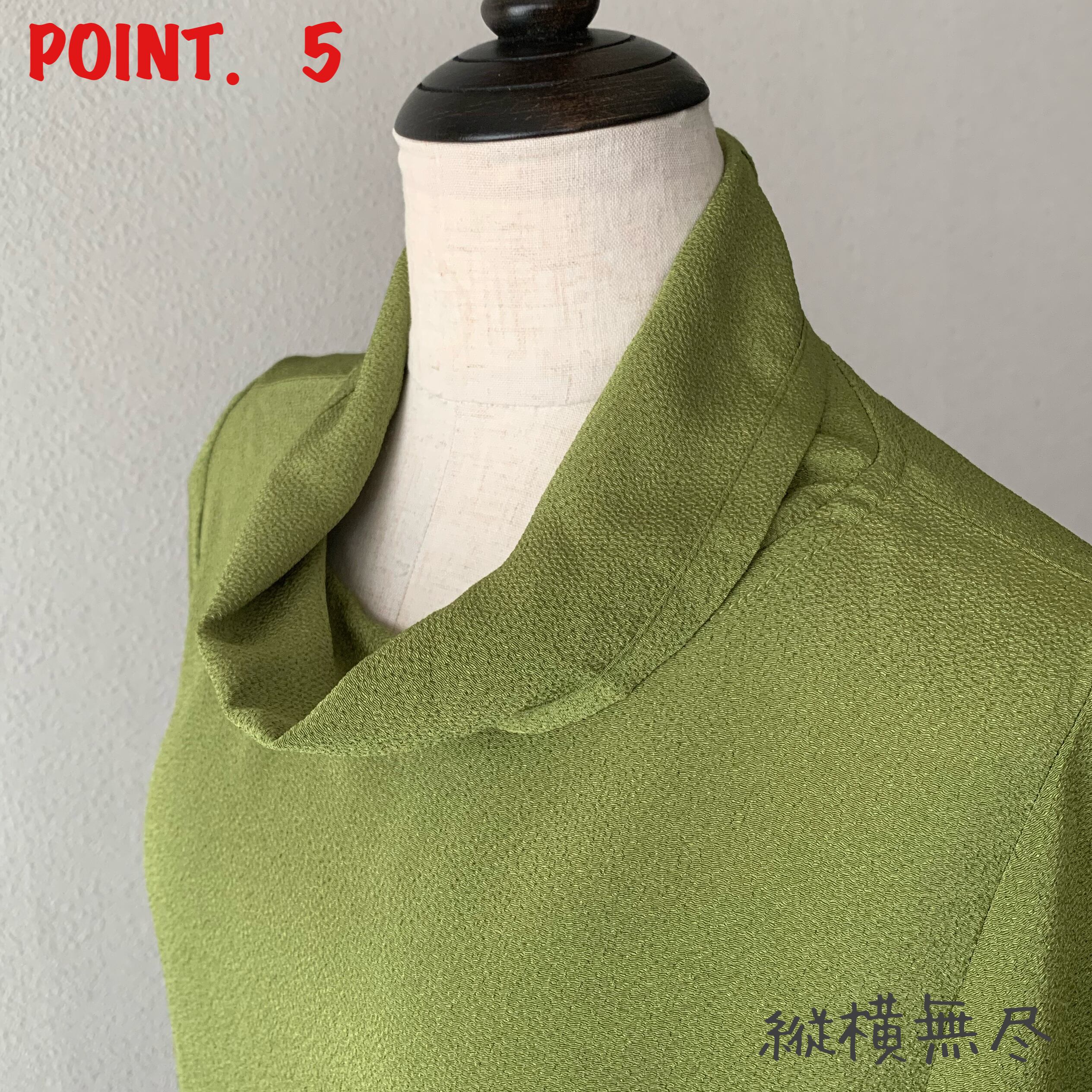 襟裏がグリーン共生地の花のような襟ちりめんブラウスとあわせるとより個性がでます。