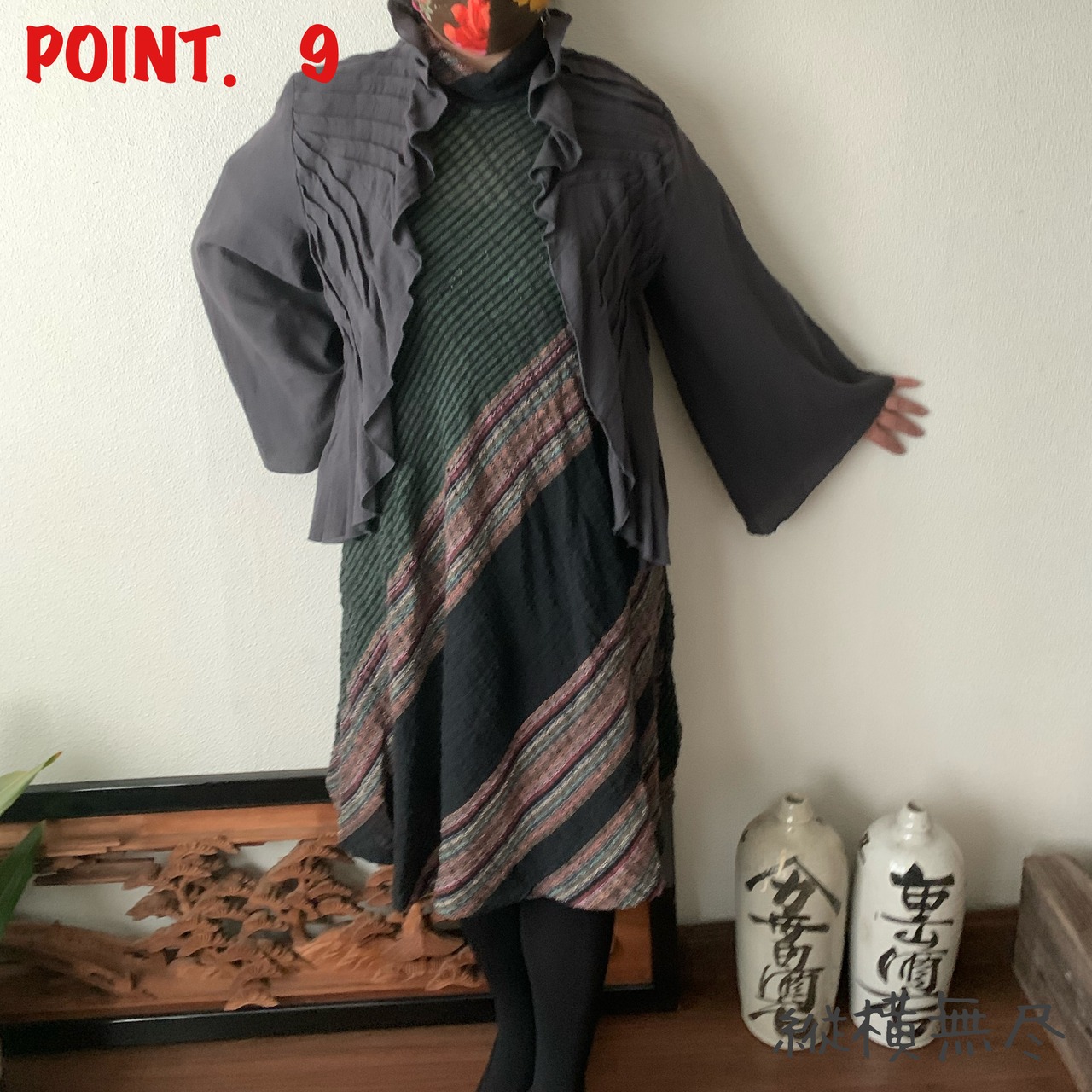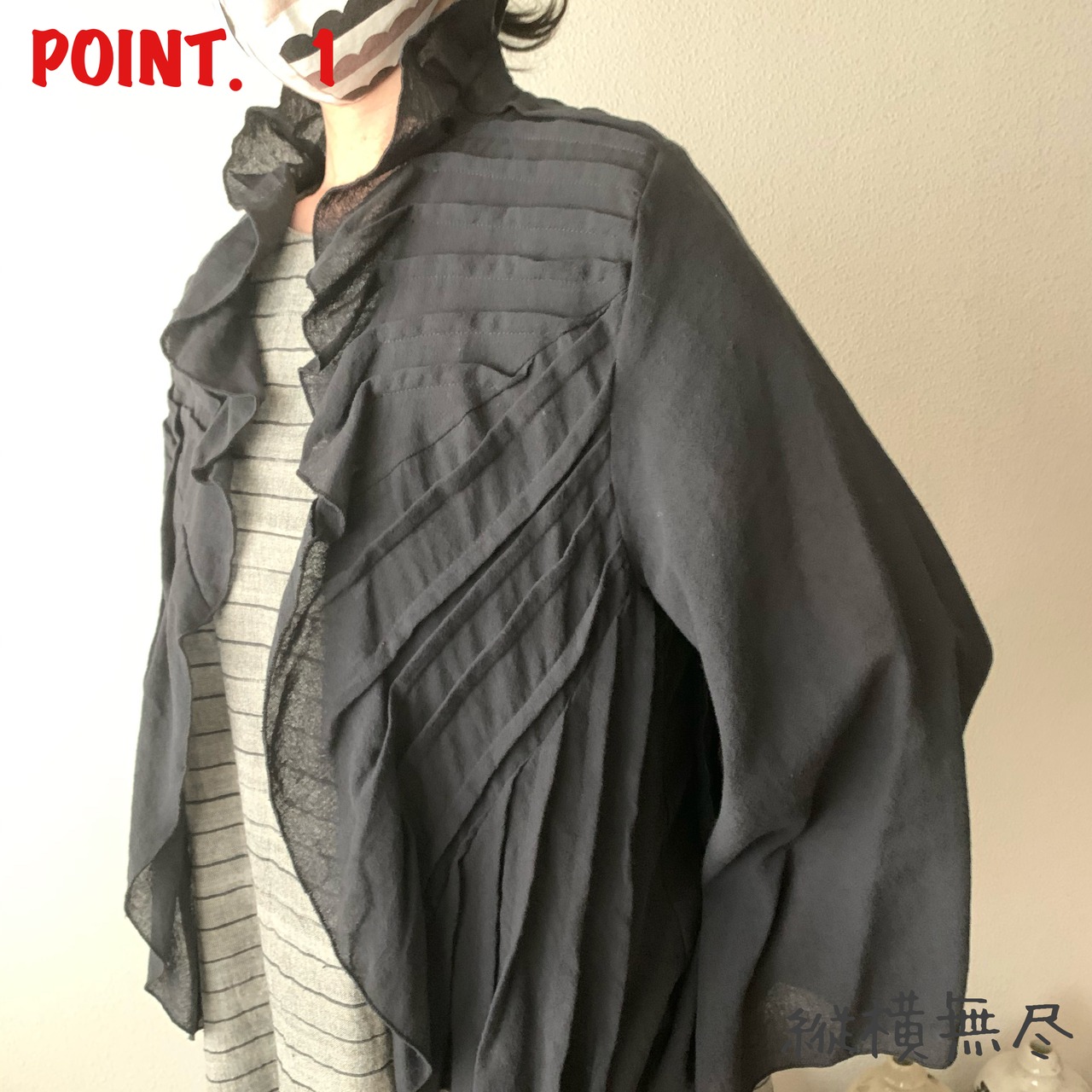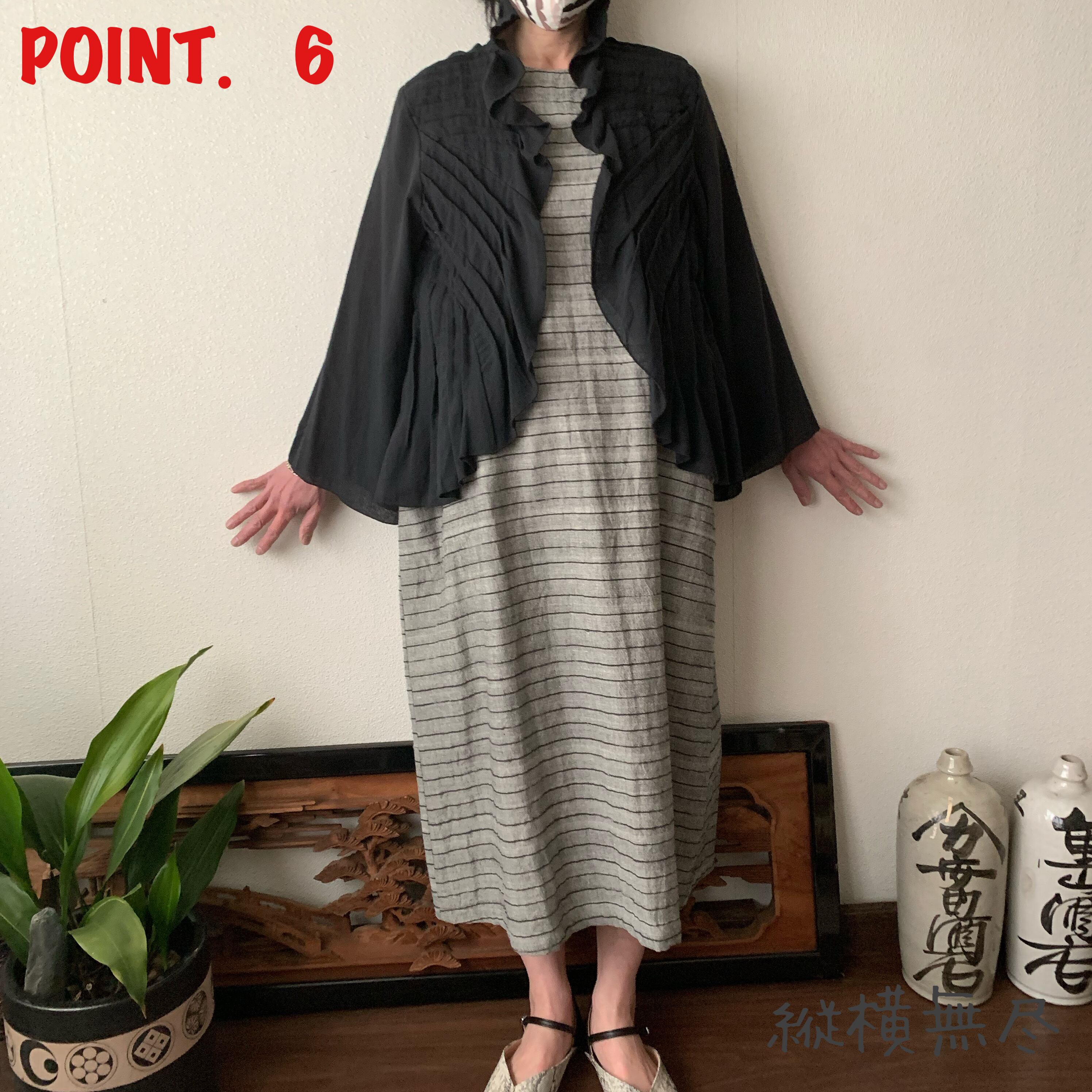 袖のないワンピースの上にふわっと羽織られたお客様が「これ一つで決まるわね!」とおっしゃられていたのが印象的でした。
