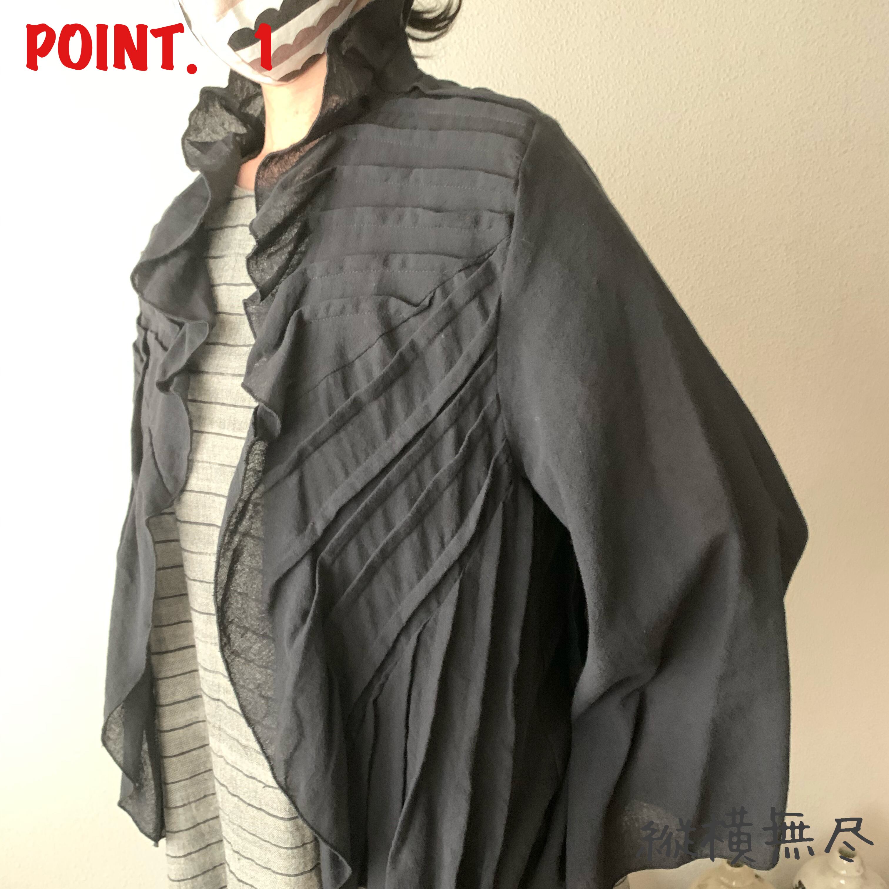 『羽織りやすい前開きボレロ風ジャケット 大人の縦ラインフリルとフレアスリーブ袖が美しいライン』