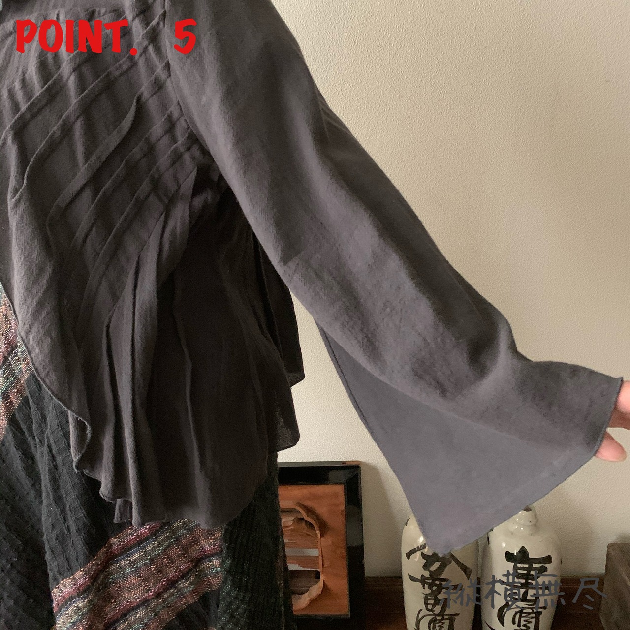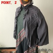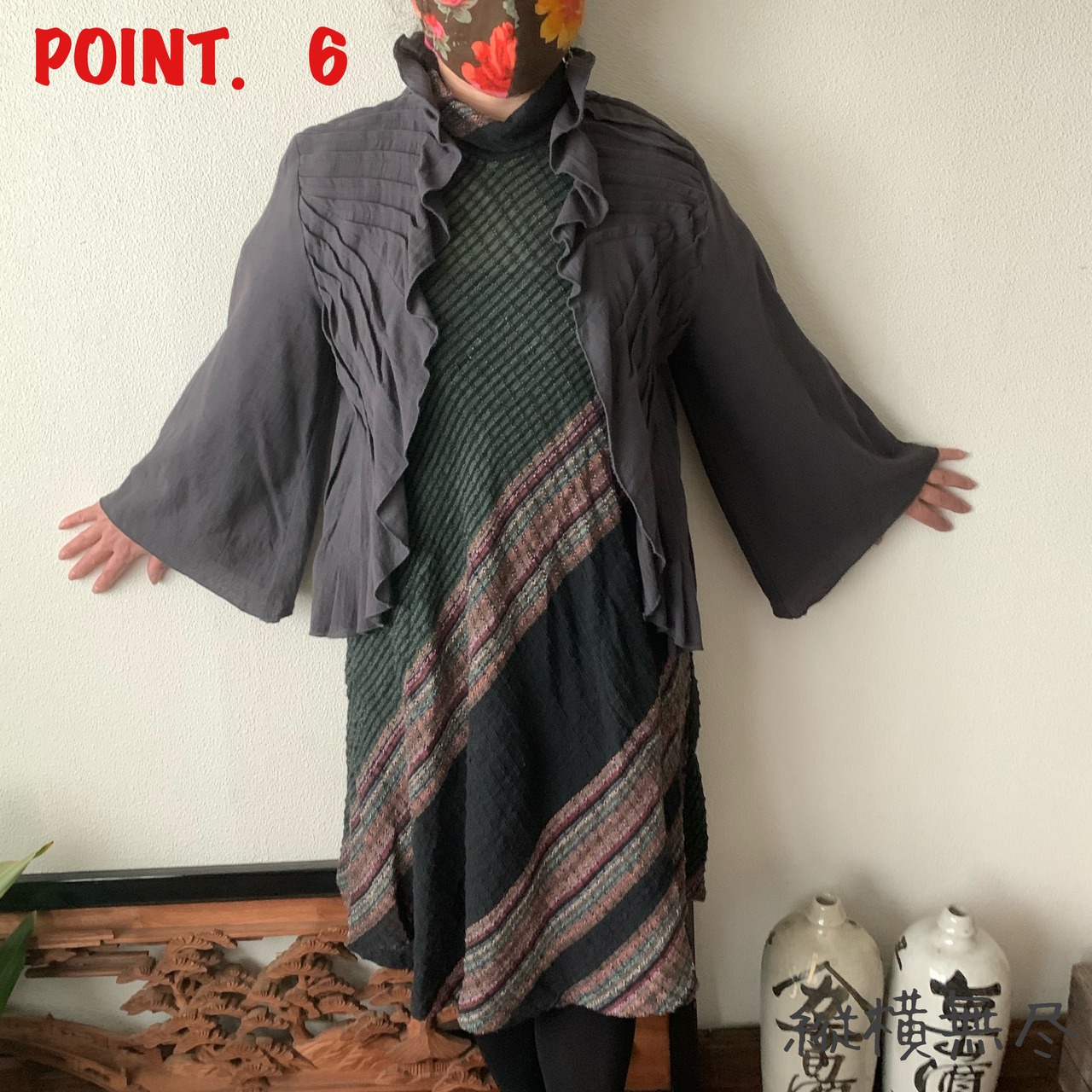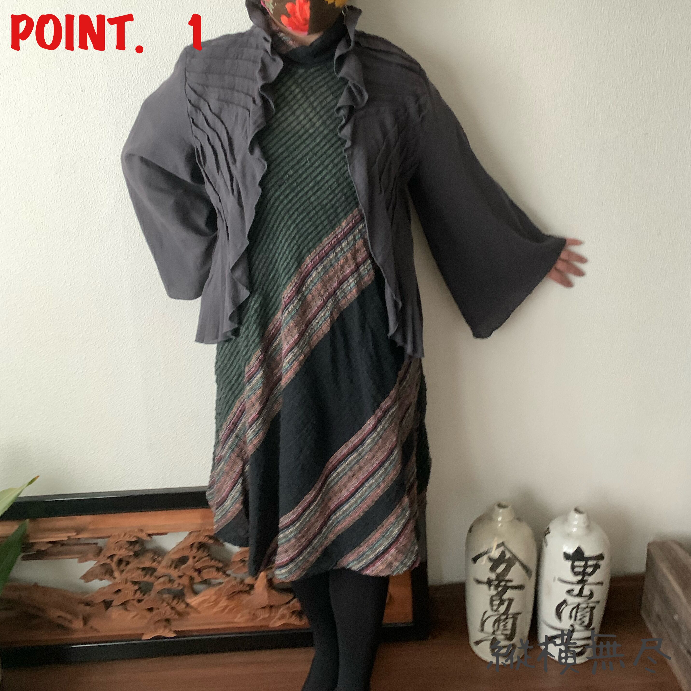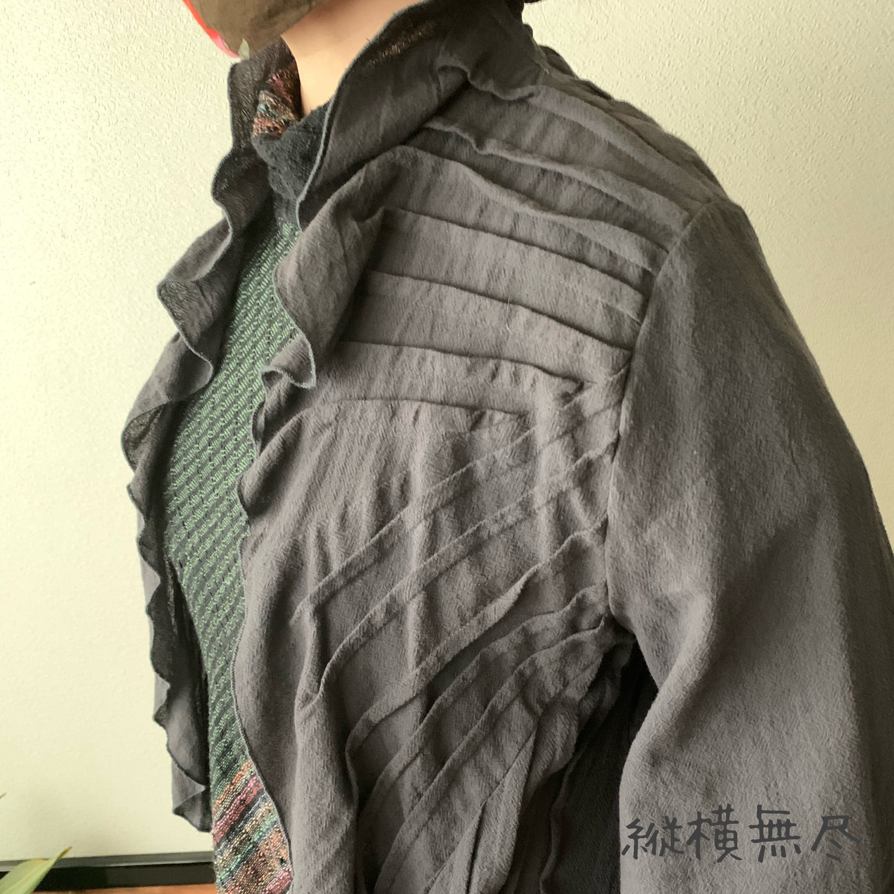 羽織りやすい前開きボレロ風ジャケット 大人の縦ラインフリルとフレアスリーブ袖が美しいライン チャコールグレイ