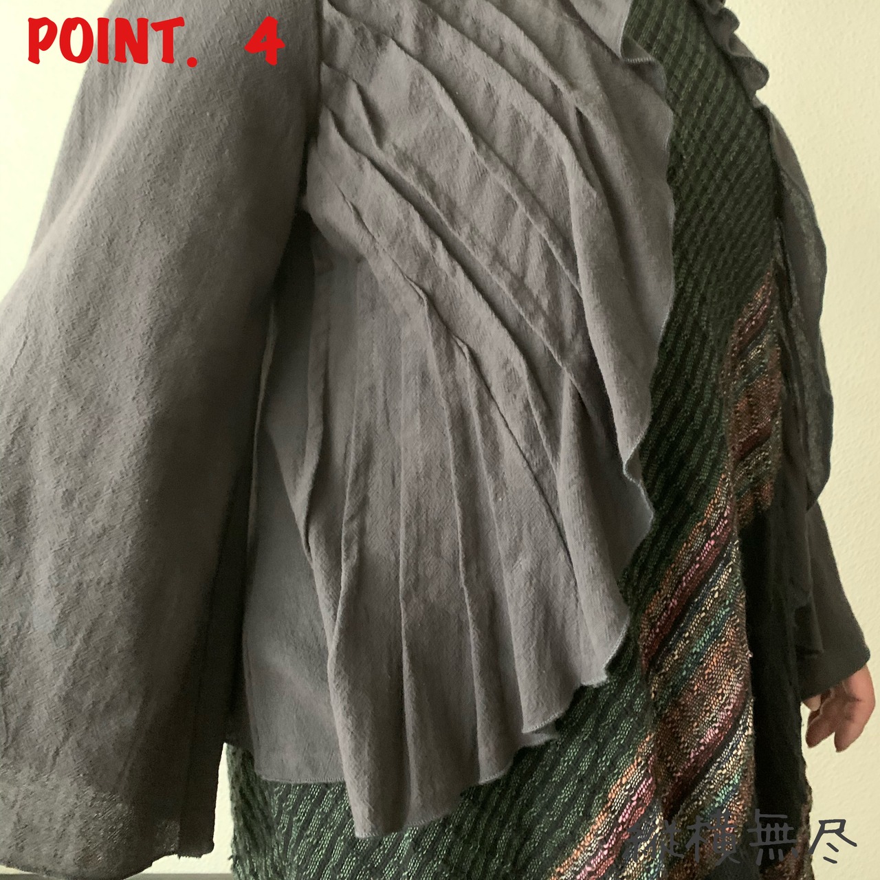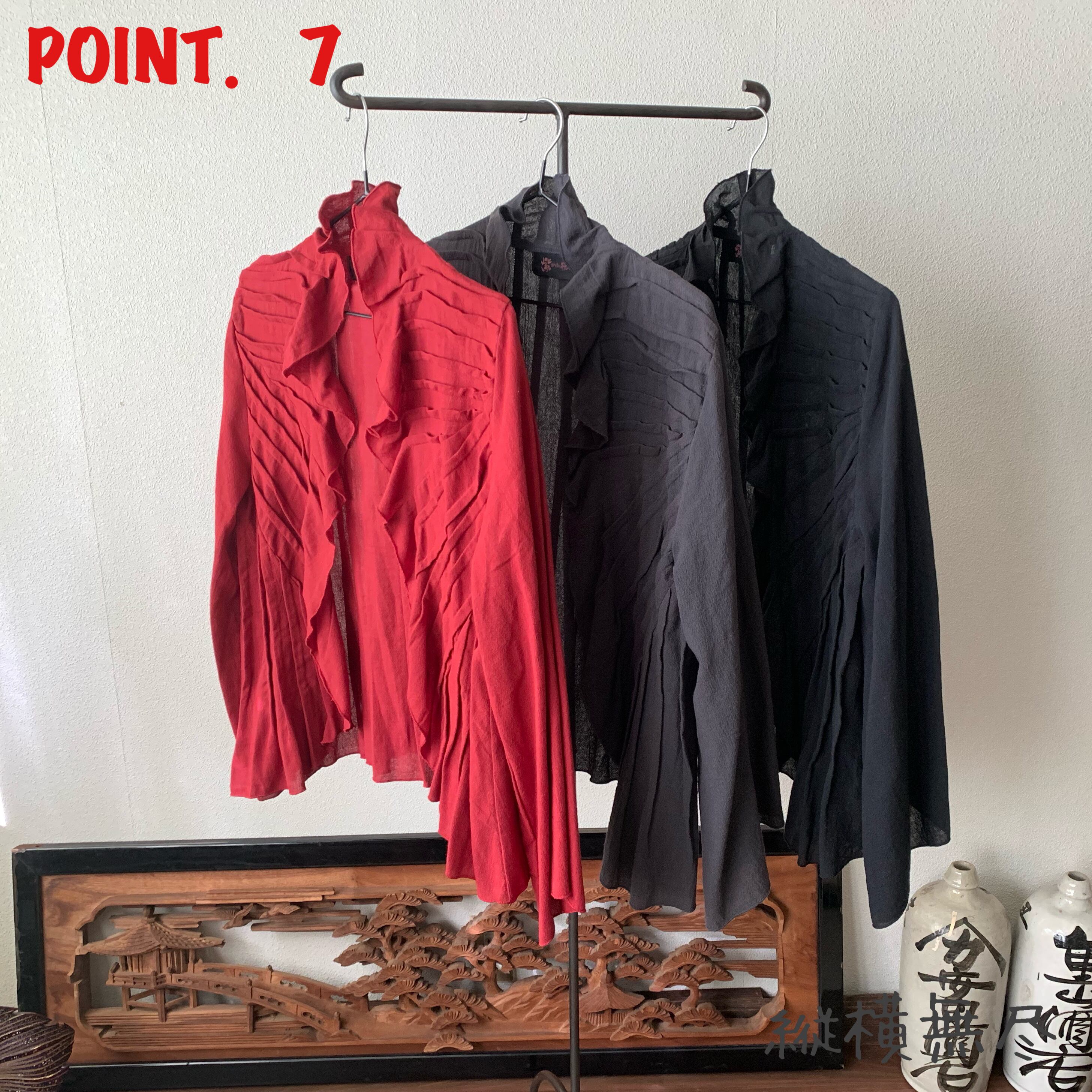 袖のないワンピースの上にふわっと羽織られたお客様が「これ一つで決まるわね!」とおっしゃられていたのが印象的でした。