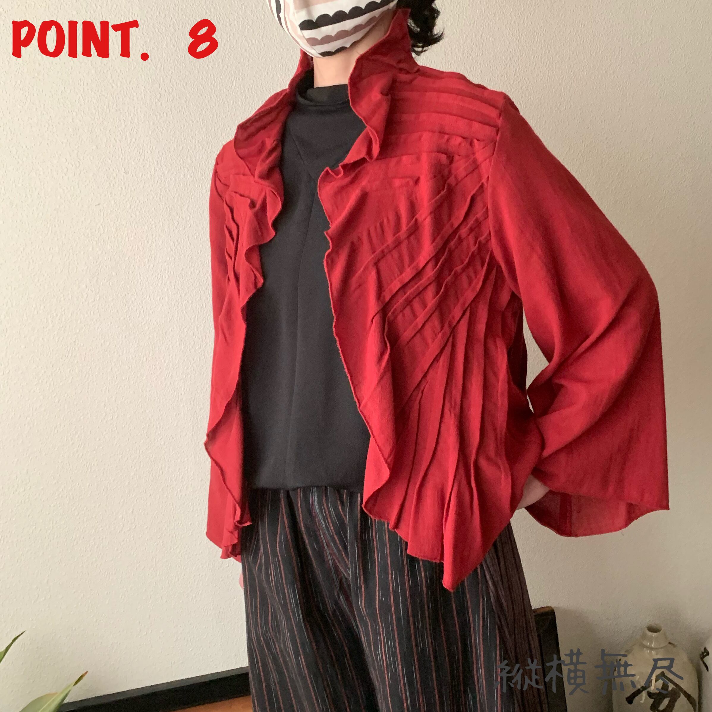 『羽織りやすい前開きボレロ風ジャケット 大人の縦ラインフリルとフレアスリーブ袖が美しいライン』