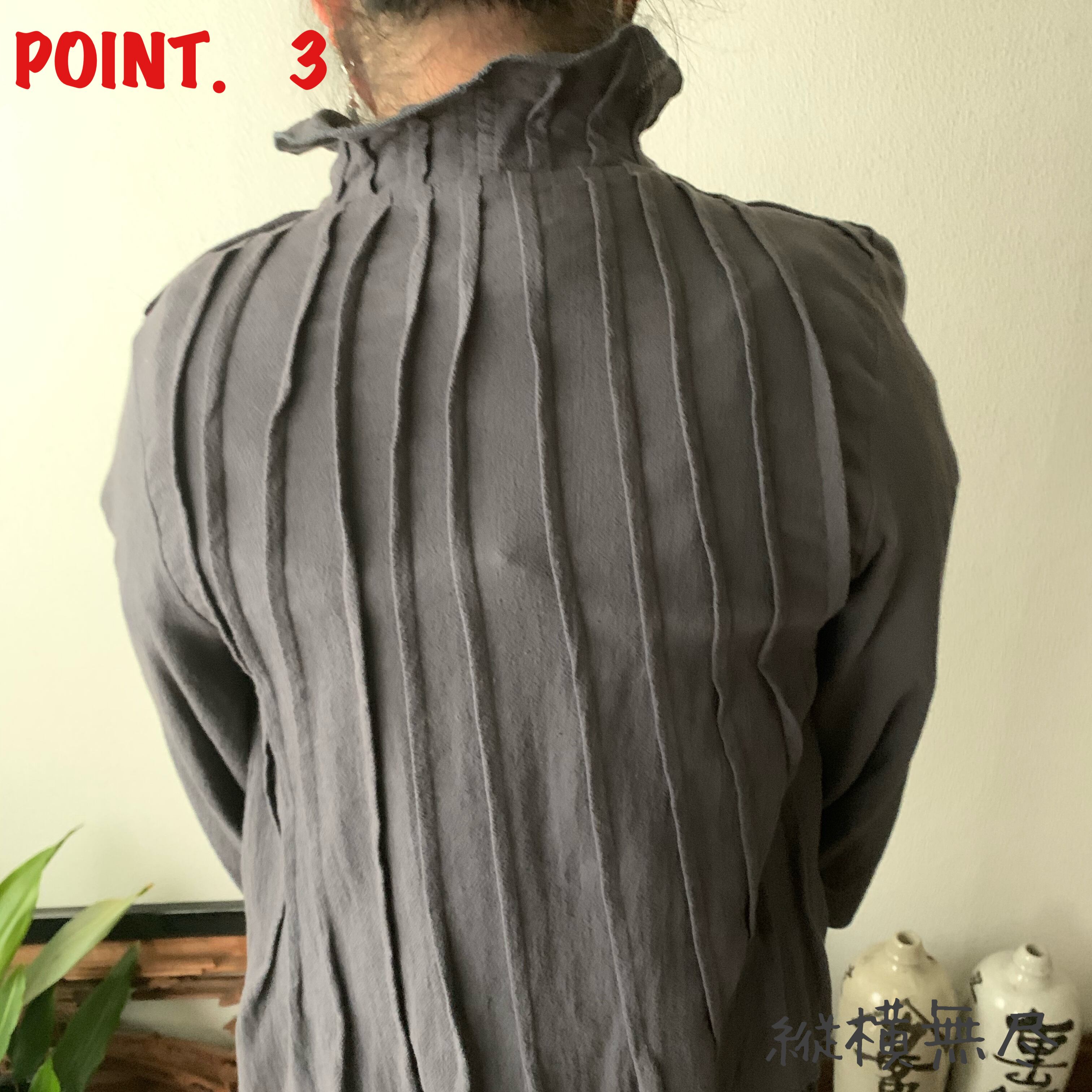 縦に入ったタックがすっきりとみせてくれる背中部分。