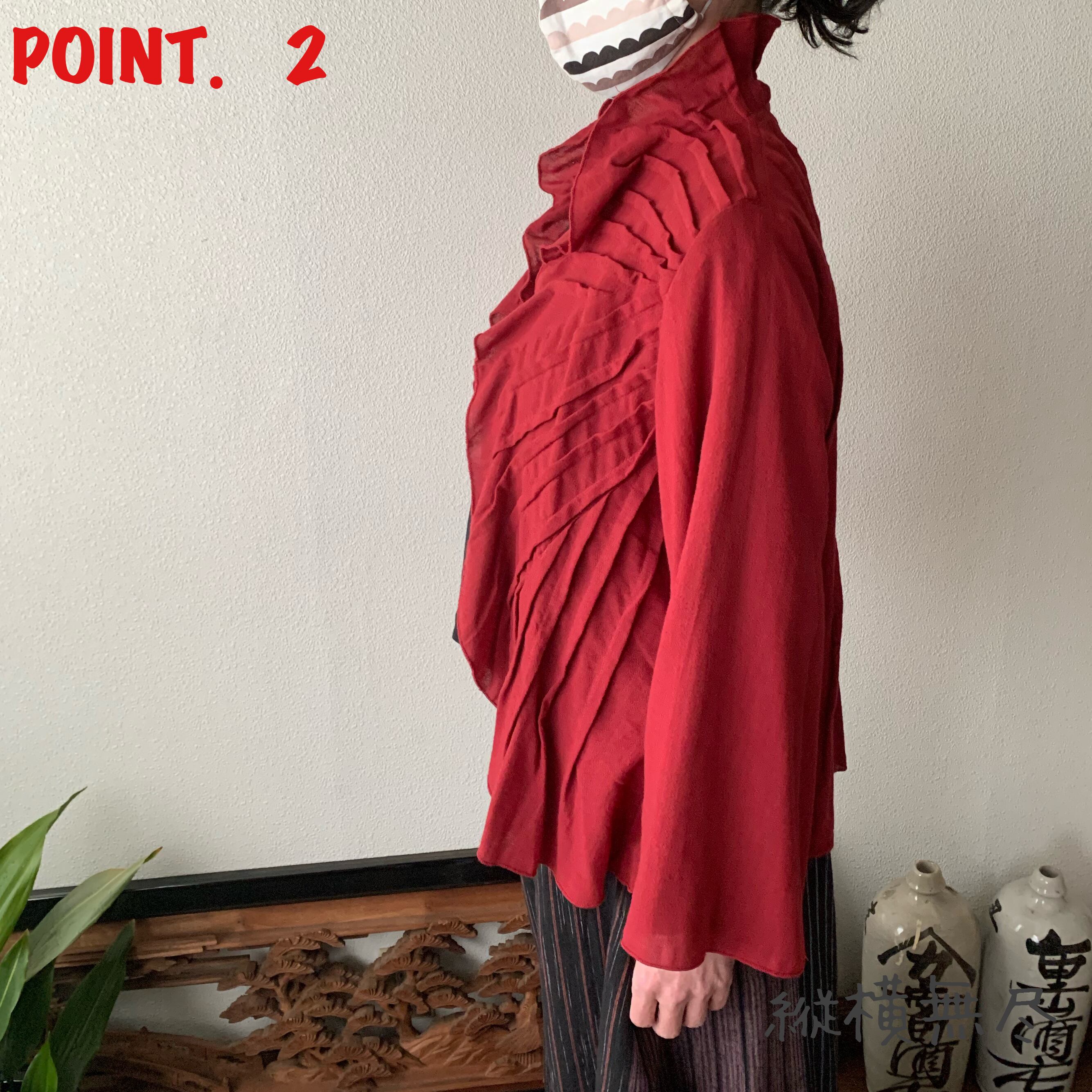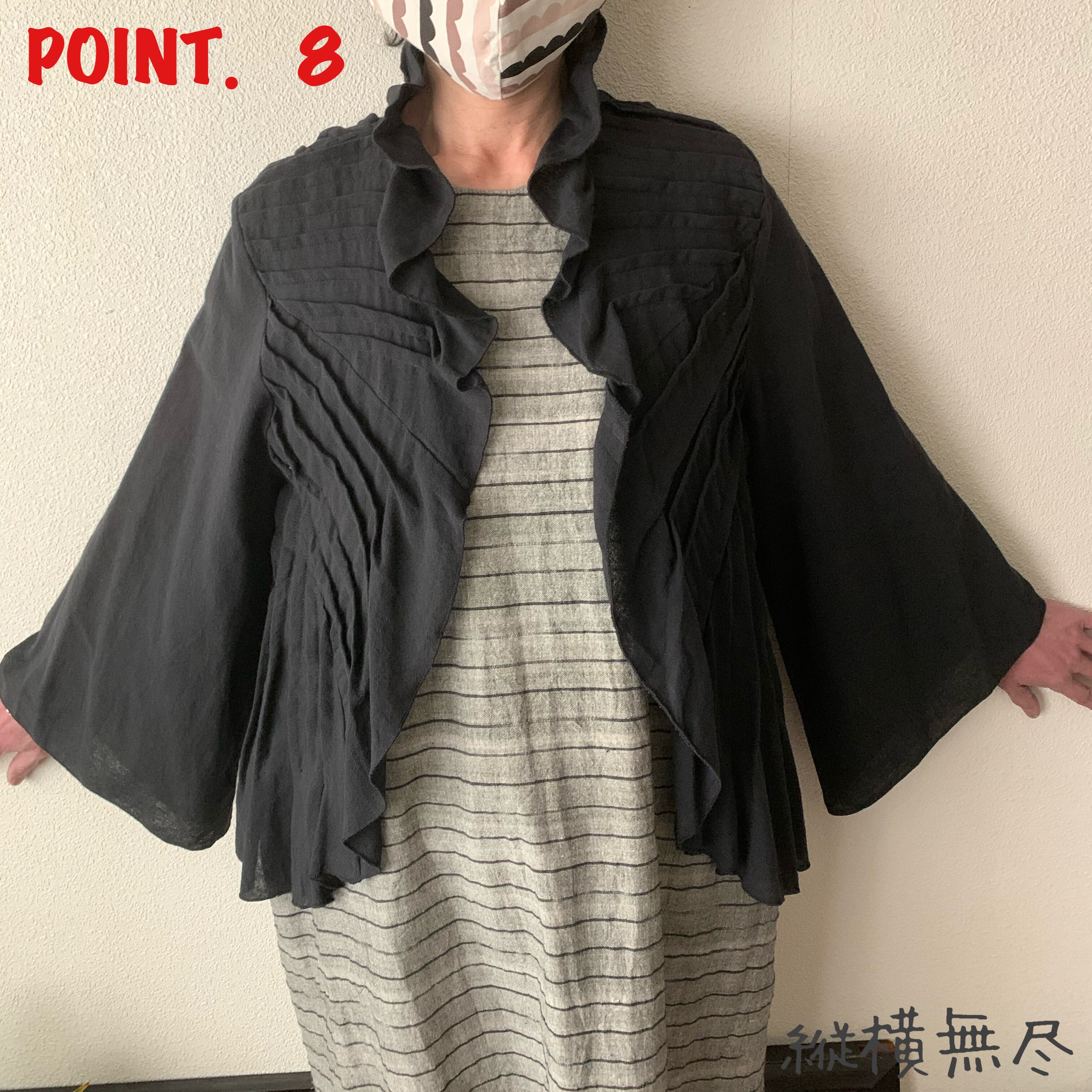 袖のないワンピースの上にふわっと羽織られたお客様が「これ一つで決まるわね!」とおっしゃられていたのが印象的でした。