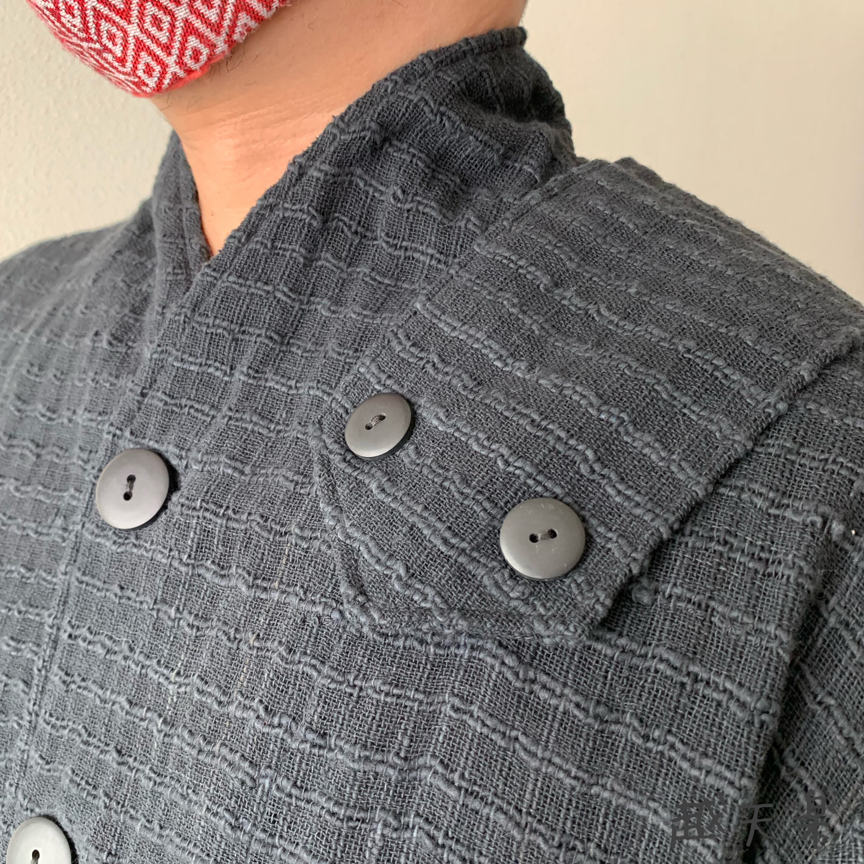 ざくざくとした生地の手織り綿なので手織りの風合い感がでて、また着ていて体に沿っていて心地良い素材です。