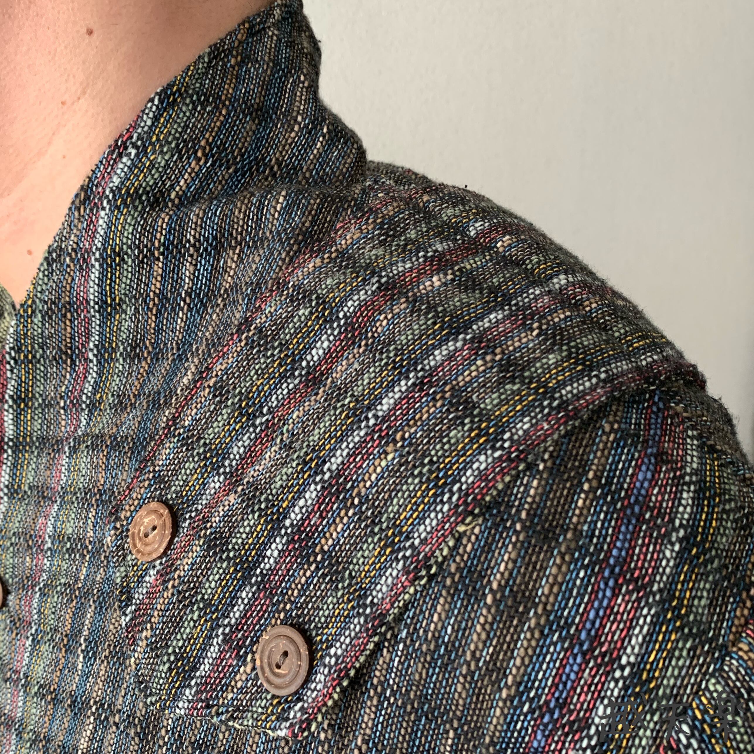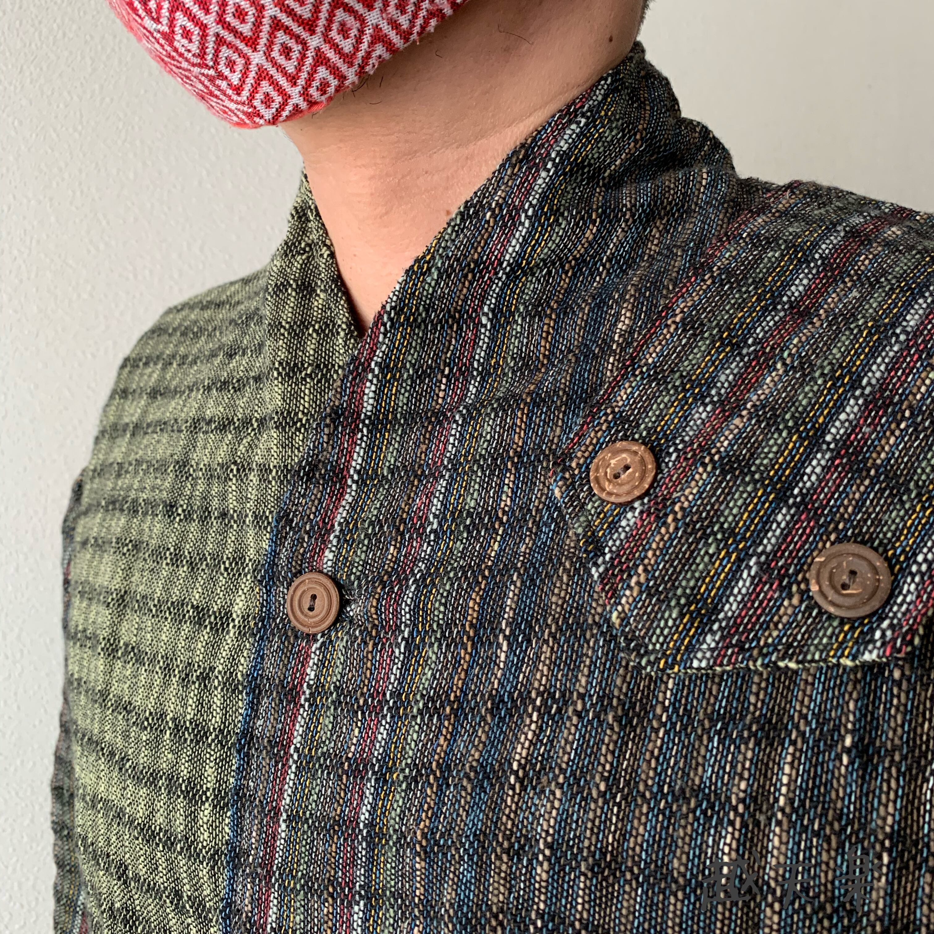 ざくざくとした生地の手織り綿なので手織りの風合い感がでて、また着ていて体に沿っていて心地良い素材です。