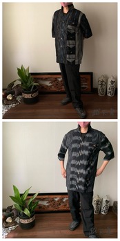 写真セットで履いている前身切り替えライン手織り綿メンズパンツはこちら↓
