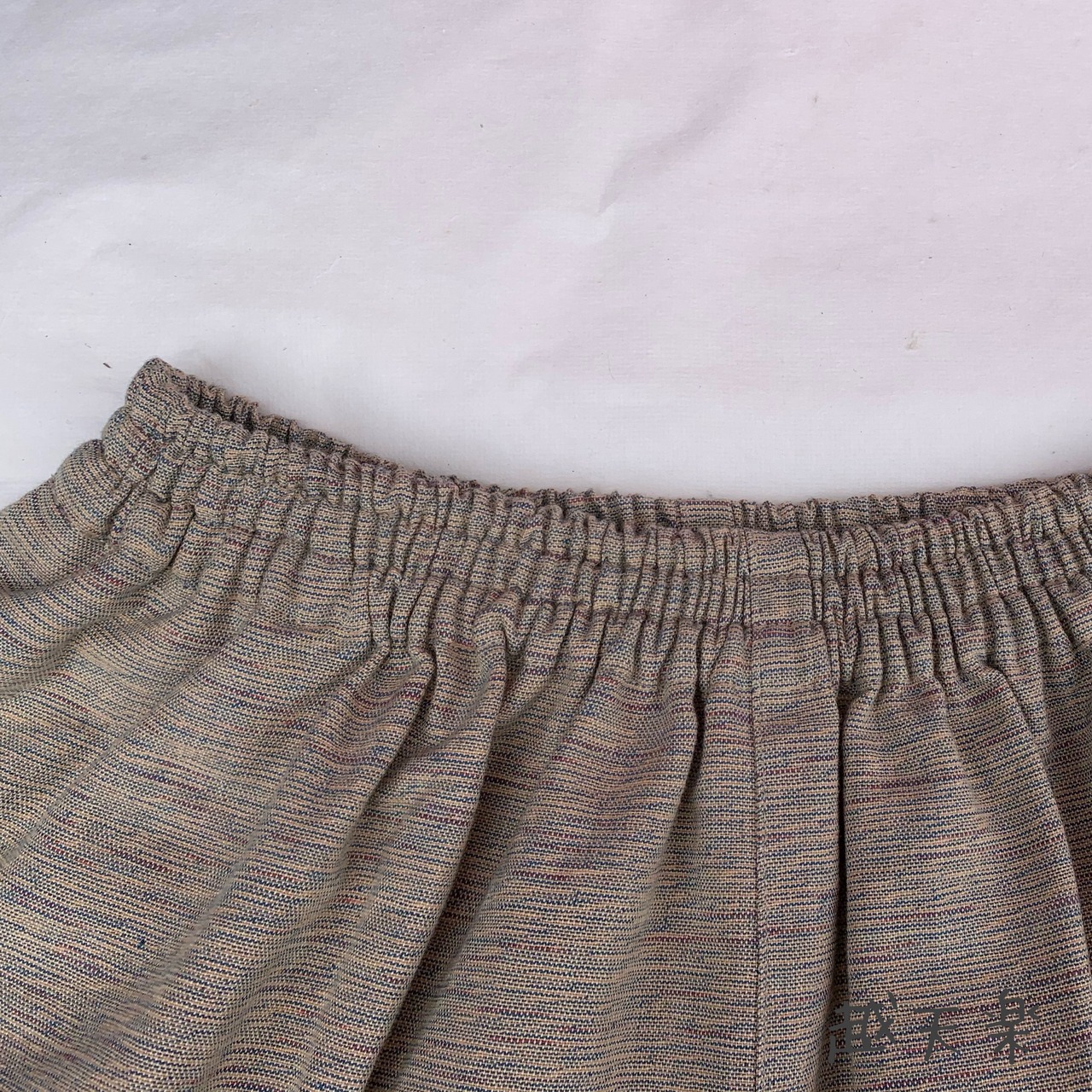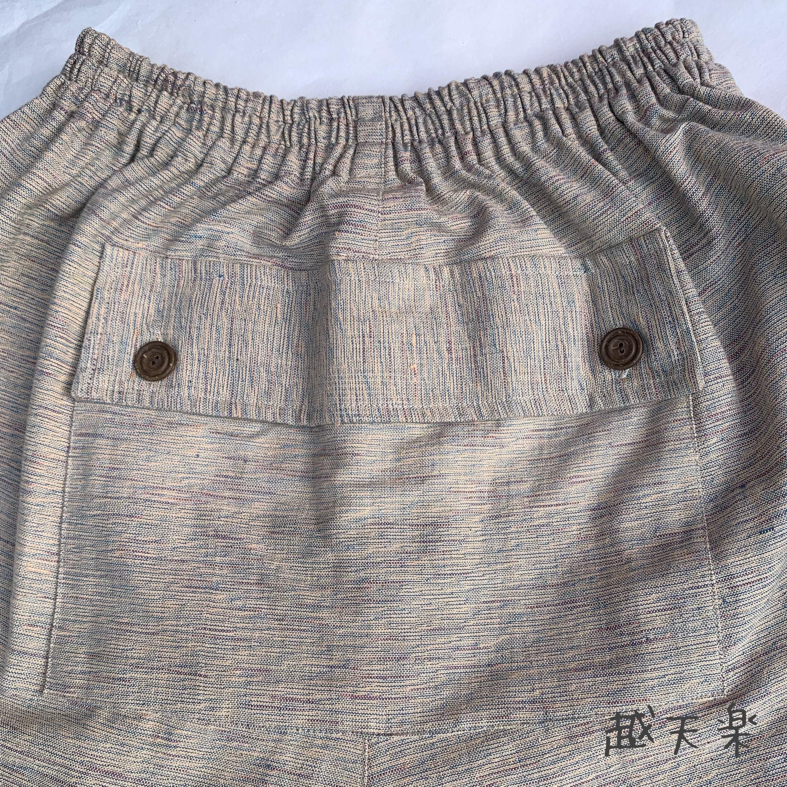 手織り綿なので、夏にサンダルと合わせても良し、秋冬にレギンスの上にはきブーツを合わせてもかっこいいです。